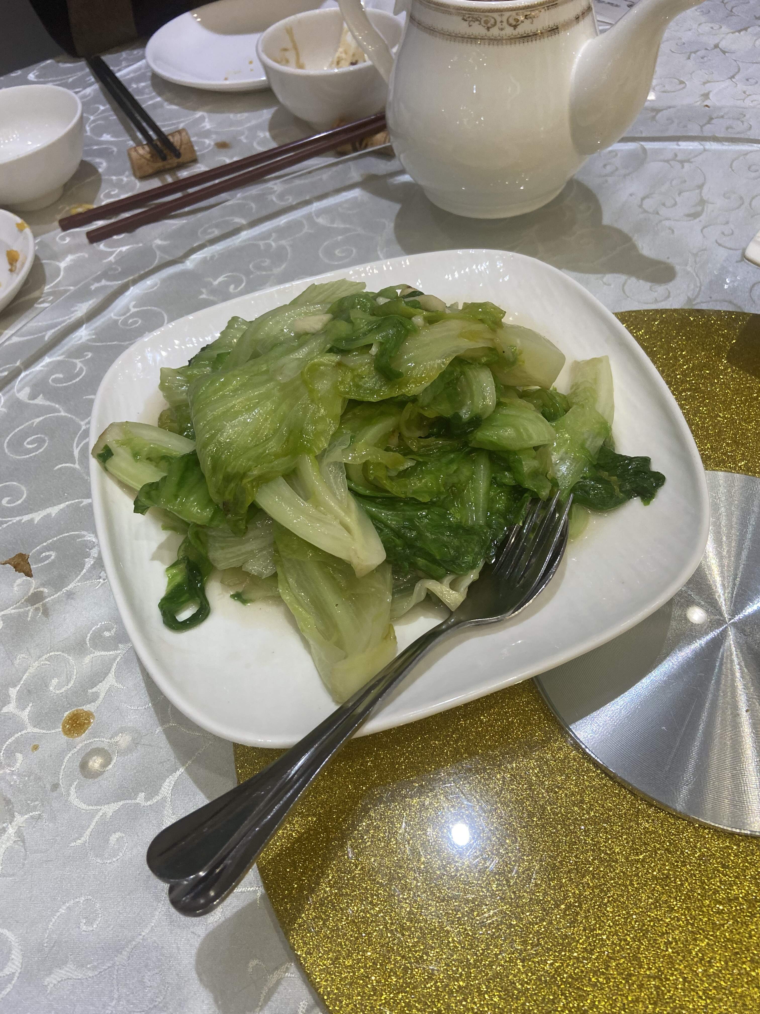 - Stir fried Chinese Lettuce with sliced garlic and fermented bean curd ( Packed full of attractive, smoky wok-hay aroma and taste. Rare achievement for a leafy green dish! )
