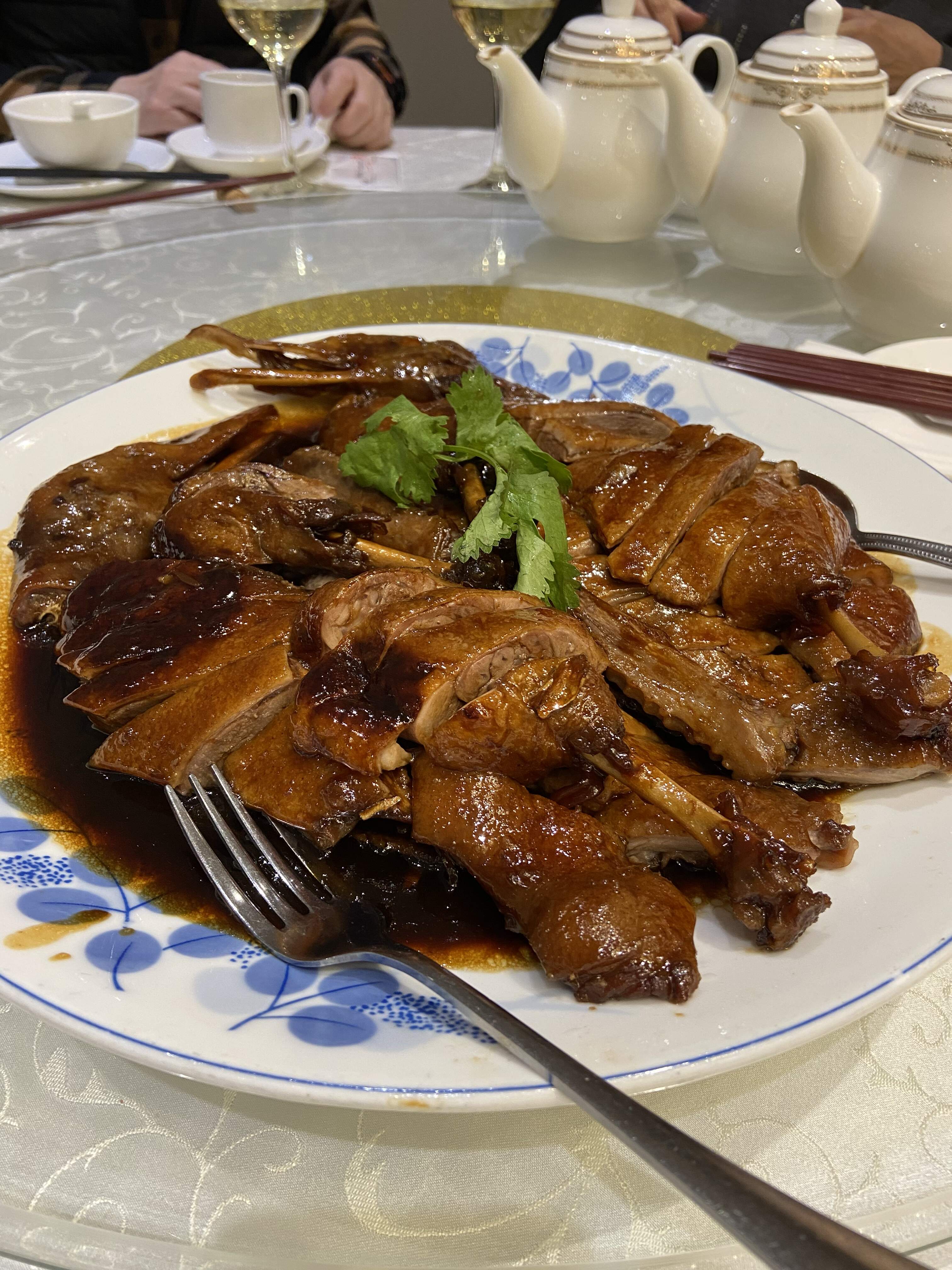 - Whole, house-special, braised ‘5 flavor’ Duck ( Plenty of this huge, wonderfully tasty and off the bone tender bird to go around. The accompanying lip-smacking, dark, savory sweet, multi-level complex marinade was a gem of a sauce! Some rice to go with it, a must! )