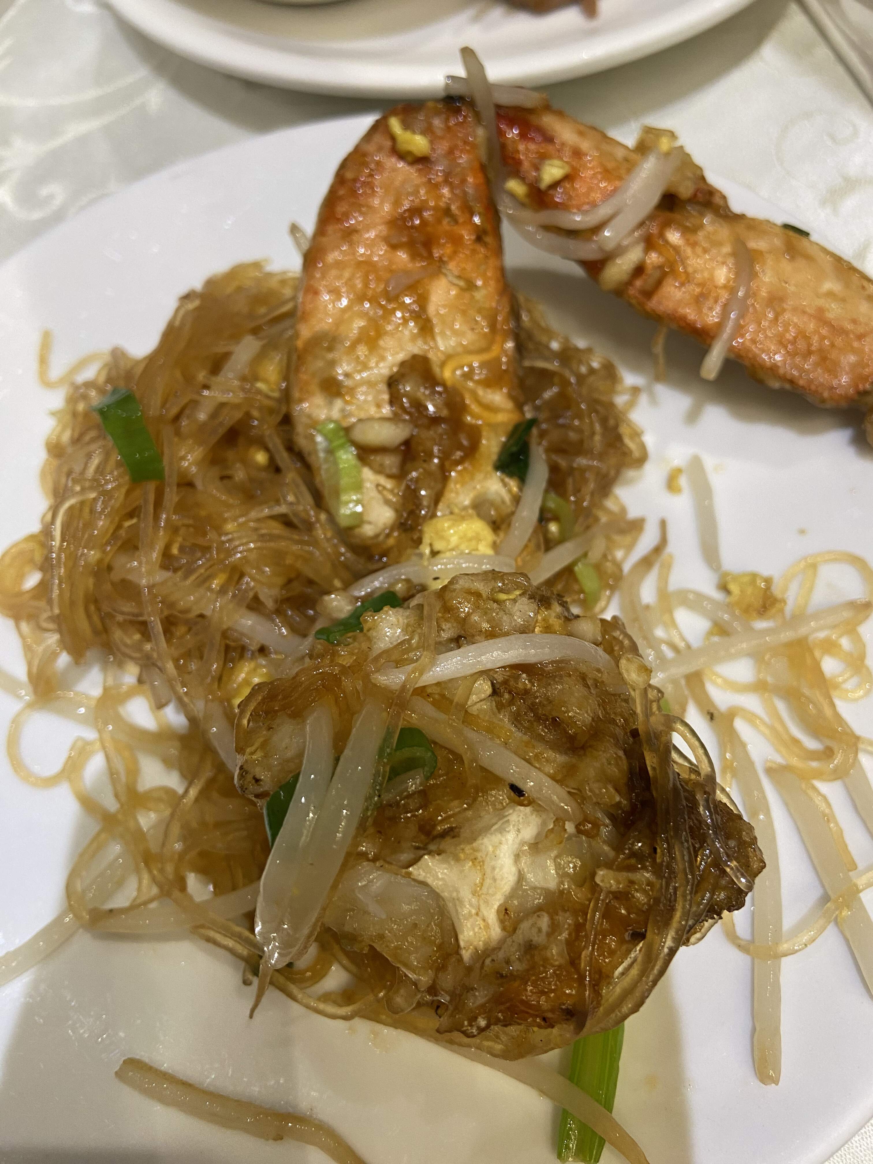 Sauteed whole BC Dungeness Crab in supreme soy, paired with stir fried rice vermicelli and aromatics, served in a piping hot clay pot. ( Well executed and finger licking good. Should have splurged and ordered two of these for our party?! The use of Chinese celery to pump up the taste profile of the sauteed noodle, a masterful touch! )