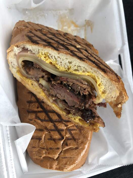 Stopped by here last week for lunch; got the spicy BBQ brisket sandwich and a beer. Great little dive with outdoor seating. The brisket was more shredded and swimming in sauce, but it was still pretty delicious. I pulled out some pieces of brisket to try on their own and I did get some decent smoke flavor. The bread had panini press prints on it, I would have preferred it as just a straight hoagie roll. I think I’ll try the BBQ on its own next time. But looking forward to a return visit.