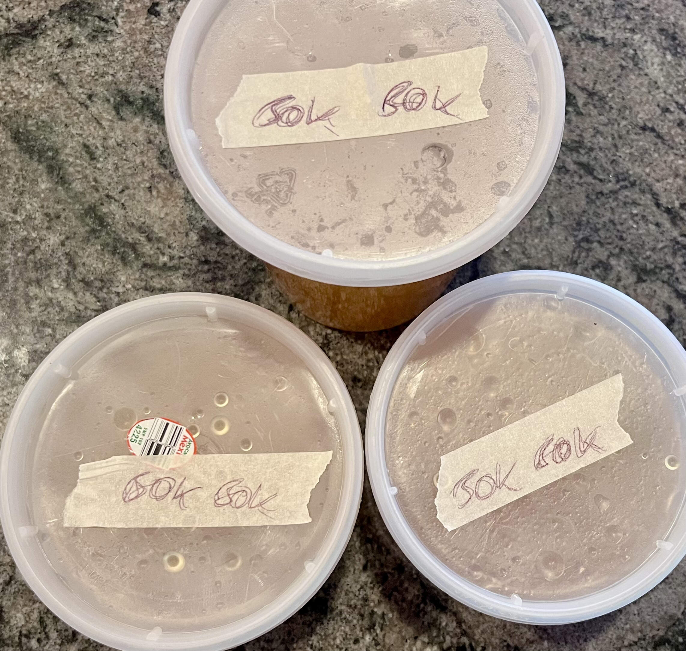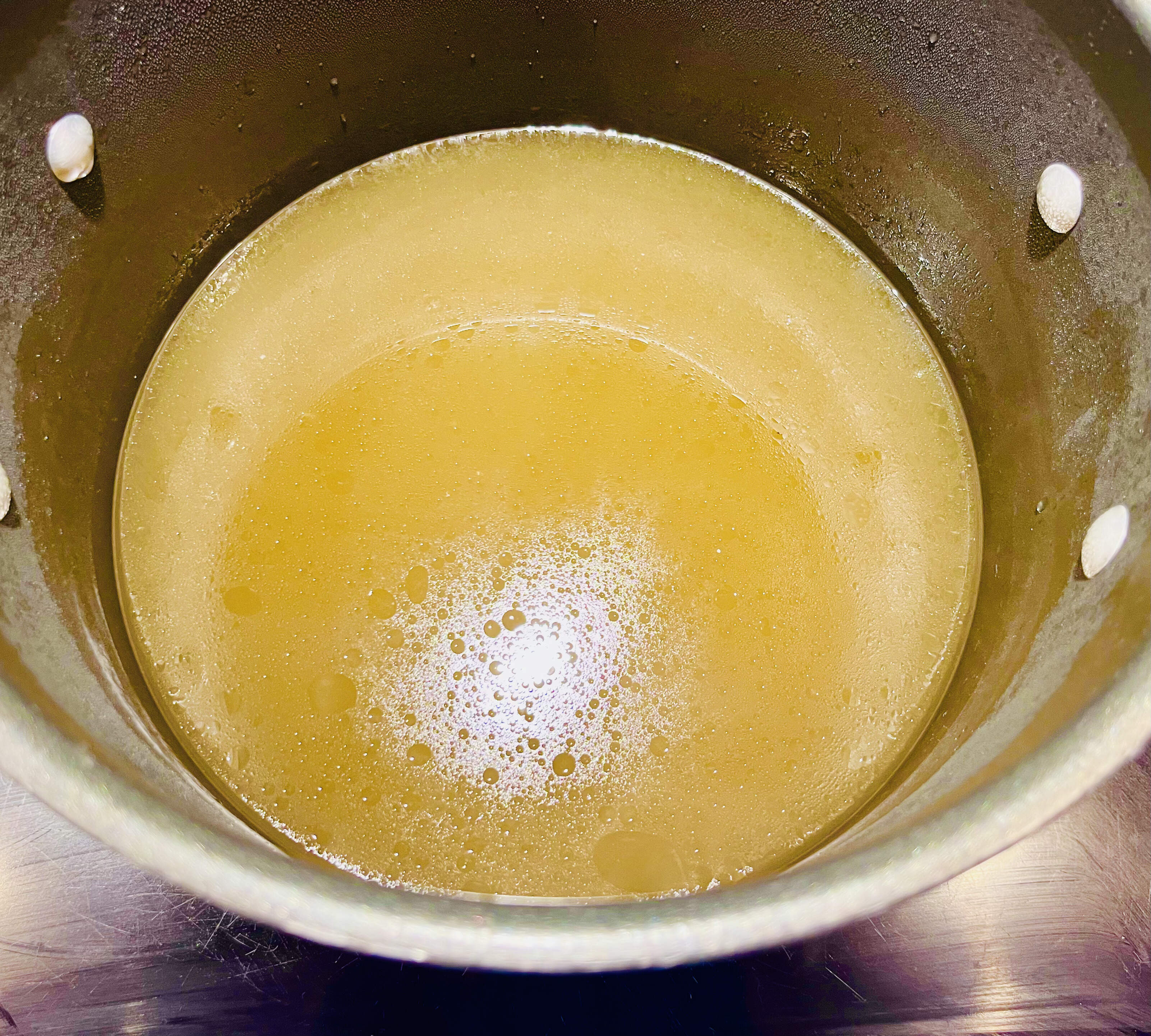 Another pot of golden roti chicken stock strained and ready to hop in the freezer