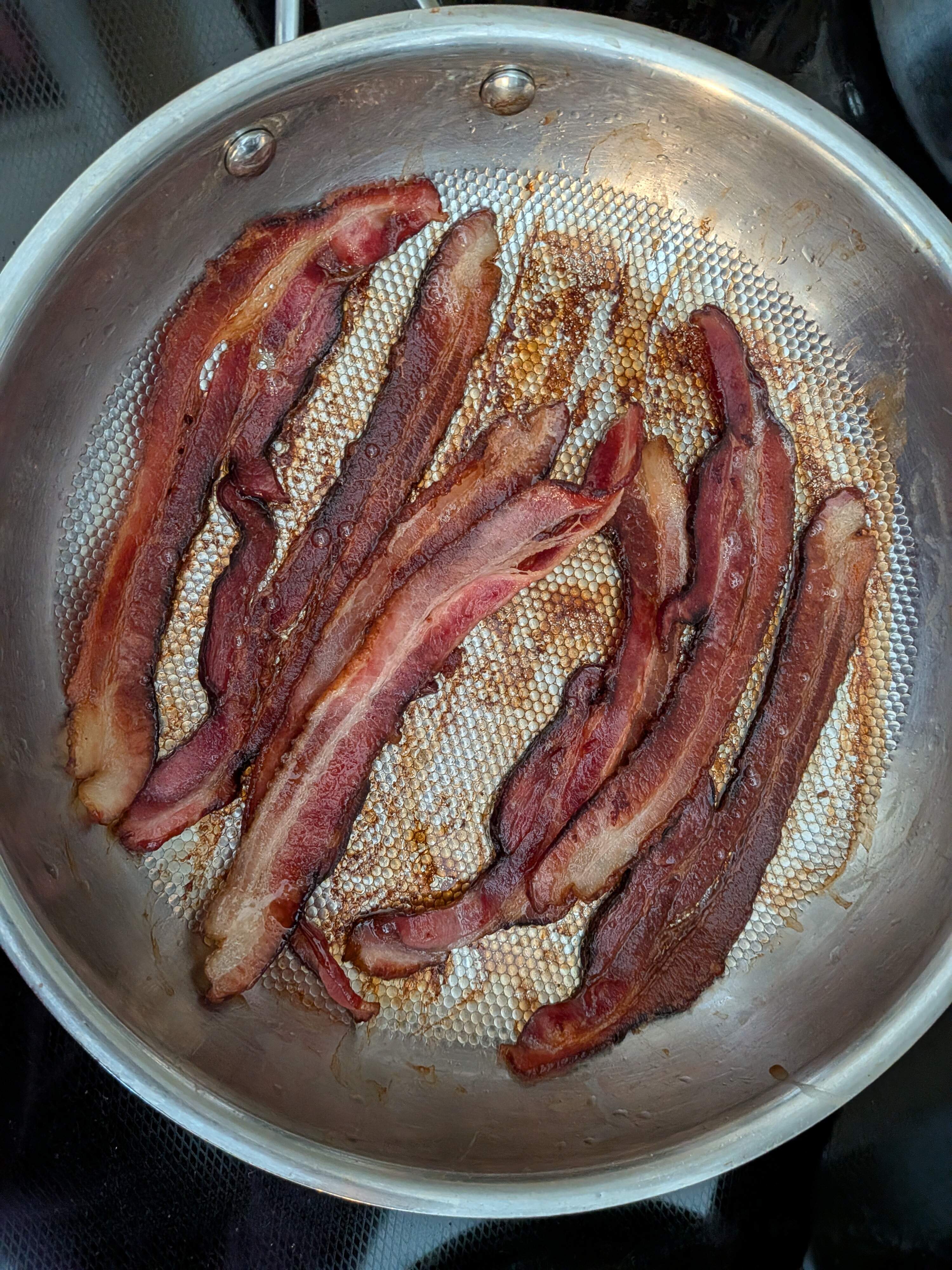 But I’ve never noticed frozen/thawed bacon to be much wetter. Maybe if in the thawing process, I let it come all the way up to room temp, there’s be a bit more liquid in the pack.