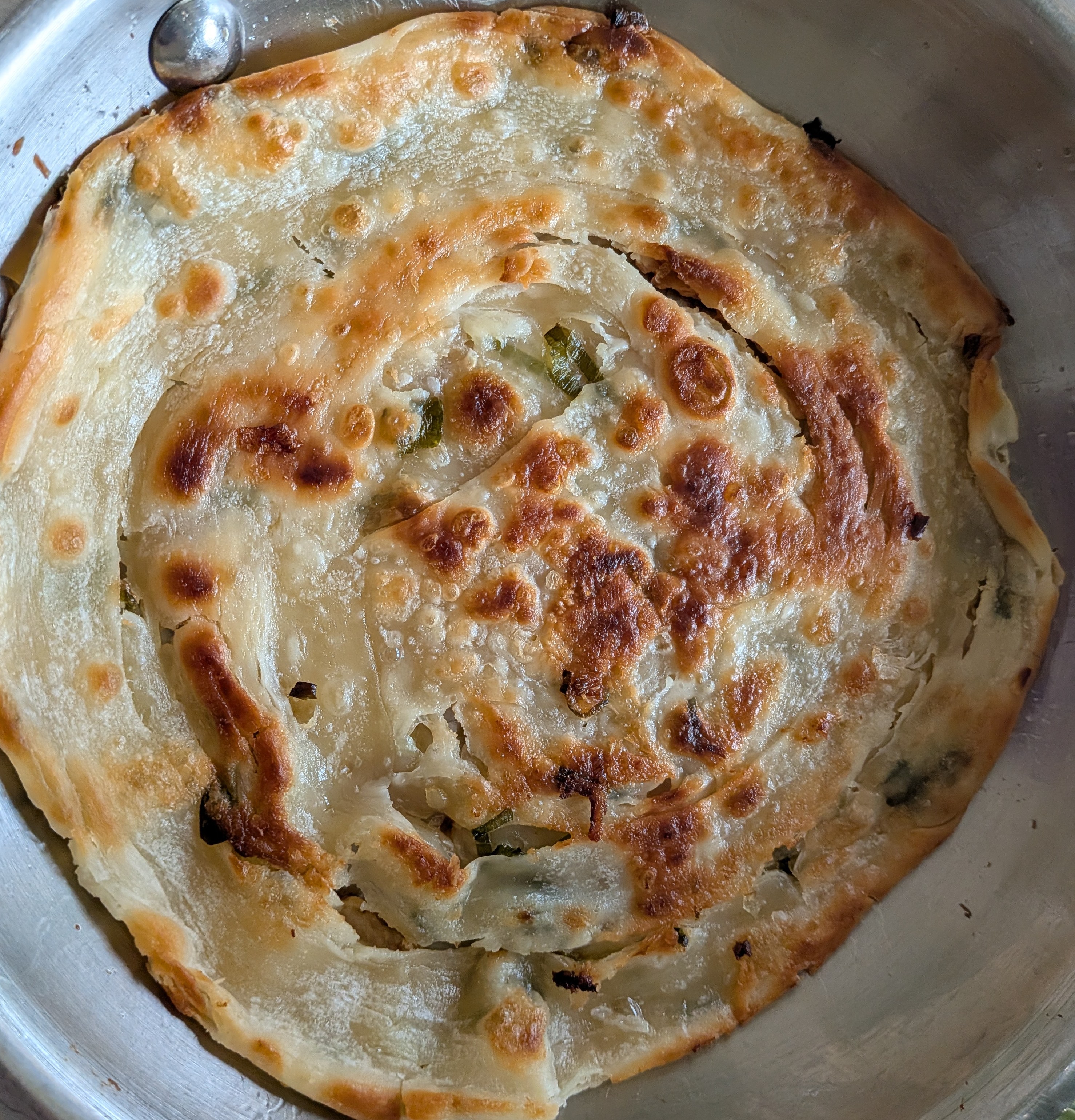 生煎包 “sheng jian bao” (A Meatball+Broth Bun) pan-fried in a wide pan, golden-crispy bottom. Southern Yangtze style. Commonly referred to as “Shanghai-style” dumplings. T;/p"
