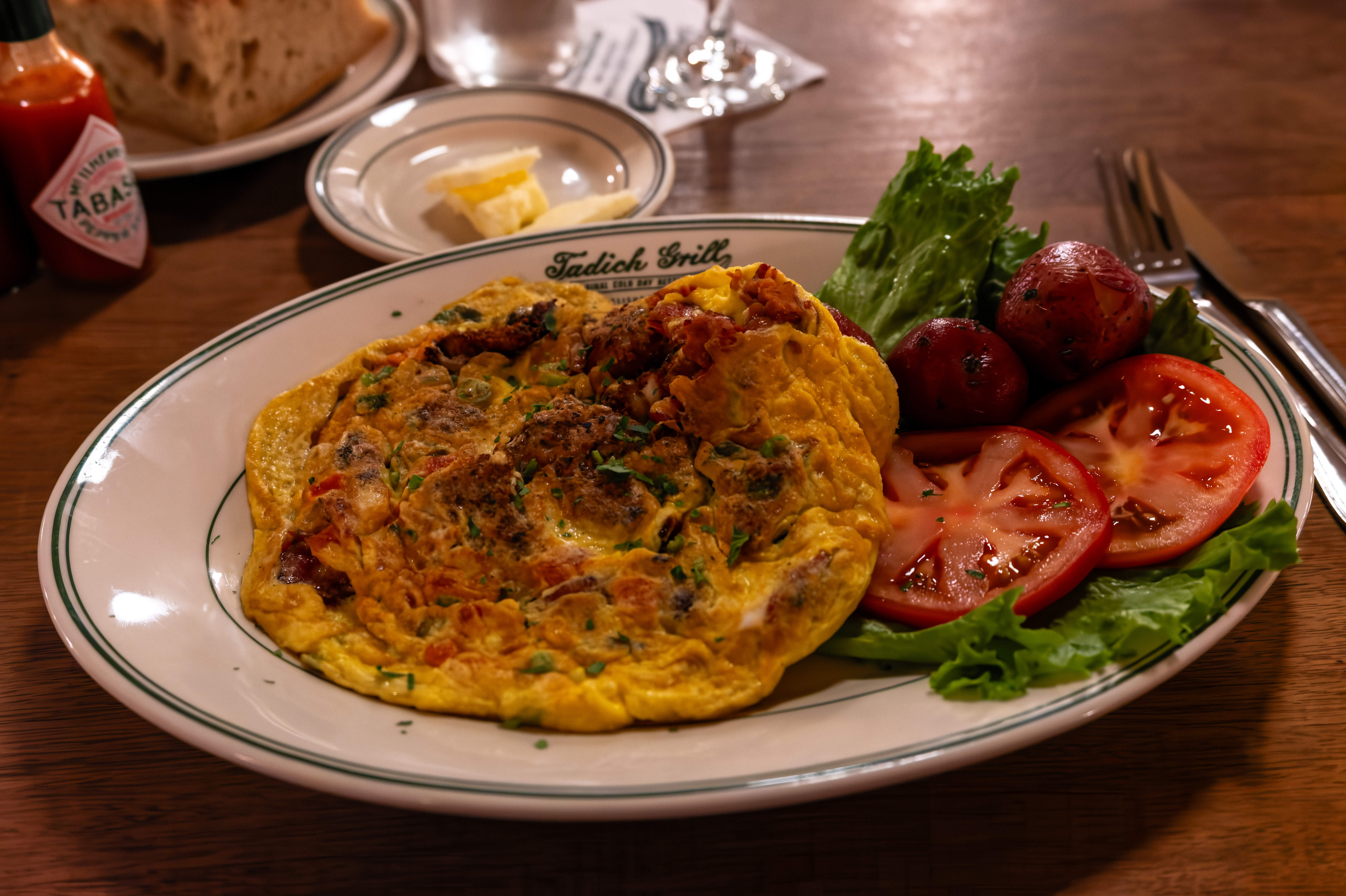 It was quite good. The oysters within were breaded and fried, and were nice with some crispy bacon in the omelette. It came with some small waxy red potatoes, and some tomatoes. I ate it with some of the free sourdough and butter.