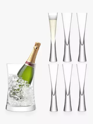 I collected the box from my local Waitrose (same company as John Lewis). It’s in a nice cardboard box with the flutes packed in pairs in individual small cardboard boxes and the bucket in a separate box, all fitting snugly in the big box. There is some movement of the flutes within the boxes but I couldn’t hear any clinking.