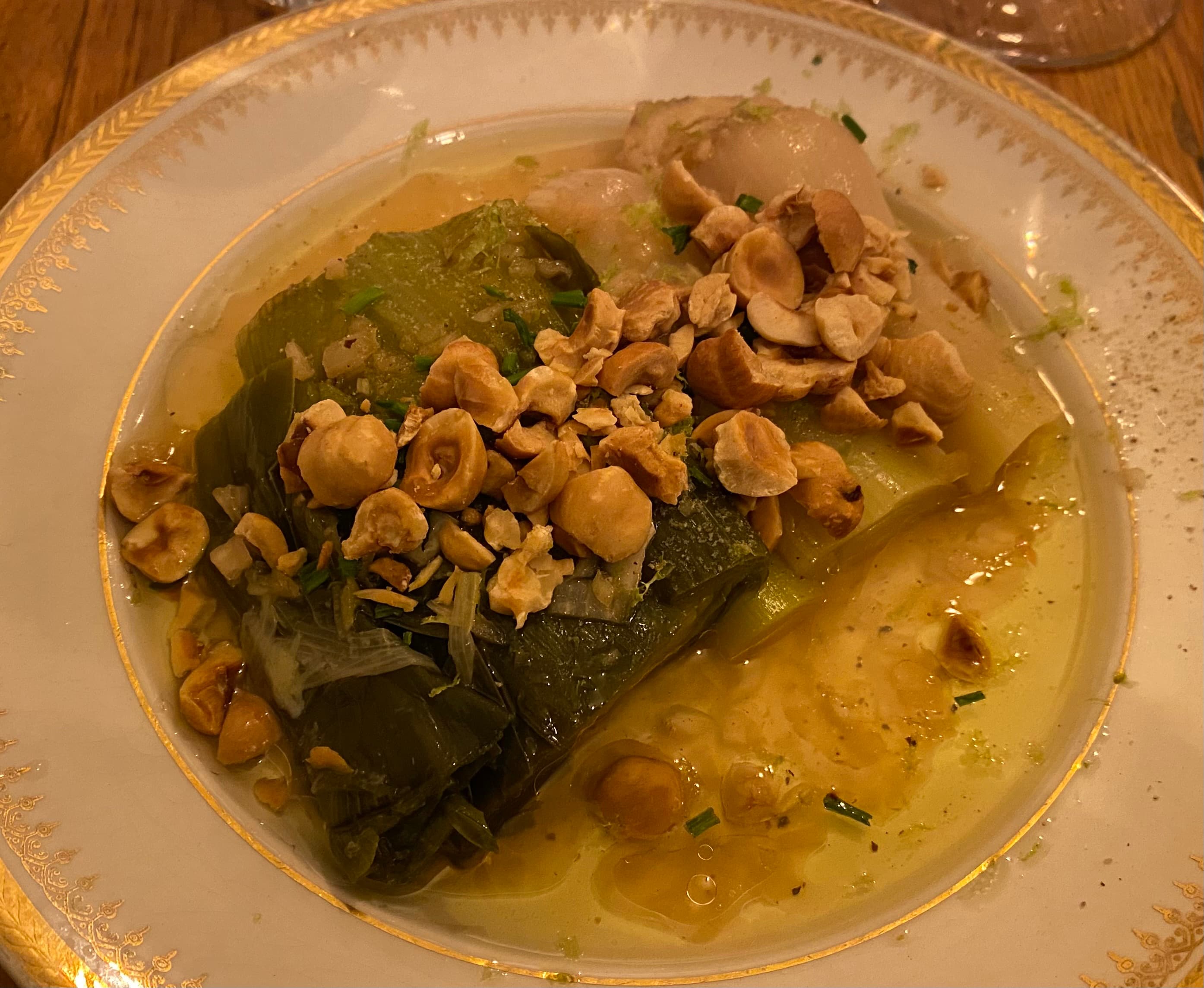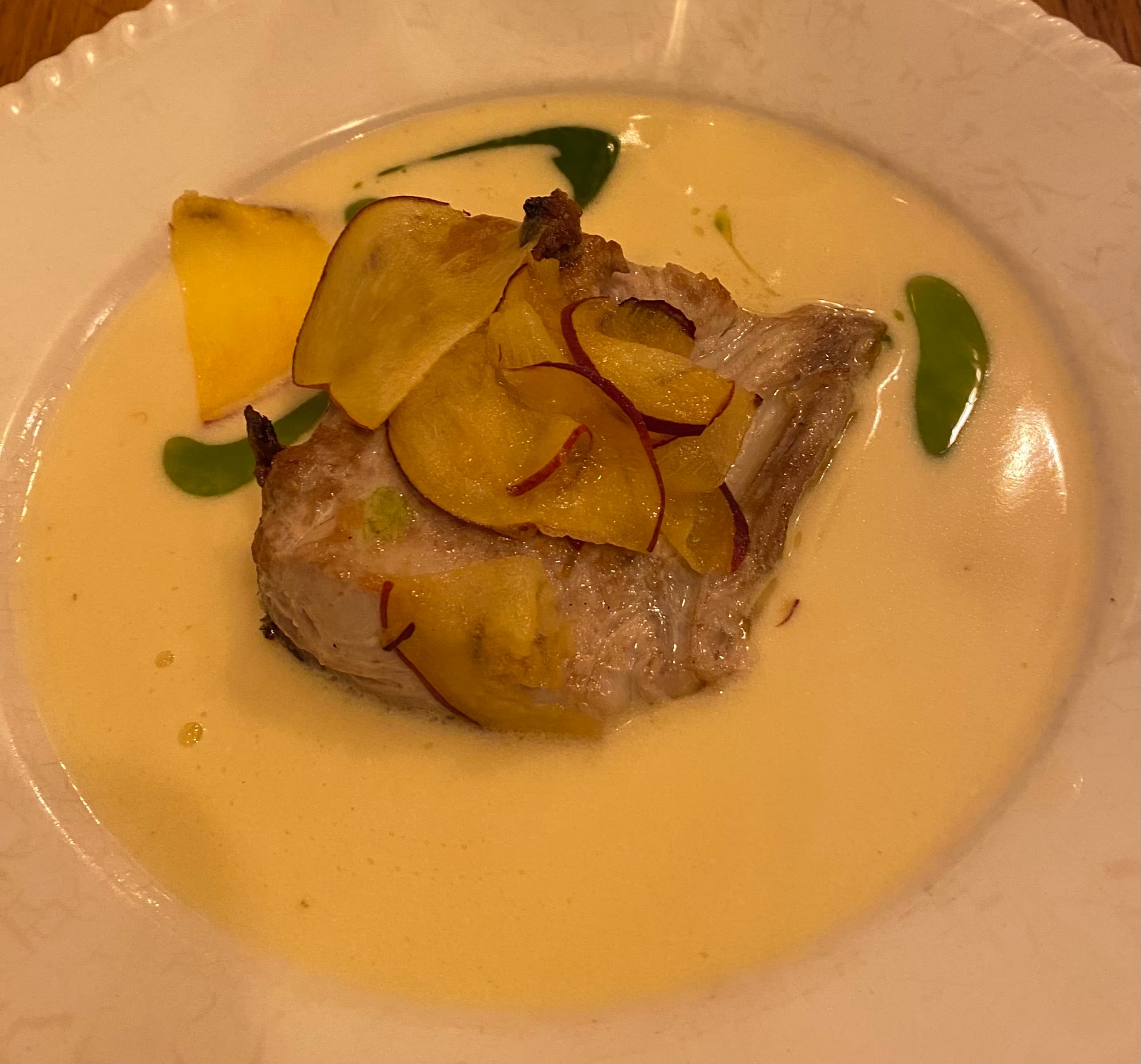 Next up were the grilled pollock on pommes purées with chive oil & a salad with spelt, fennel and feta with a honey-marjoram vinaigrette. The chef forgot the garnish so came running out to add it. Can’t pick a favorite dish - they were both so different, one comforting and the other refreshing. I was glad I got the salad after the halfsy swap versus the other way around.