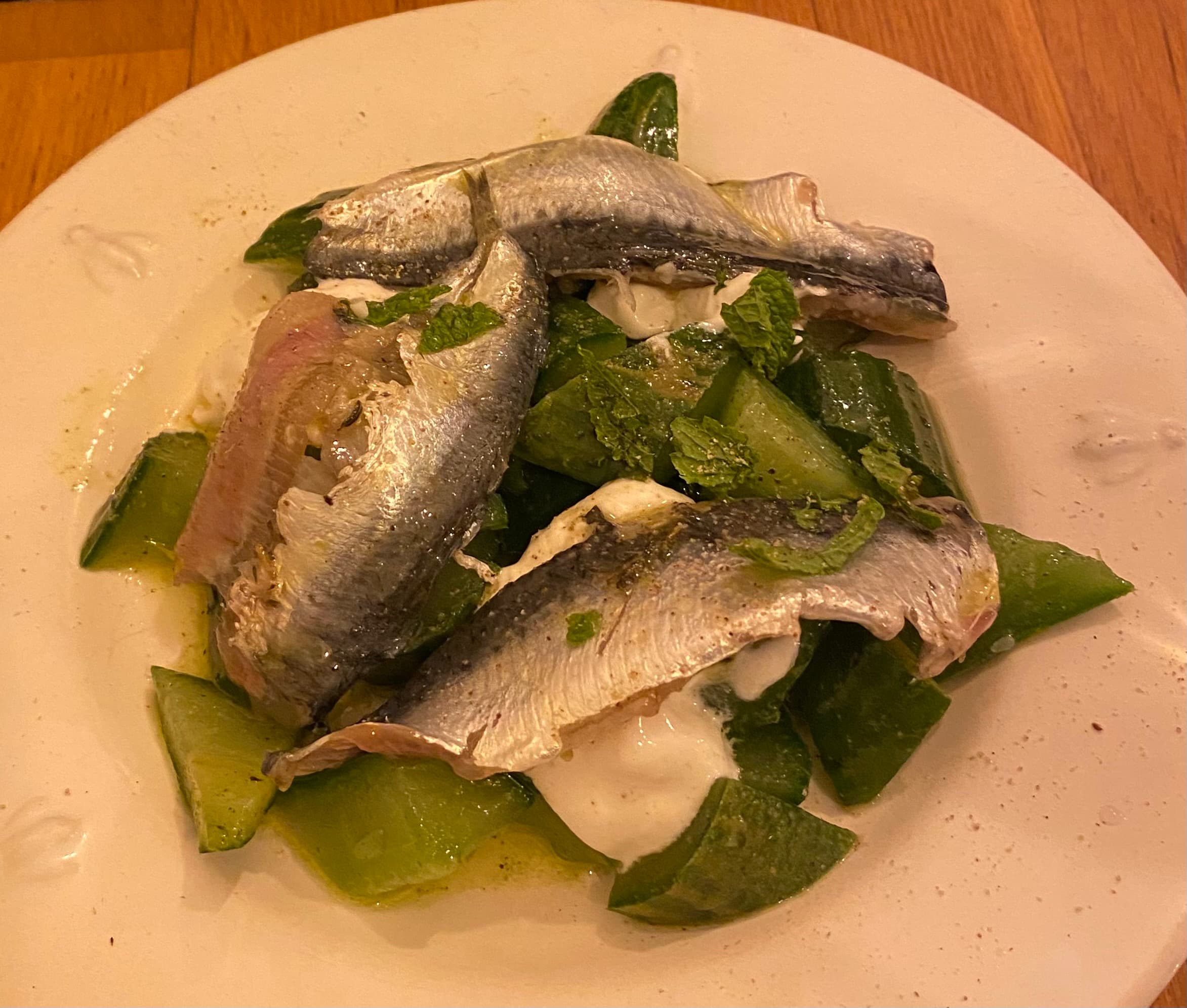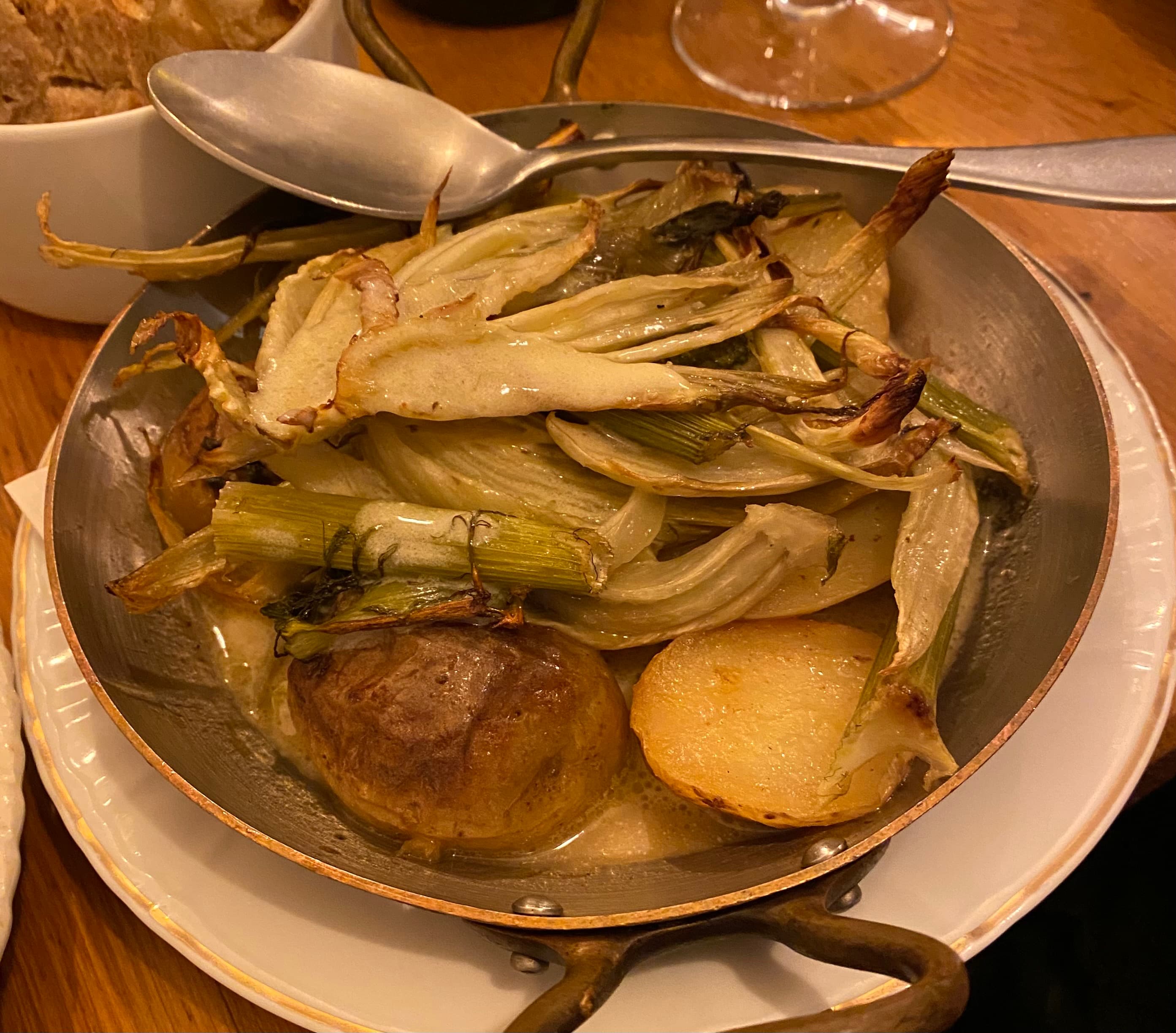 2 desserts, 2 diners, one each, right? No, we were both too drawn to the poached rhubarb and it was delicious. Good & punchy, but not over the top - not sure how it was sweetened but if someone can read what is after “poached,” it could be a clue. All I recognize is “limon,” part of the punchiness. *