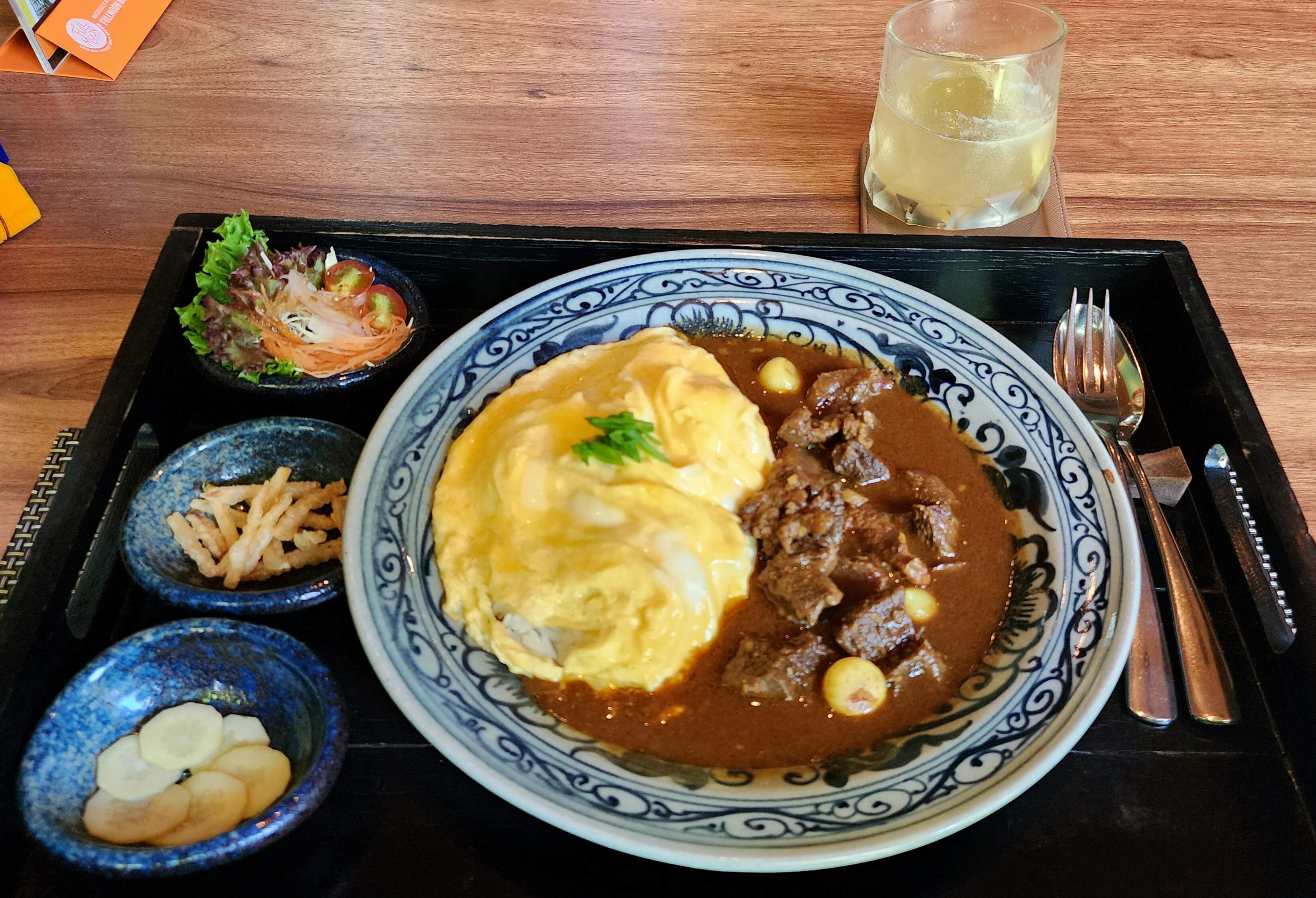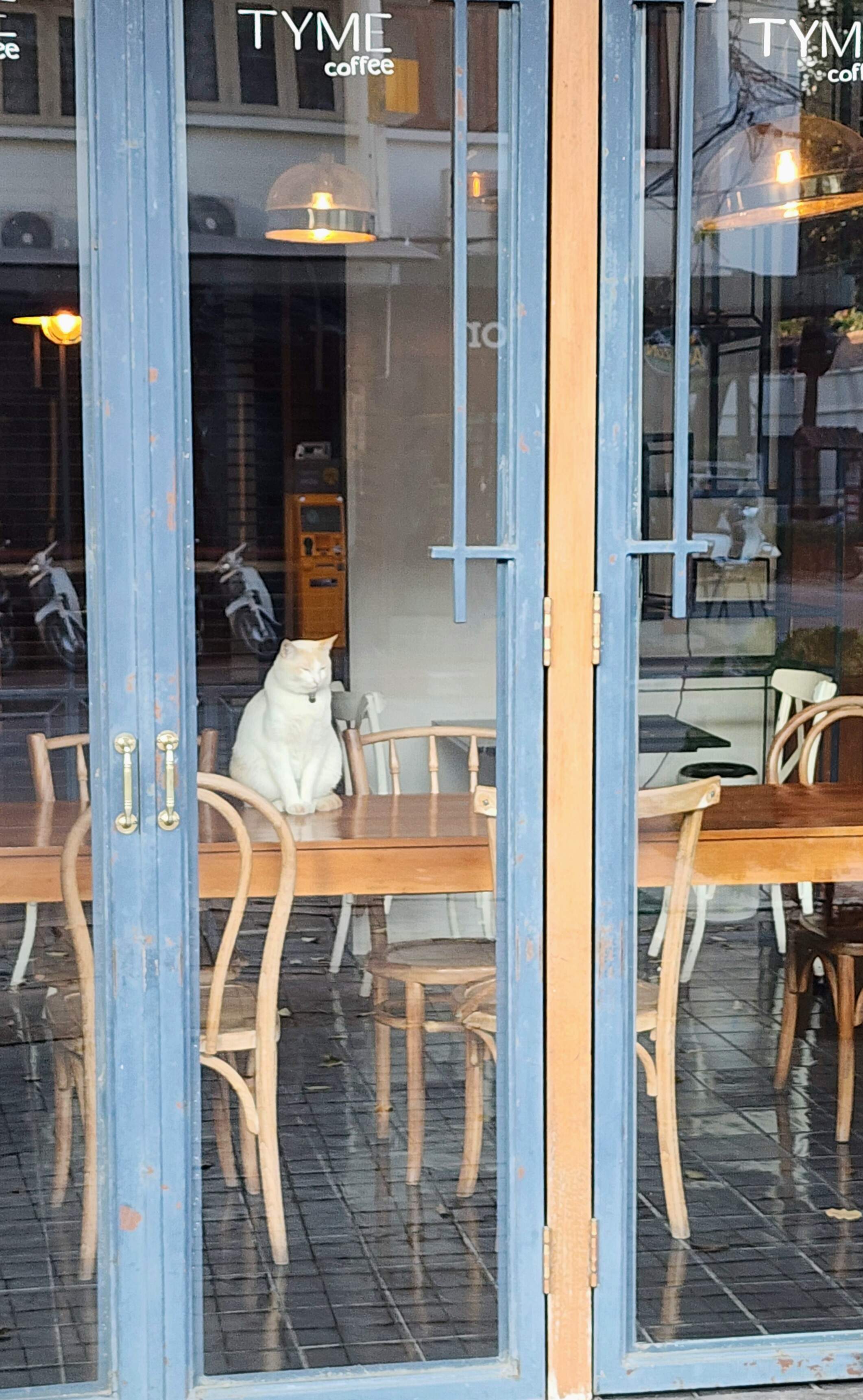 I was fairly full after that meal, and I wanted to visit Mae’s Original for their Fishball Green Curry so I figured I would let the meal settle and drink iced coffee at the Hex Bar. So I walked up towards what I think of as Chinatown (it is a lot larger than what I take for granted) and ducked in to hang with my coffee companion antelope. Or goat. Anyway he sits with me everytime I come to visit Bangkok. I had a long comfortable read with an iced coffee to prep myself for the Green Curry to come.