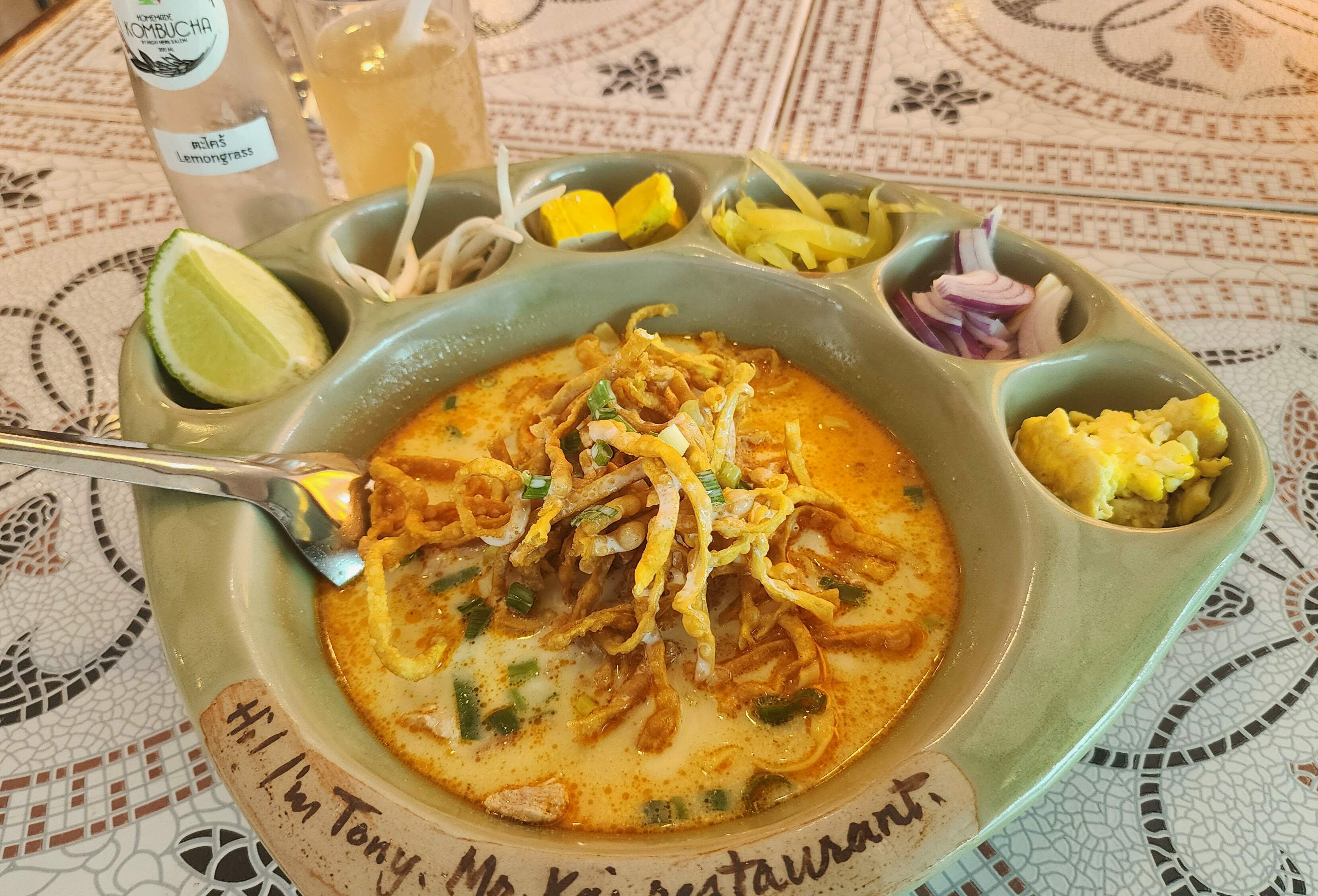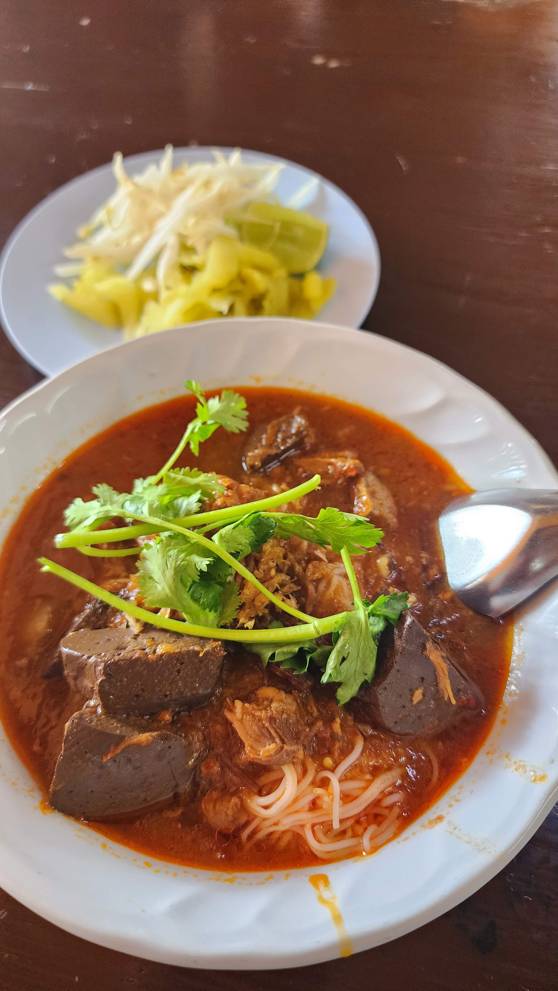 I was feeling a bit peckish by that point, but I did not starve for long. Rong Klan Nuea Noodle Shop is right next door so I ducked in and scanned the QR code for the menu, and waited. And waited. Using QR codes in brick buildings with no wifi signal is contraindicated. I eventually got my order into my phone and the positive aspect of the system showed up. Immediately. I had a Coke and a bowl of beef soup in minutes. And rather tasty beef soup, too. The broth was rich, the beef was just fatty enough to have good flavor, the noodles slightly al dente. Nice bowl of soup. Nice option on Song Wat Road!