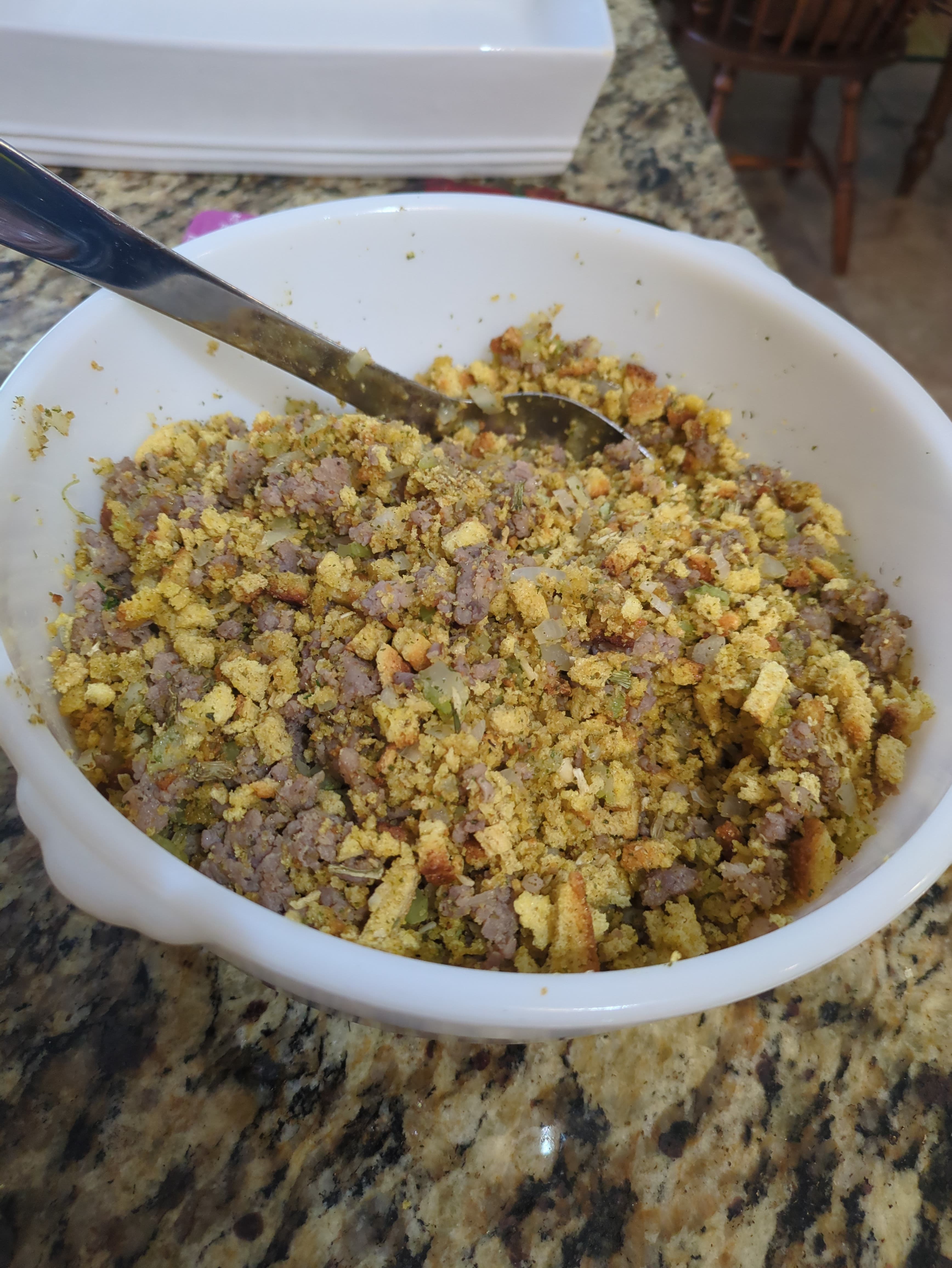 I found out the hard way a couple of years ago, why my aunt suggested that chicken stock and sausage would be an upgrade, and she only had salted butter at hand. Salt bomb! Luckily the mashed potatoes were underseasoned that year