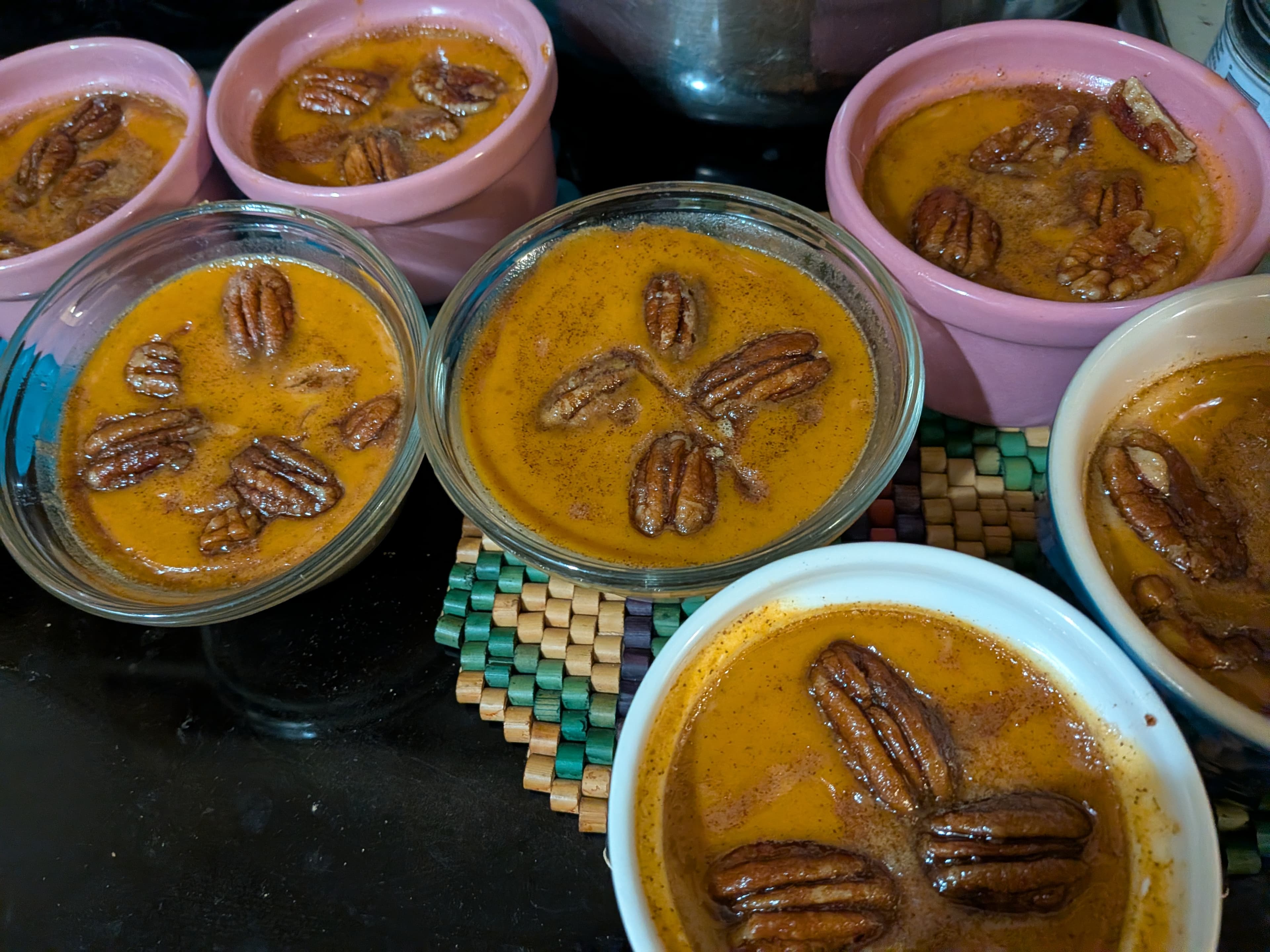 Grilled turkey club sandwiches. Convection oven fries with umami gravy. Carrot salad. Pickled onions. Pickled blueberries. Pickled green beans. Pumpkin pots de creme with chocolate brownie cookie.