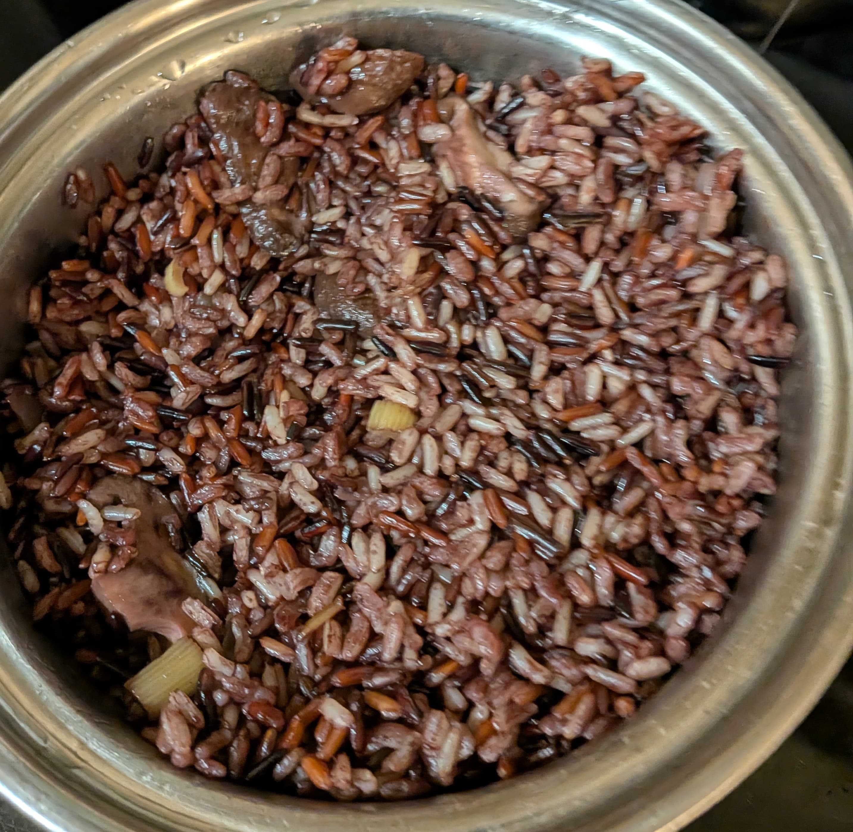 My dinner was turkey breast, Pepperidge Farms dressing with leeks and celery, mashed potatoes with butter, sour cream and green onion, gravy made from turkey drippings, flour and turkey broth, whole berry cranberry sauce from the can. Salad was mixed baby greens, fennel, celery, red Anjou, orange marmalade, rice vinegar and oo dressing. Cocktail was a maple syrup Manhattan and there was wine with.