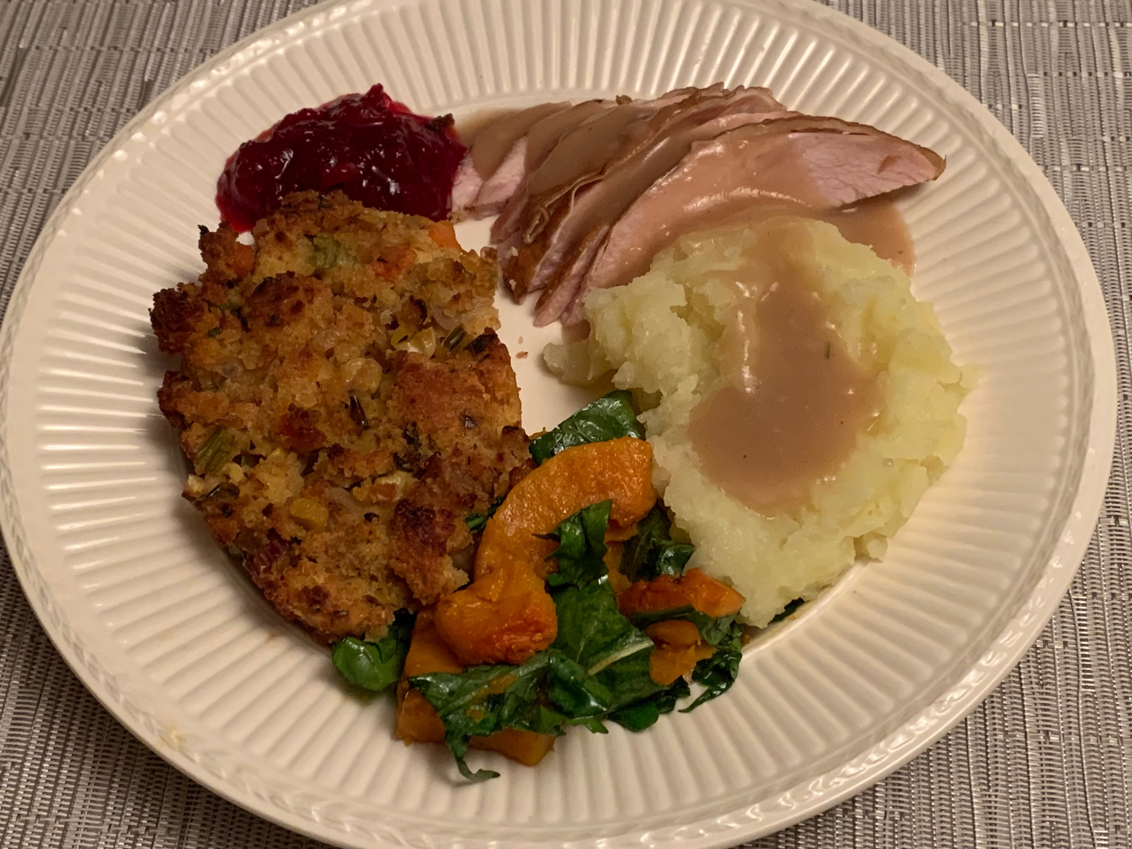 Reporting back on Thanksgiving dinner 2025. The stars of this plate were the smoked turkey breast and cornbread dressing with mild chilies. Thank you, @caractacus for inspiring me to try my hand at a chile cornbread dressing, and @LindaWhit for the idea of squirreling away corn stock in the freezer.