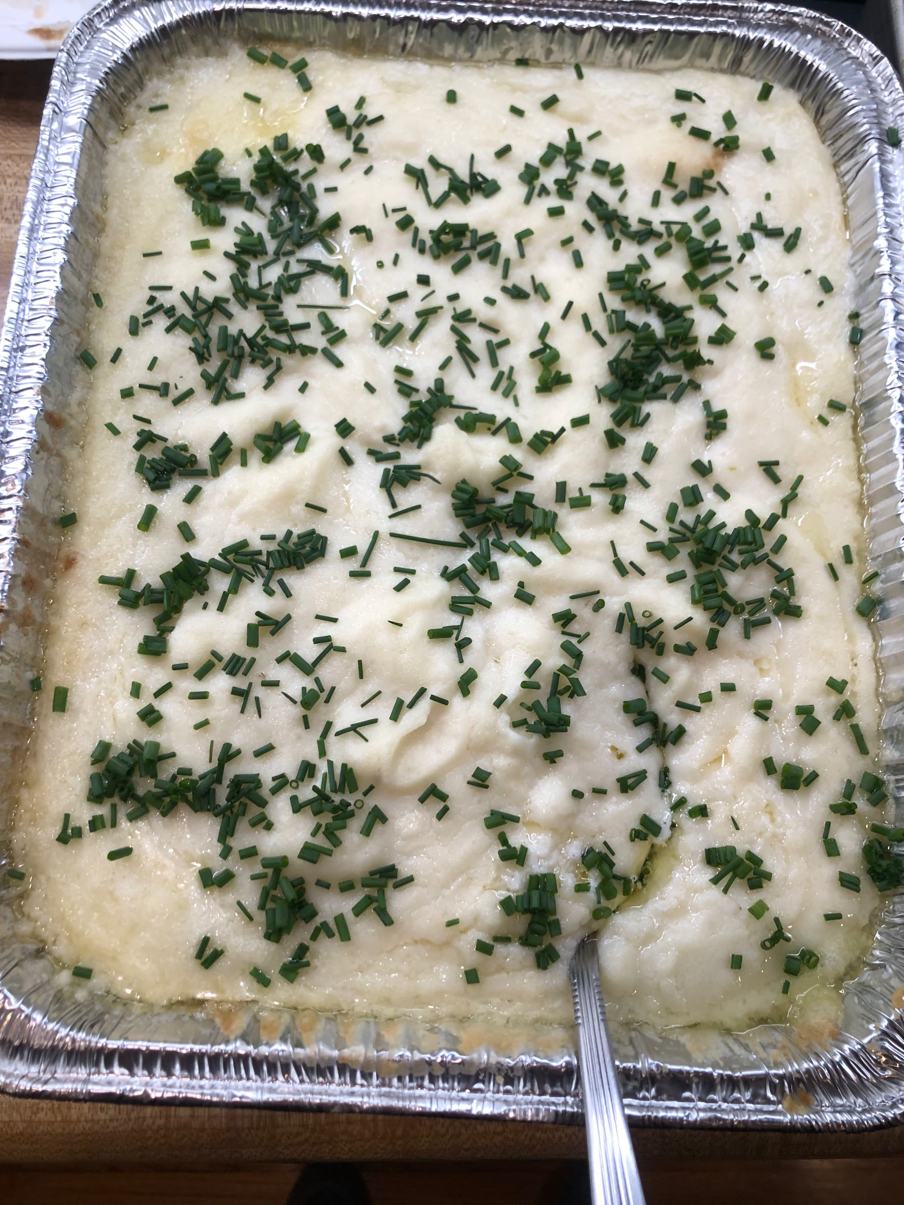 I got fancy adding fresh chives to the mashed potatoes but I couldn’t really taste them. I guess they made it prettier but I wouldn’t bother next time.