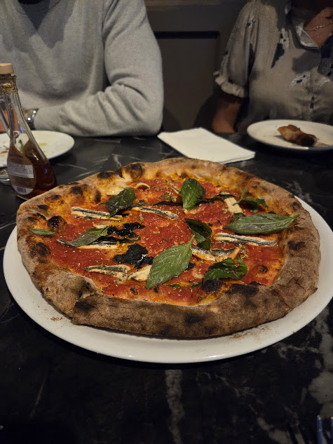 The pizzas were very good to excellent. Dough was salted nicely, and tender. Mortadella with straciatella and something I’m forgetting was excellent. The marinara with anchovies added was also very good but I did not realize they use marinated anchovies. I was not a fan of that. All in all a good, fun, meal with a nice lambrusco. I’ll be back to try some of the other menu items.