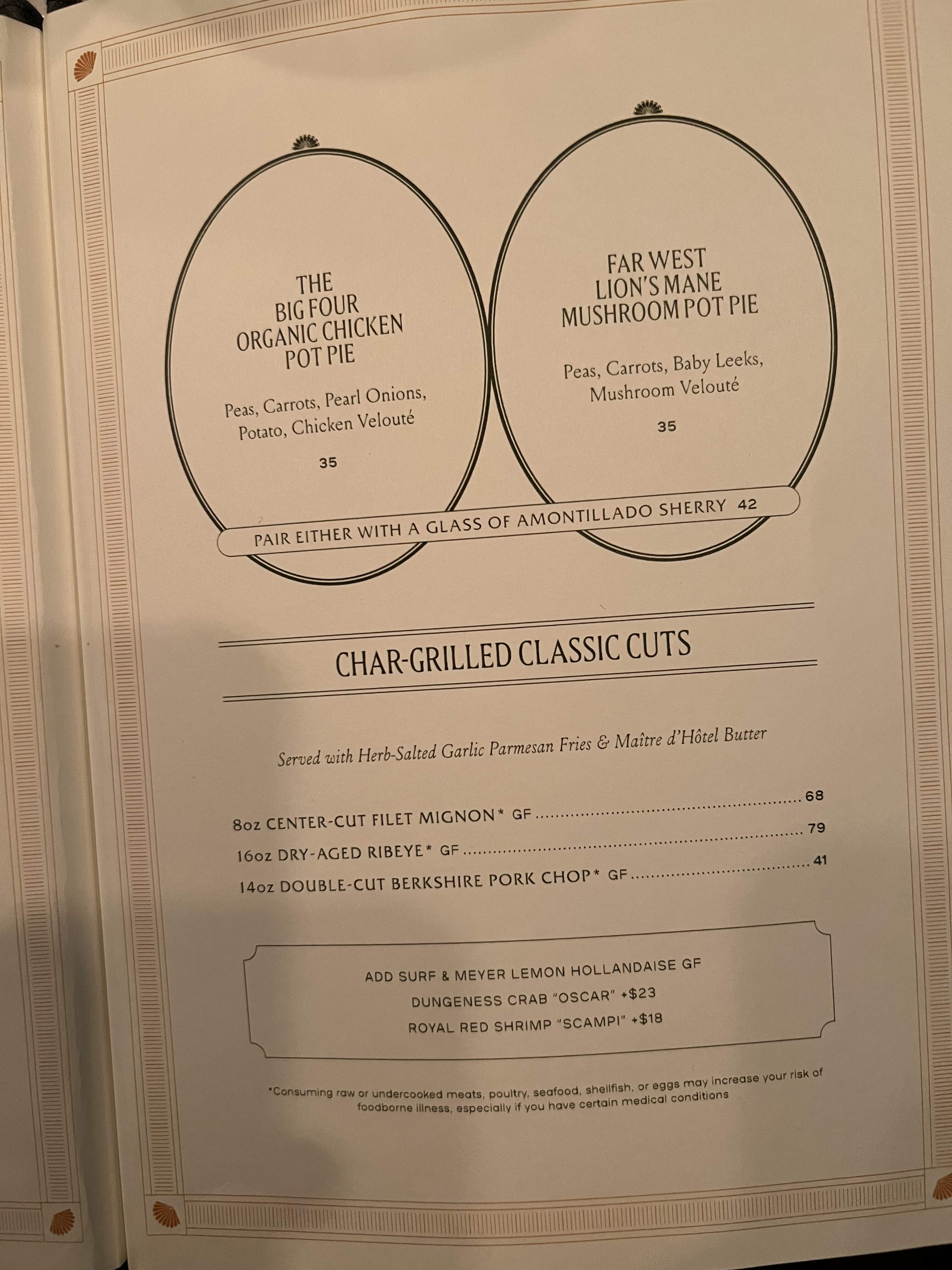 The Big Four in the Huntington Hotel in Nob Hill reopened last month, and I had a late lunch there on Sunday. They opened in 1976 but have been closed since the beginning of the pandemic in 2020.