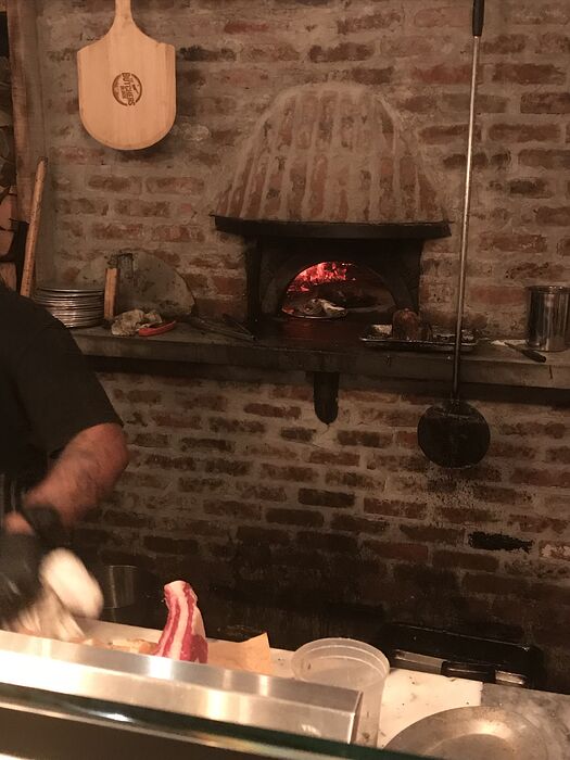 Because they are cooking the steaks Pittsburgh style in the pizza oven, they are no longer serving pizza. We were invited in the back to see the steaks cooking in the oven.