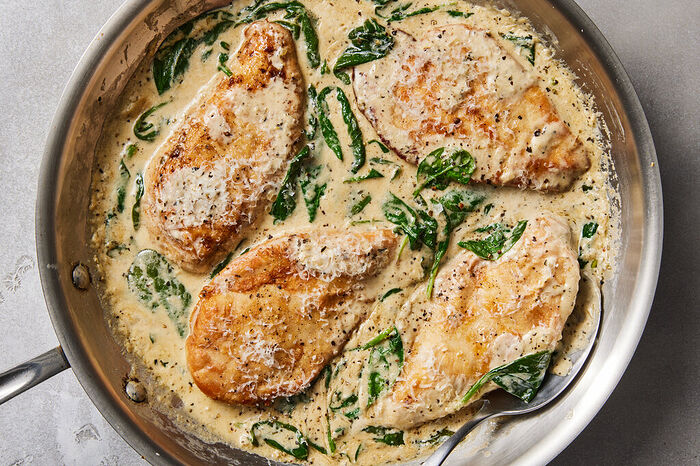 I did find several other Chicken Florentine recipes from elsewhere that I’ve printed off; I’d like to compare against the NYT version. But I have a large container of baby spinach at home, so this is sounding good right now!