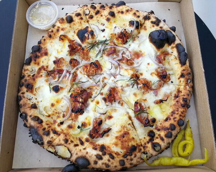 Love Grows Pizza (Pancetta, Rosemary, Red Onion, Raclette, Chili):