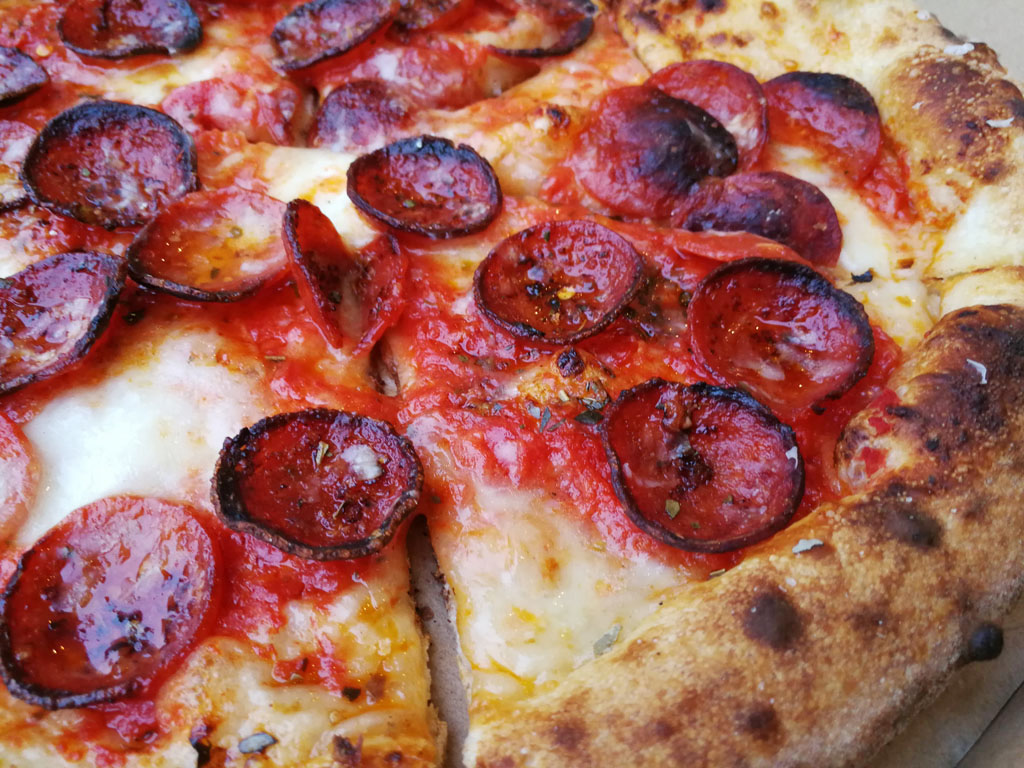 Pepperoni Pizza (Tomato, Pepperoni, Mozzarella, Parmigiano, Chili, Garlic, Oregano):