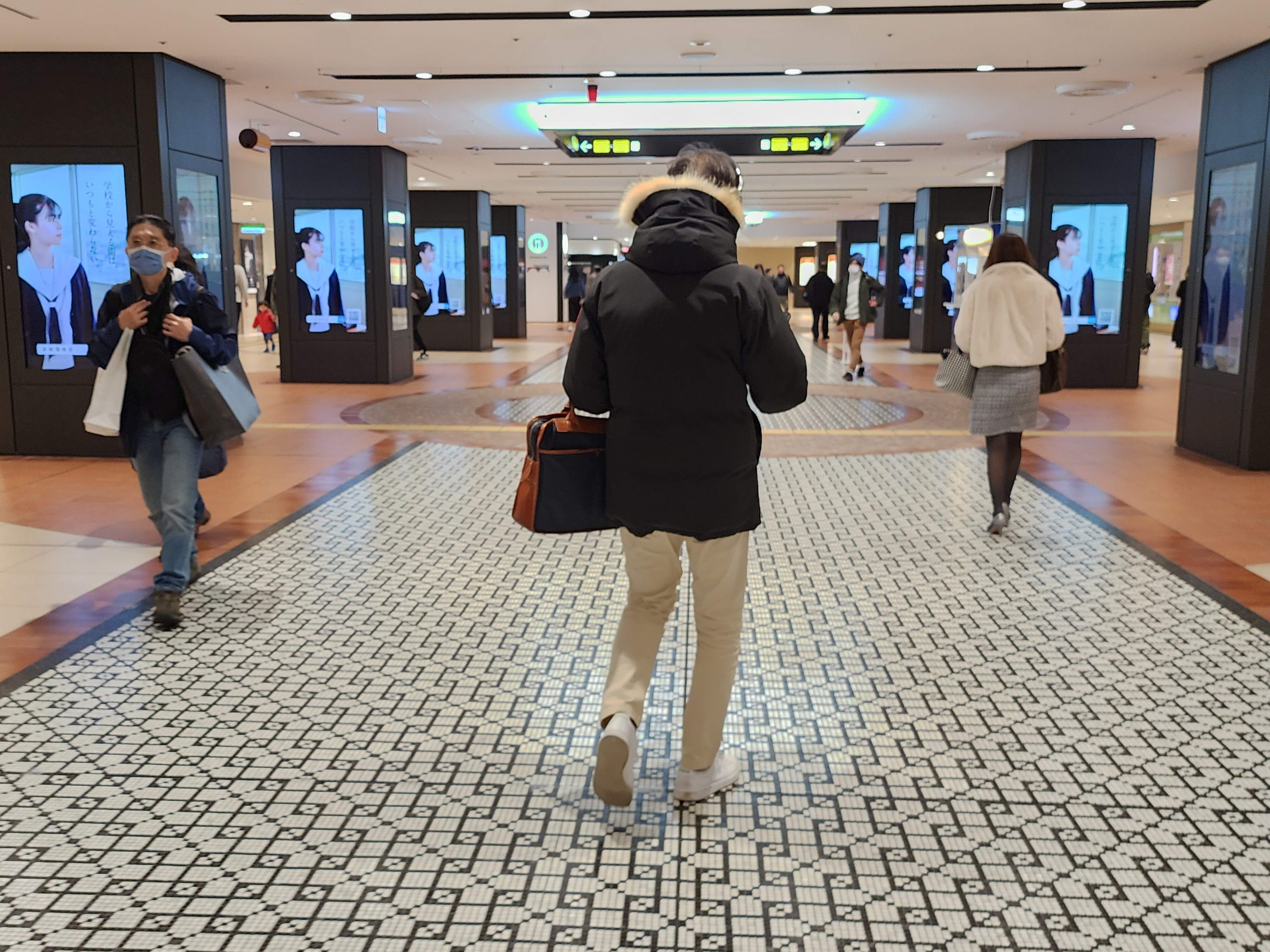 I’ve marked which way lies south. The Station Hotel is perched along and above the west edge (“Marunouchi”). Some of the food stuff I’ll talk about is on the lower level at the southeast edge (top left of map). Here’s that level (I’ve a subtle dashed rectangle to mark the spot: