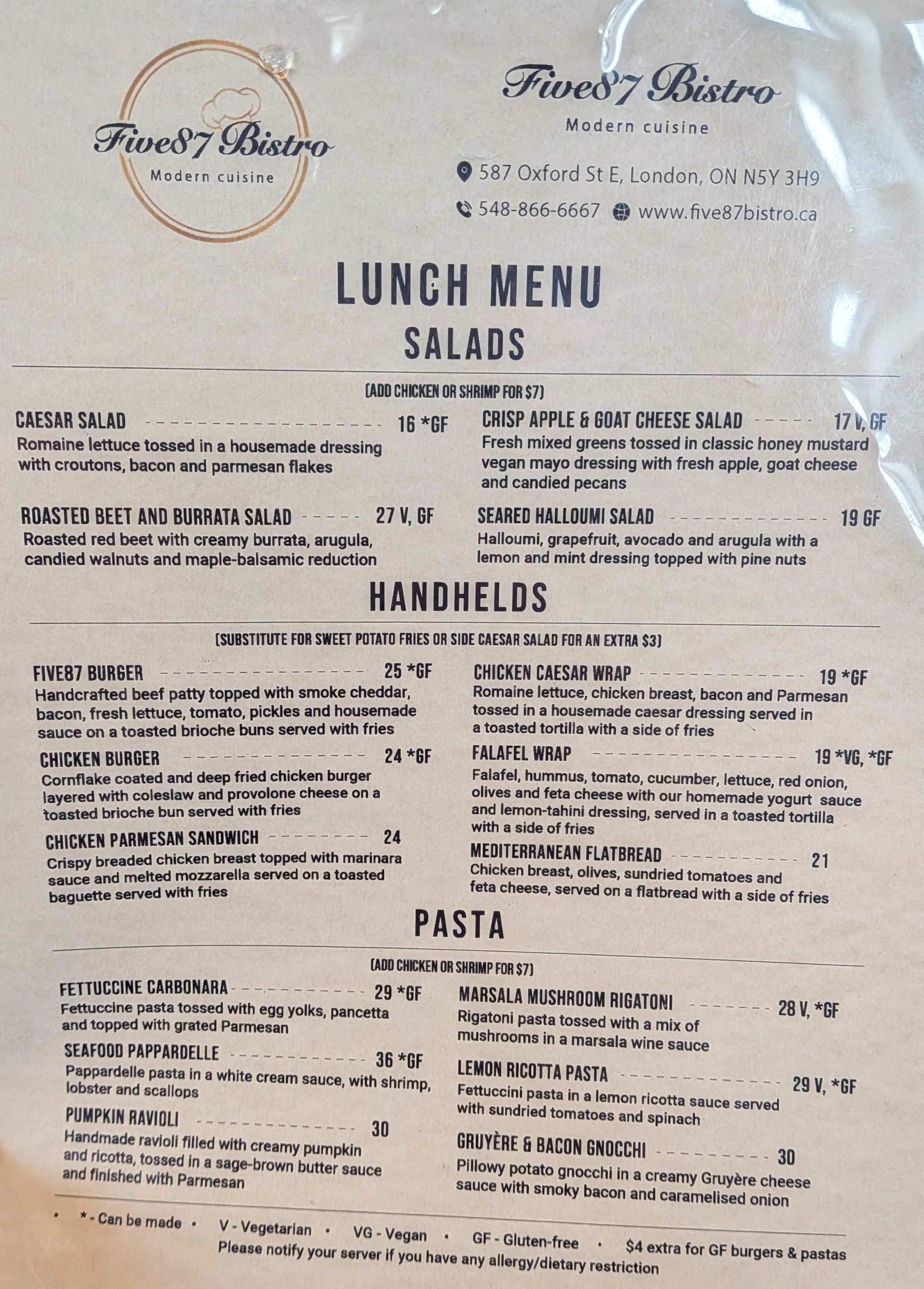 The Carbonara costs $29 CAD at this pretty nice restaurant in London, Ontario. The seafood pasta with cream sauce was what 3 people at the table ordered. It was slightly cheaper than the seafood pasta being served elsewhere around town, which often costs between $36 CAD and $40 in London, Ontario.