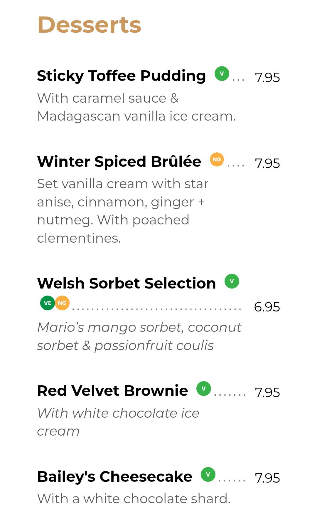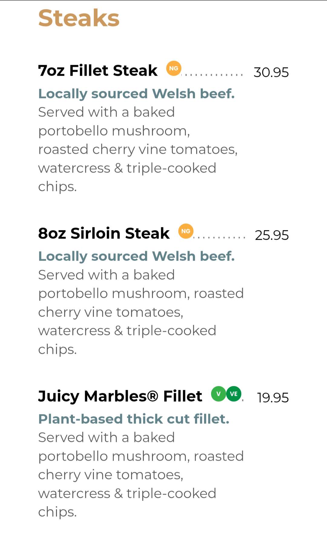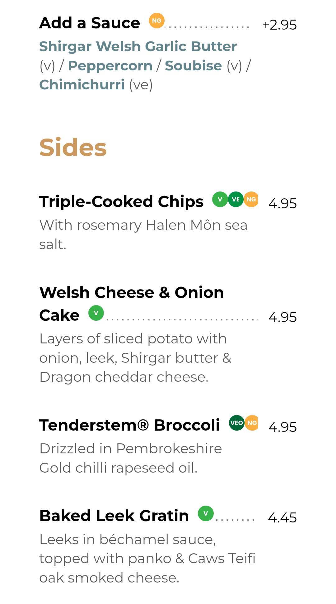 Screenshots from the a la carte menu, which we’ll be ordering from.