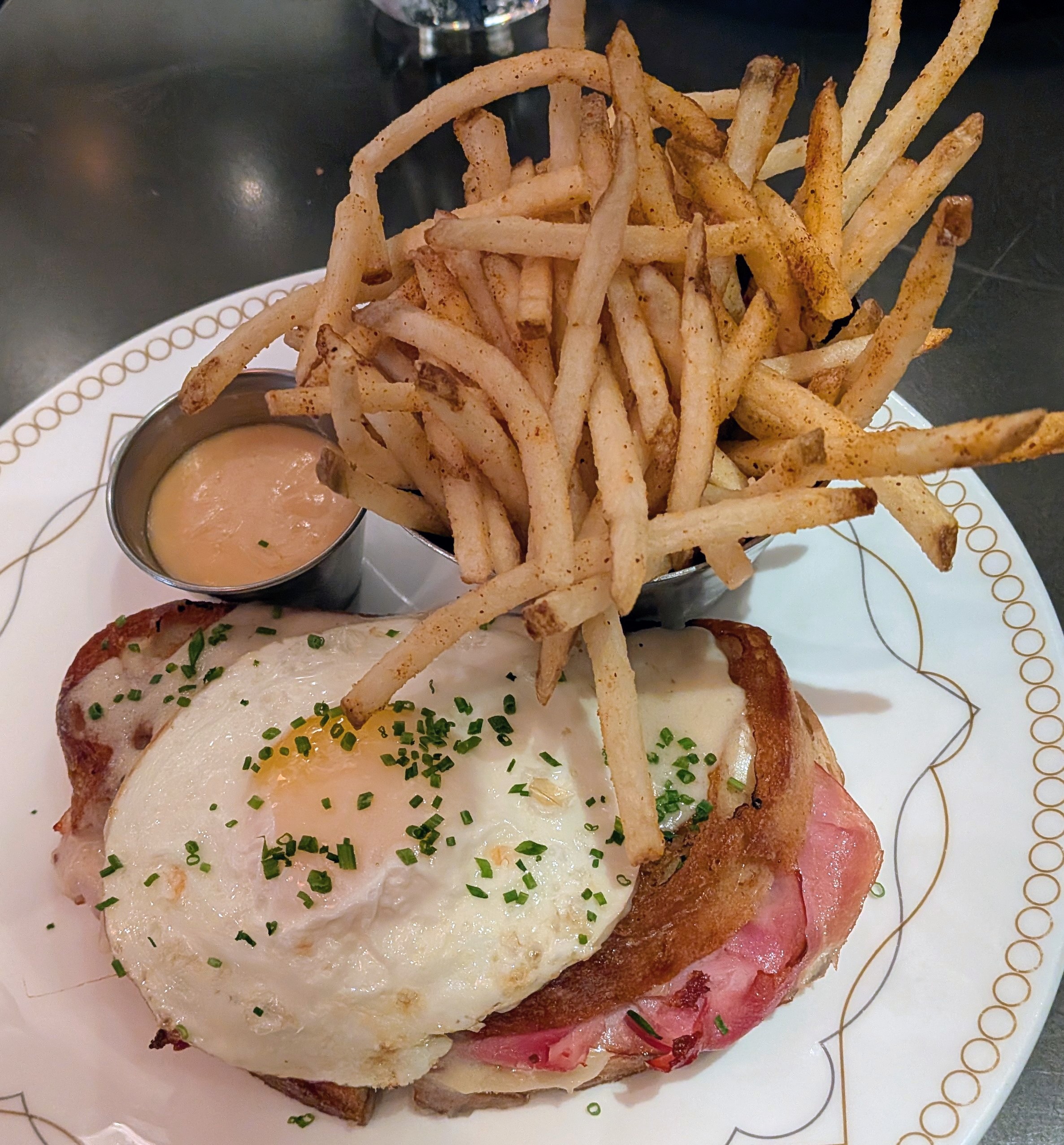 Shaved Ham, Gruyère, Dijon Aioli, Pickled Shallots, Mornay Sauce, Fried Egg, Cluny Frites