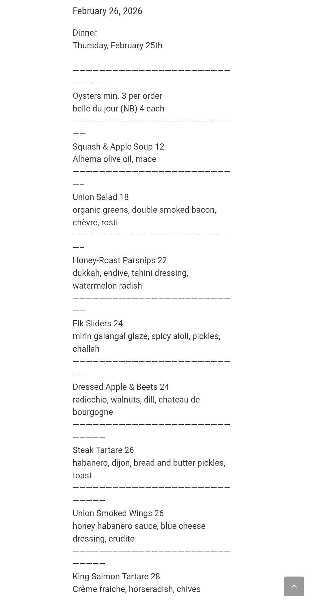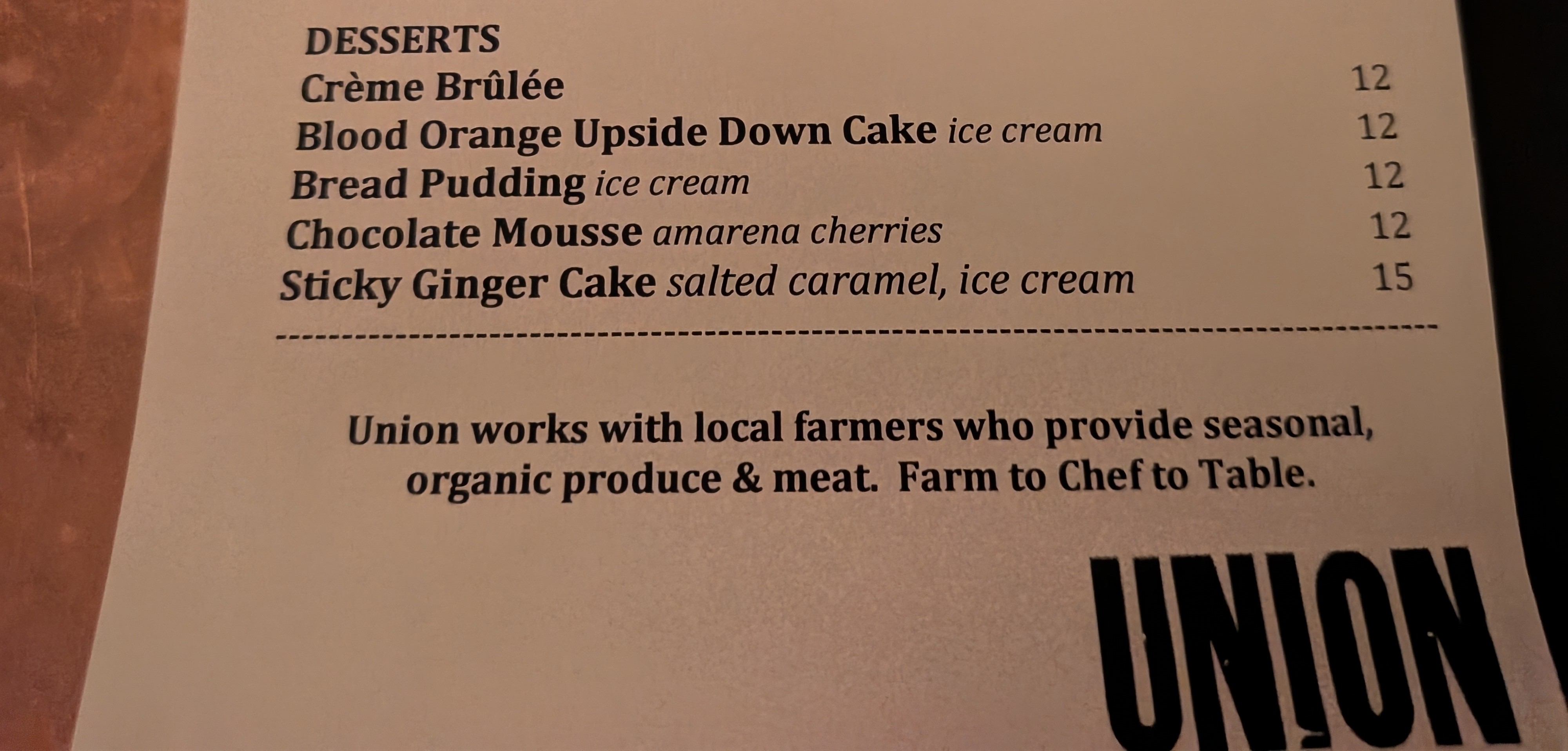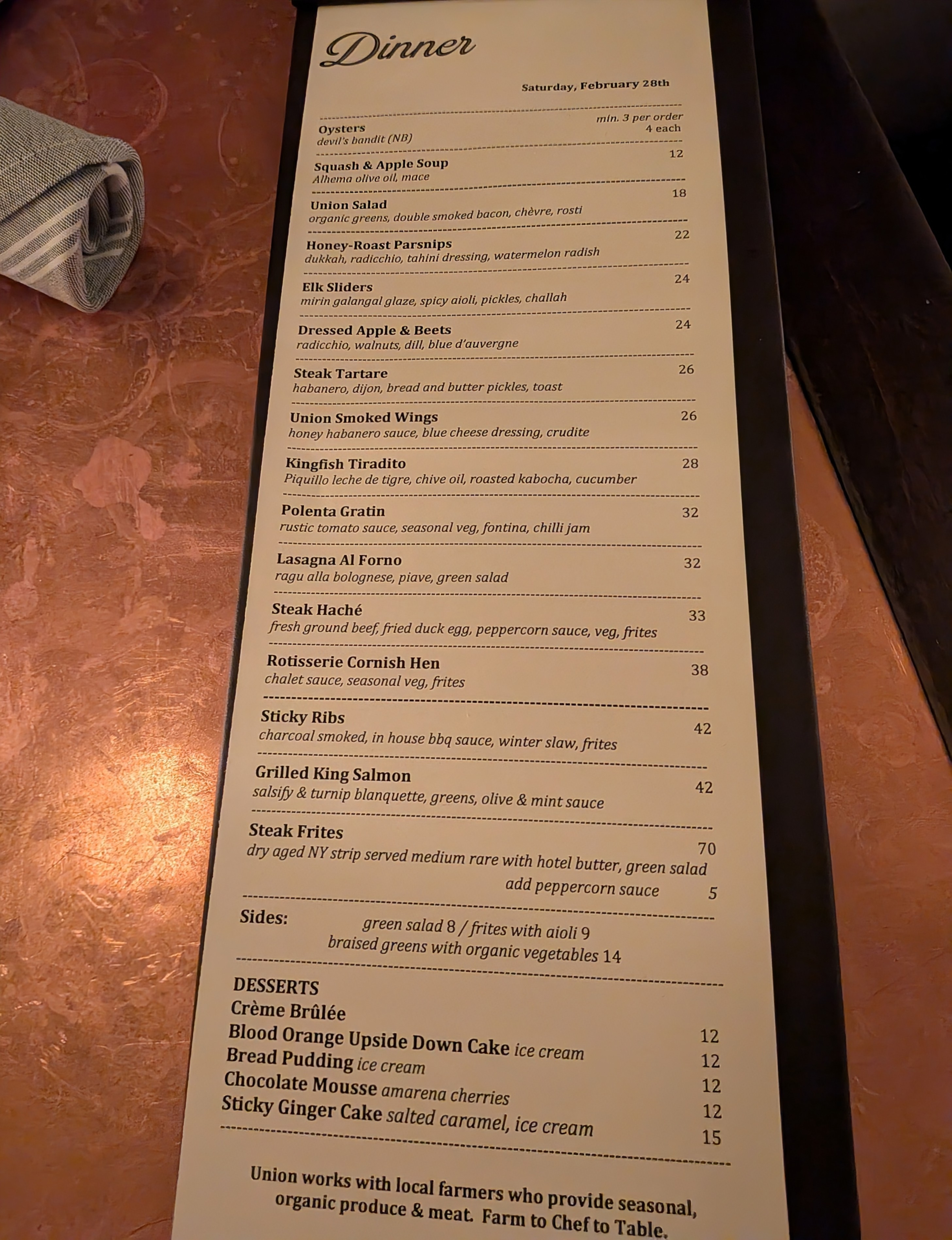 What would order for dinner at Union in Toronto? The menu changes a little daily. This was last night’s offering.
