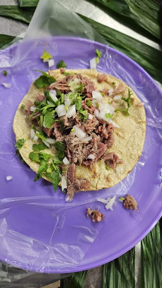 Our last savory bite were tacos - we opted for pork cheek and pork tongue. They gave us a sample of a purple banana juice.