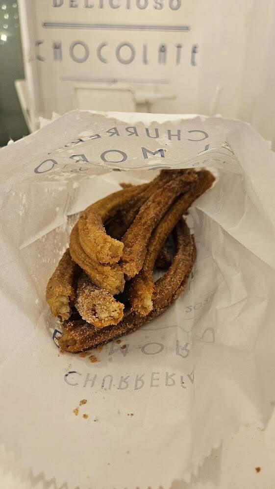 After some shopping and relaxation, we had dinner at Campobaja. It was… fine. I’m not quite sure what made me choose it in the first place - the service was not great, and they were out of two of the items we wanted. We also learned here that less casual spots tend to over-season/over-sauce seafood (for our liking). One standout, though, was the octopus and chicharron gordita, which was a cheesy umami bomb. We had hot chocolate at La Rifa after (really fun watching them make it to order - I got a pack of 6 bars to do a chocolate tasting back home). Never ones to shy away from gluttony, we ended the night with churros and 3 dipping sauces at El Moro. THe churros were perfect - a little bit of crisp on the outside and soft on the inside. An order of four is equal to approximately twelve, apparently!