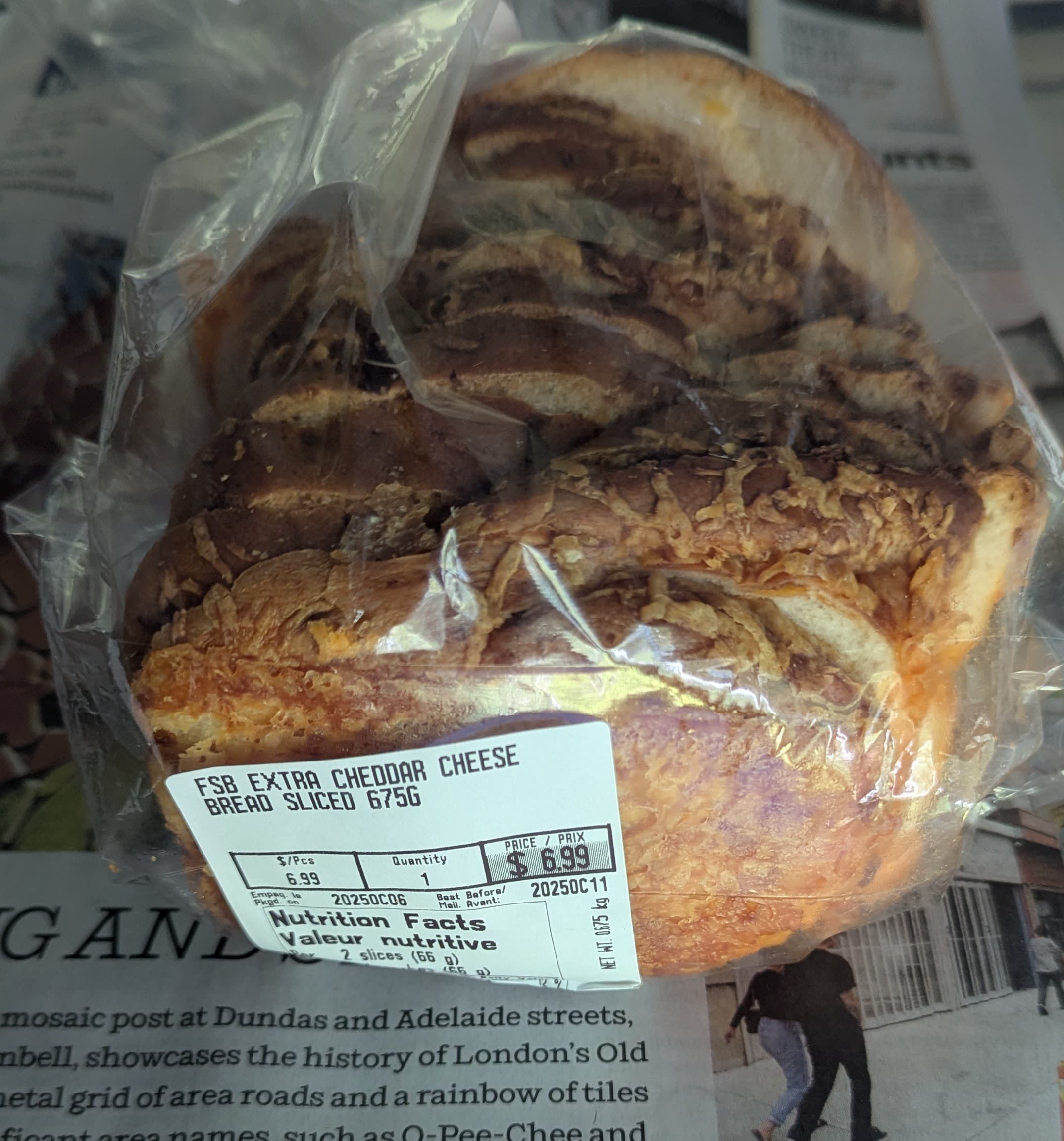 I also like toasted Ontario cheese bread with unsalted butter and a pinch of sea salt. Toasted Ontario cheese bread with butter was my breakfast today.