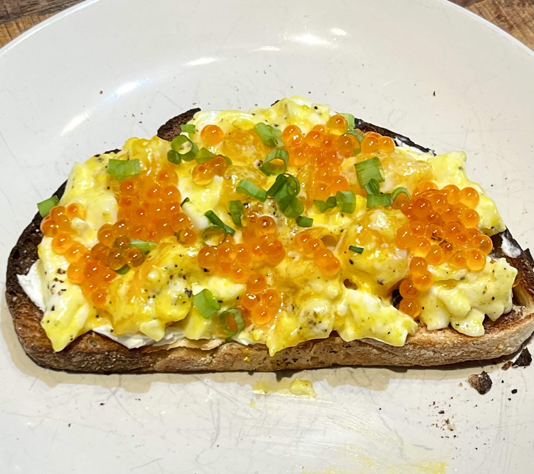 I love bread and like putting most things on my (lightly toasted) bread. Our supermarkets have a section with about 300 things you can put on toast/bread. I make my own standard stuff for weekend lunches (pistachio paste, kumquat mamarlade - when in season, peanut butter, chocolate-macadamia paste). What I often put on my lightly toasted bread are sardines, grated tomatoes, sliced liver, scrambled eggs-trout roe-North Sea shrimp, natto.
