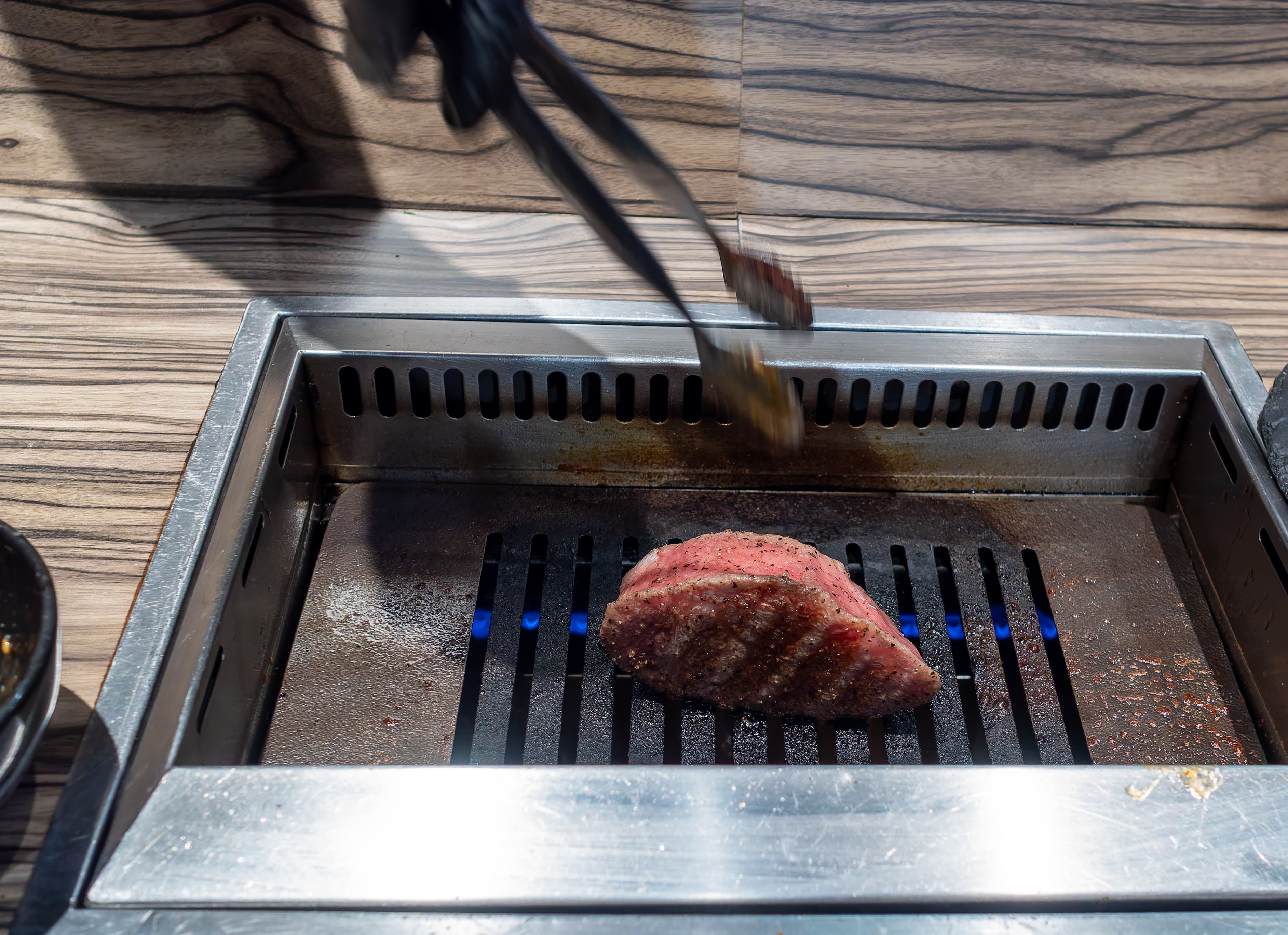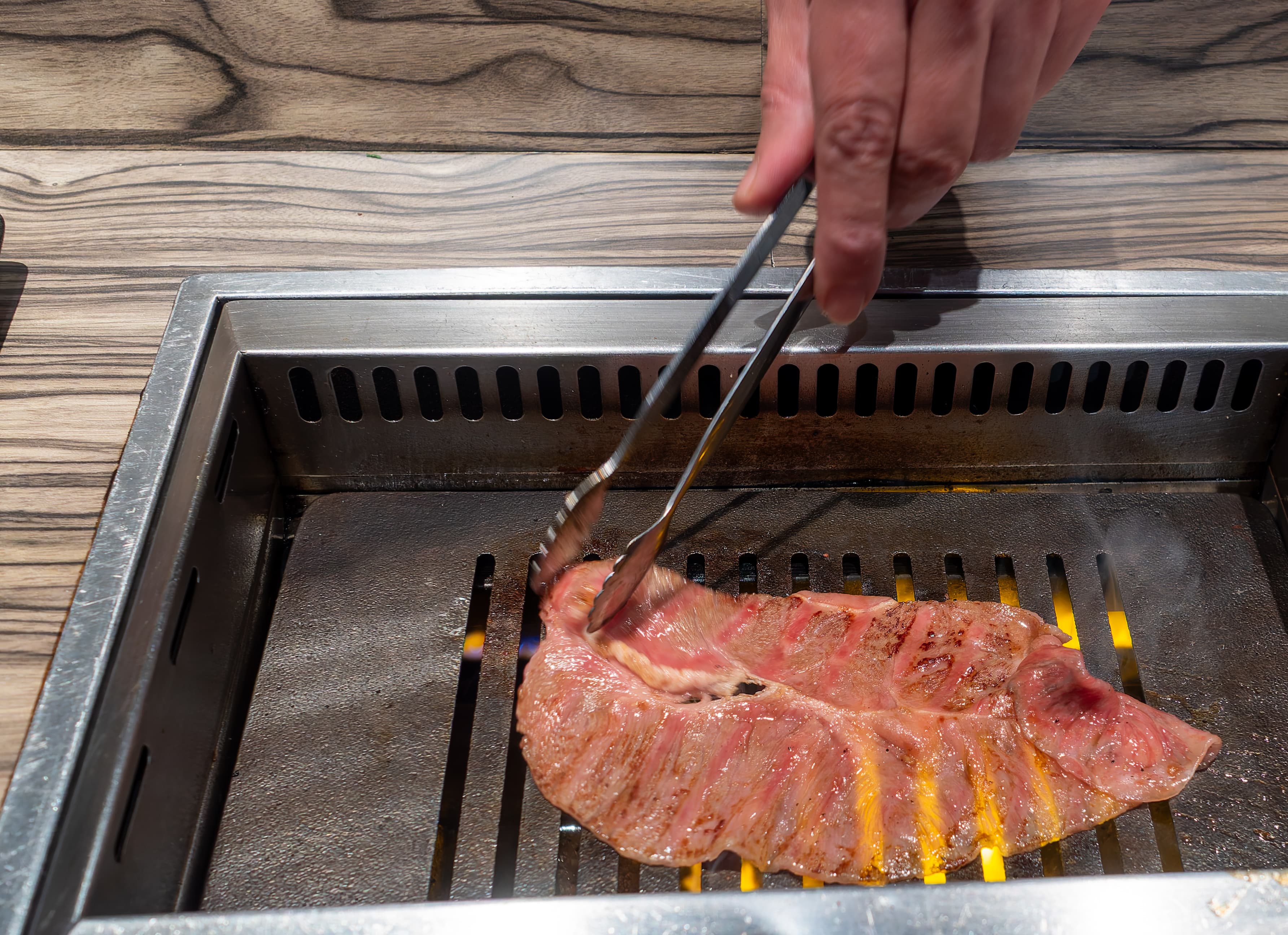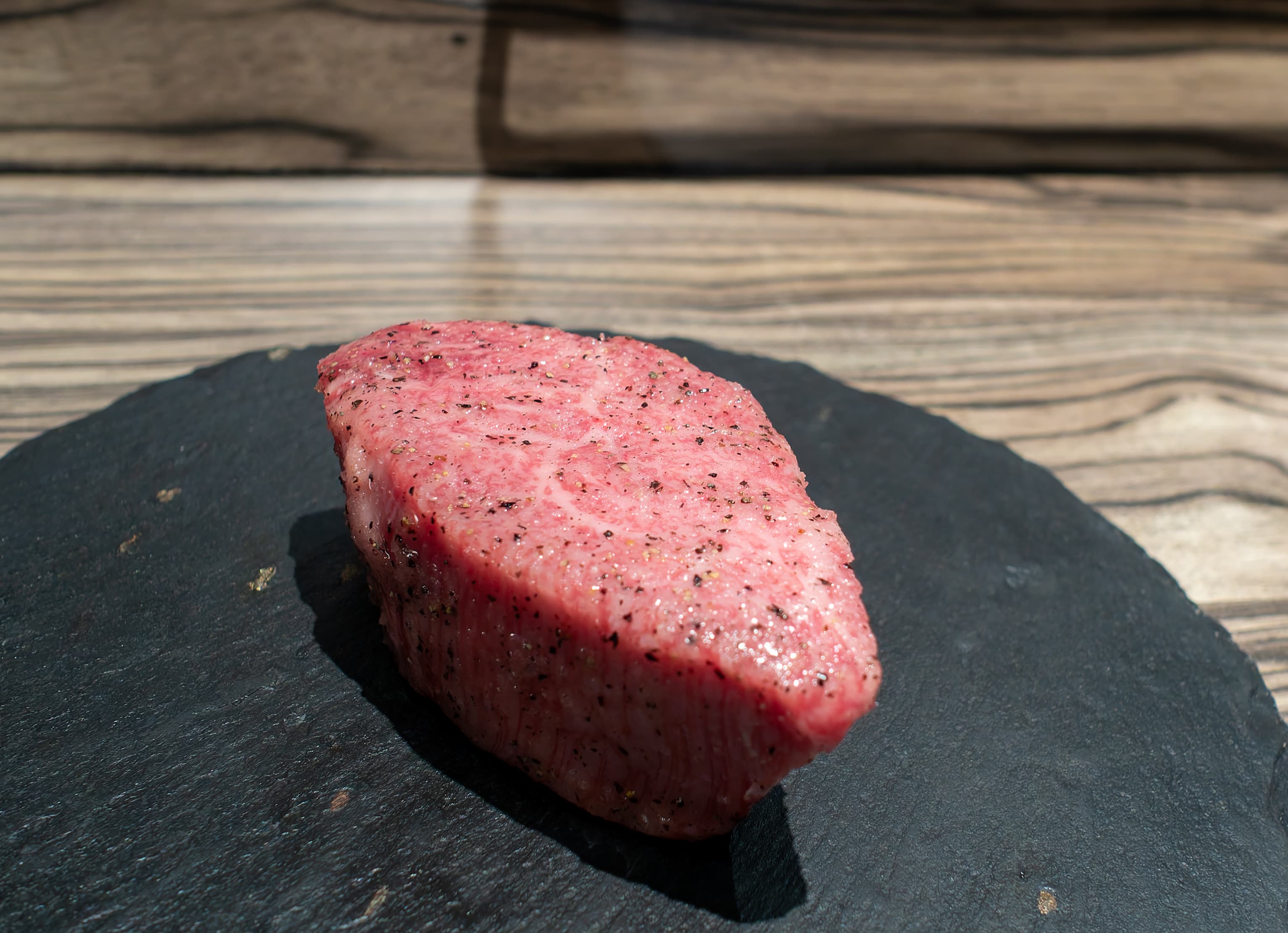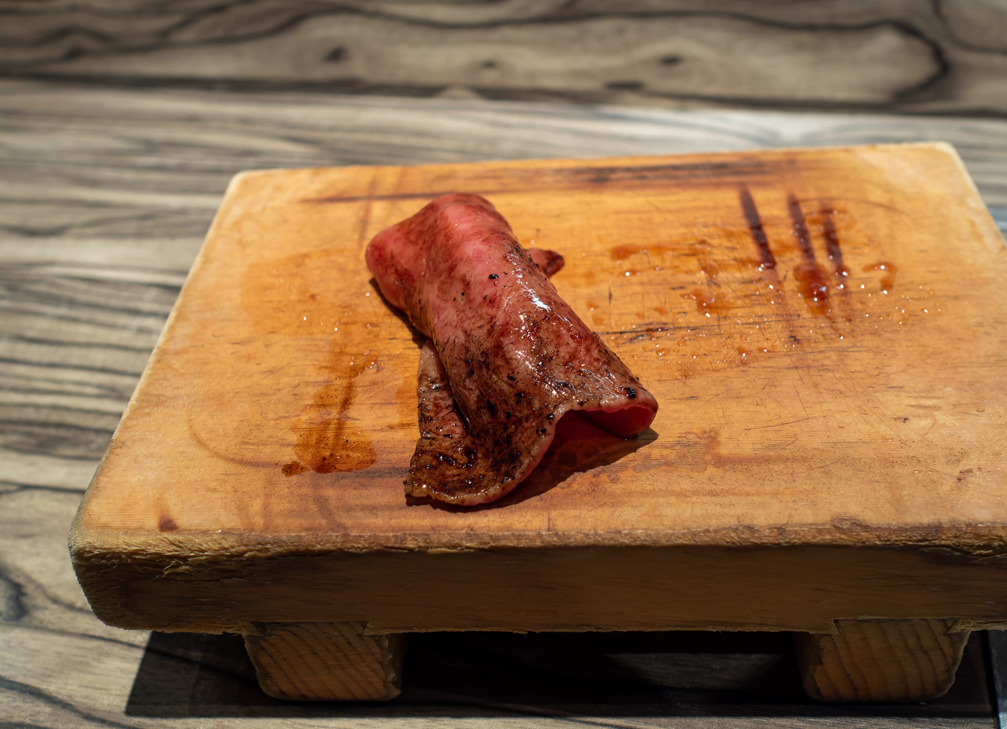 A piece of steak was enthusiastically displayed.