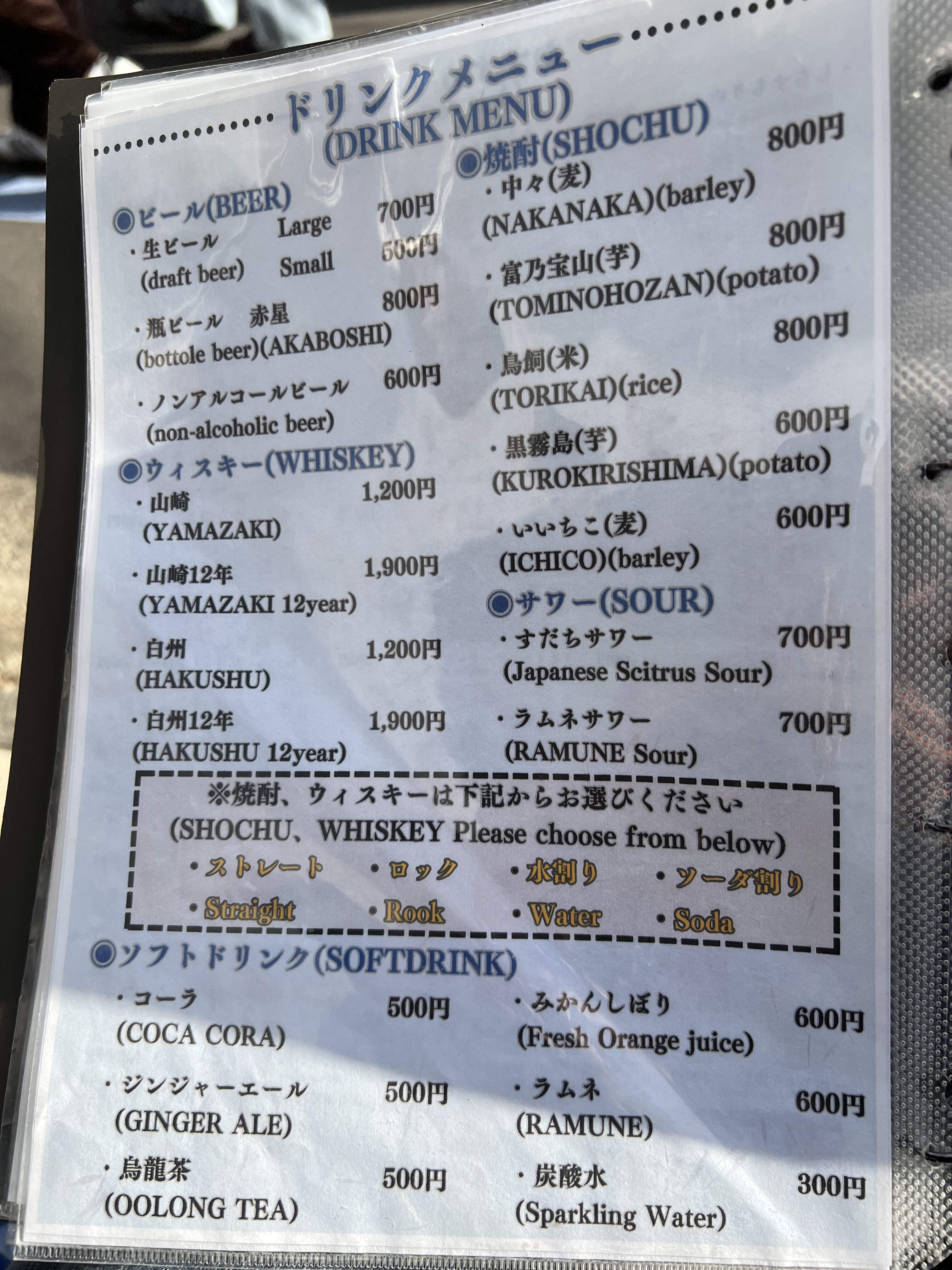 I had a shochu on the rock to drink.