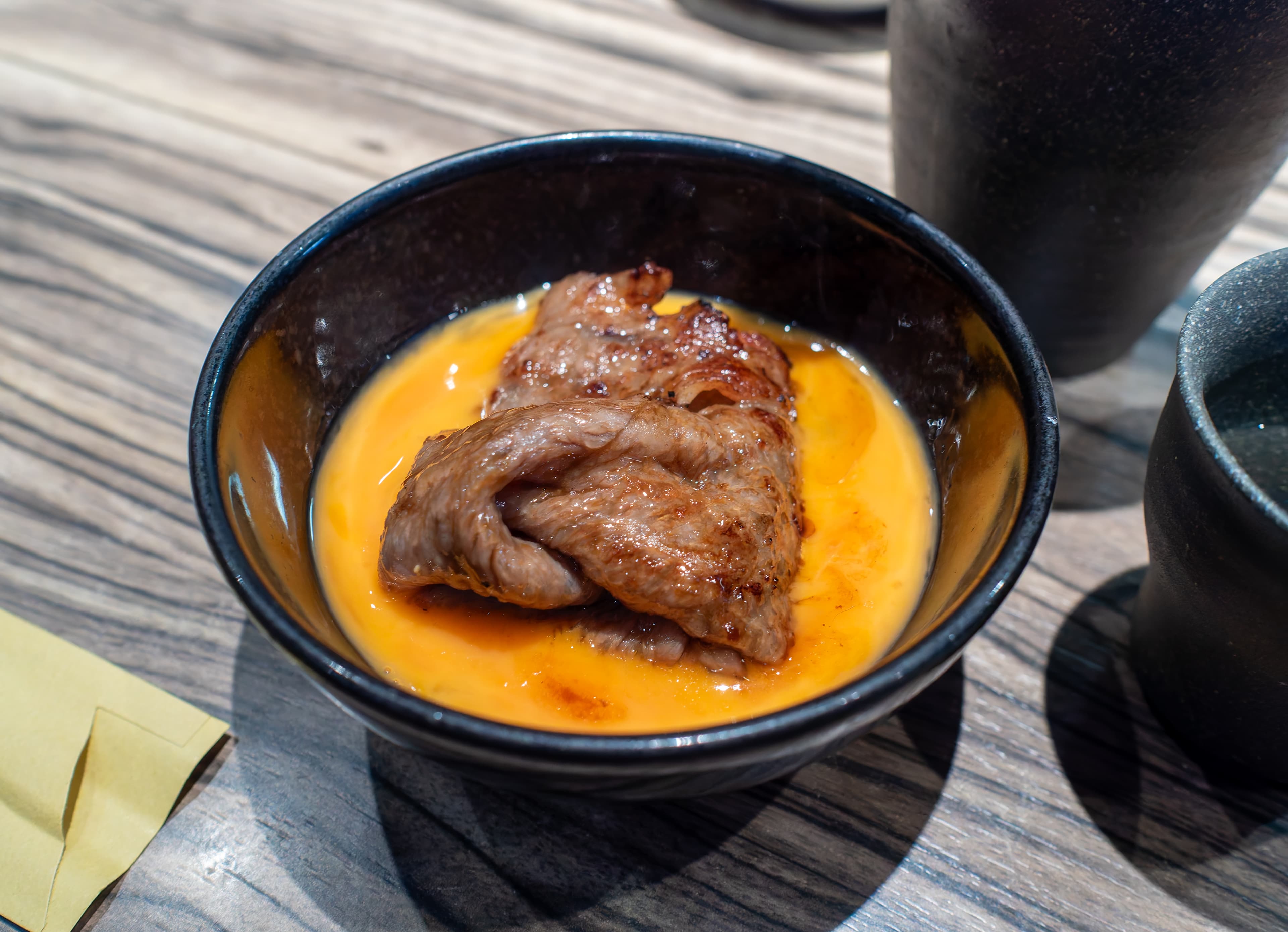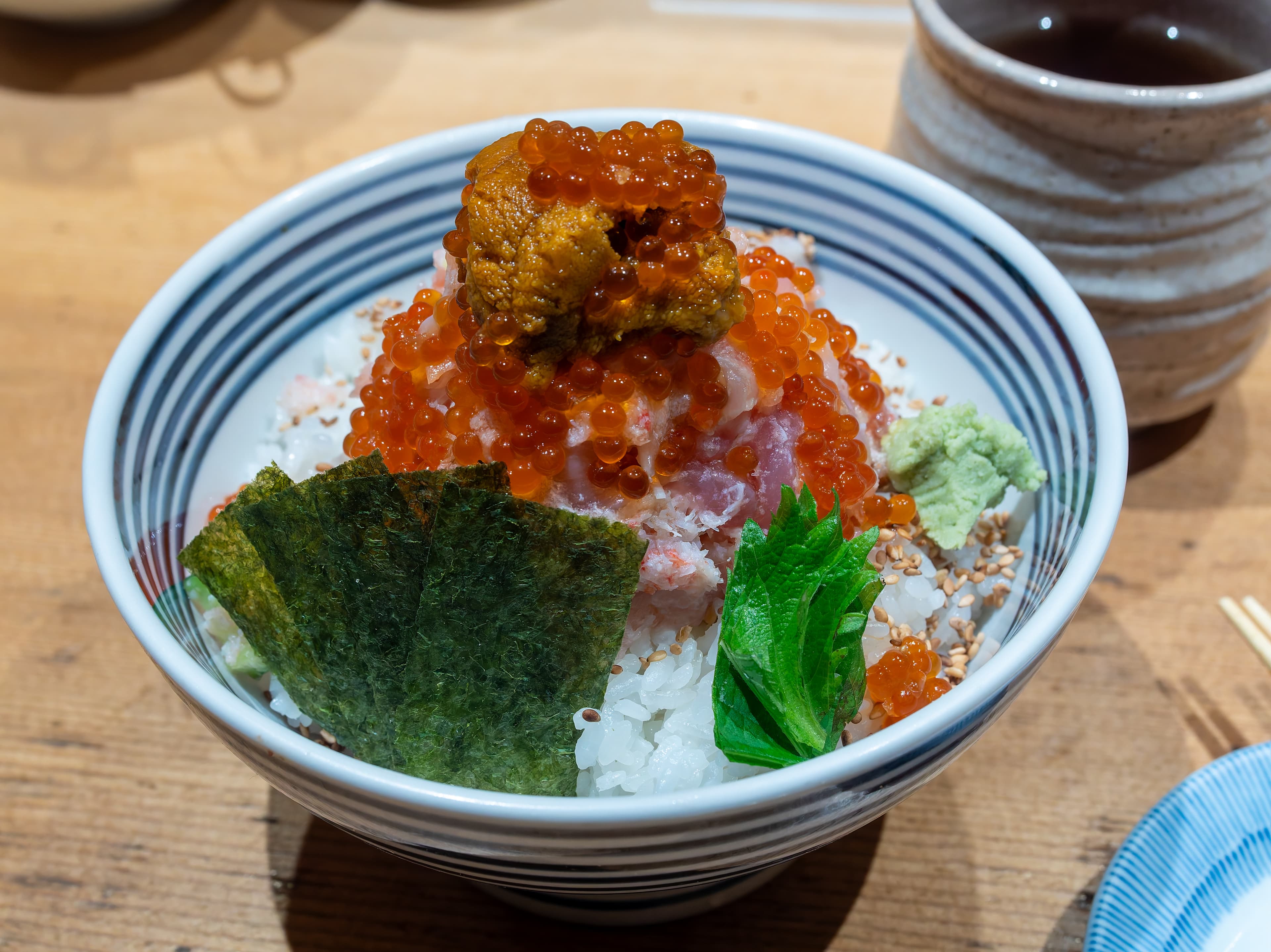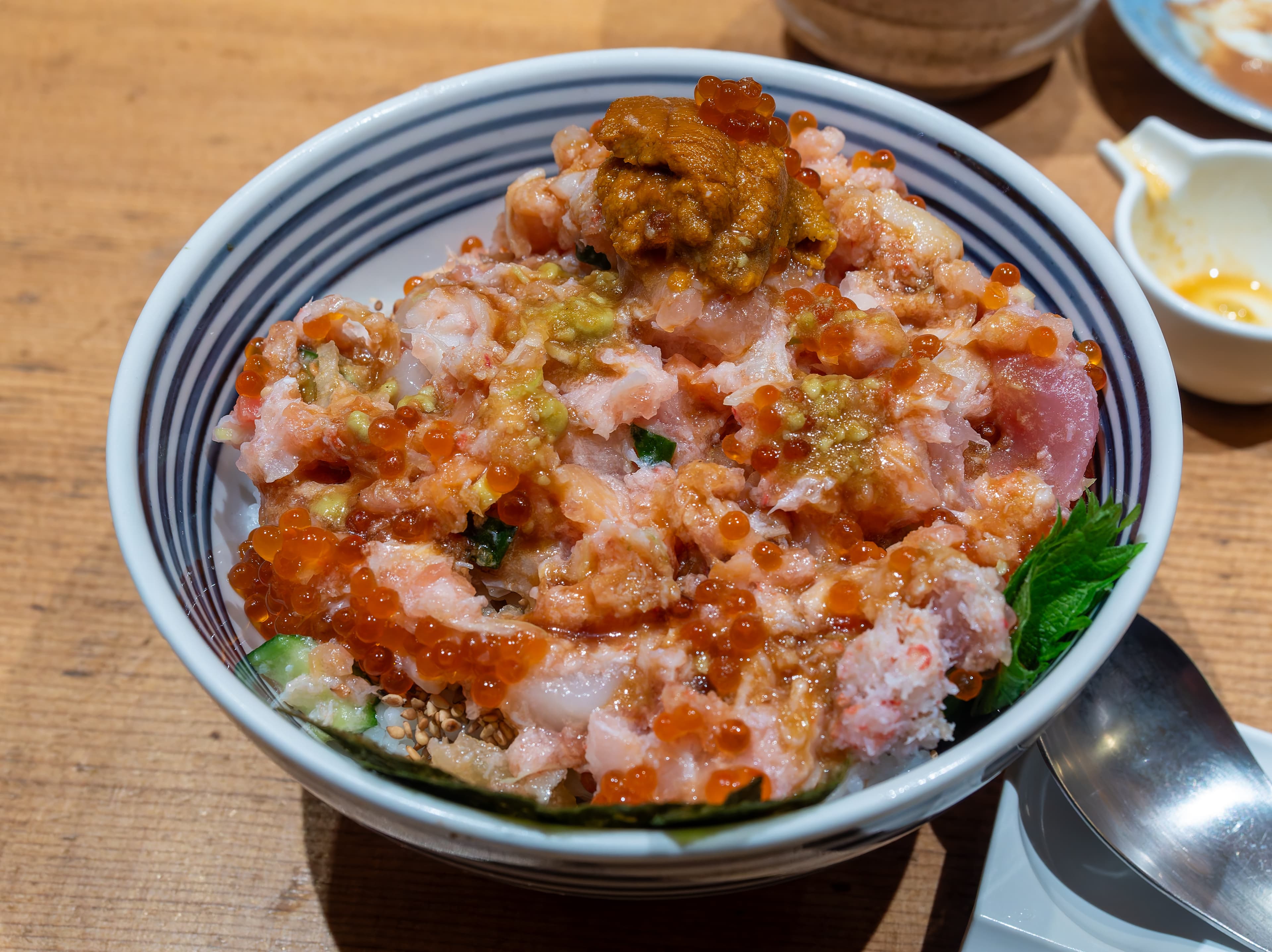 And then another add-on followed, the shrimp dish. This had sweet shrimp and squid with a uni sauce. There was a little ball of rice on the side to soak up the uni sauce afterwards. So good!