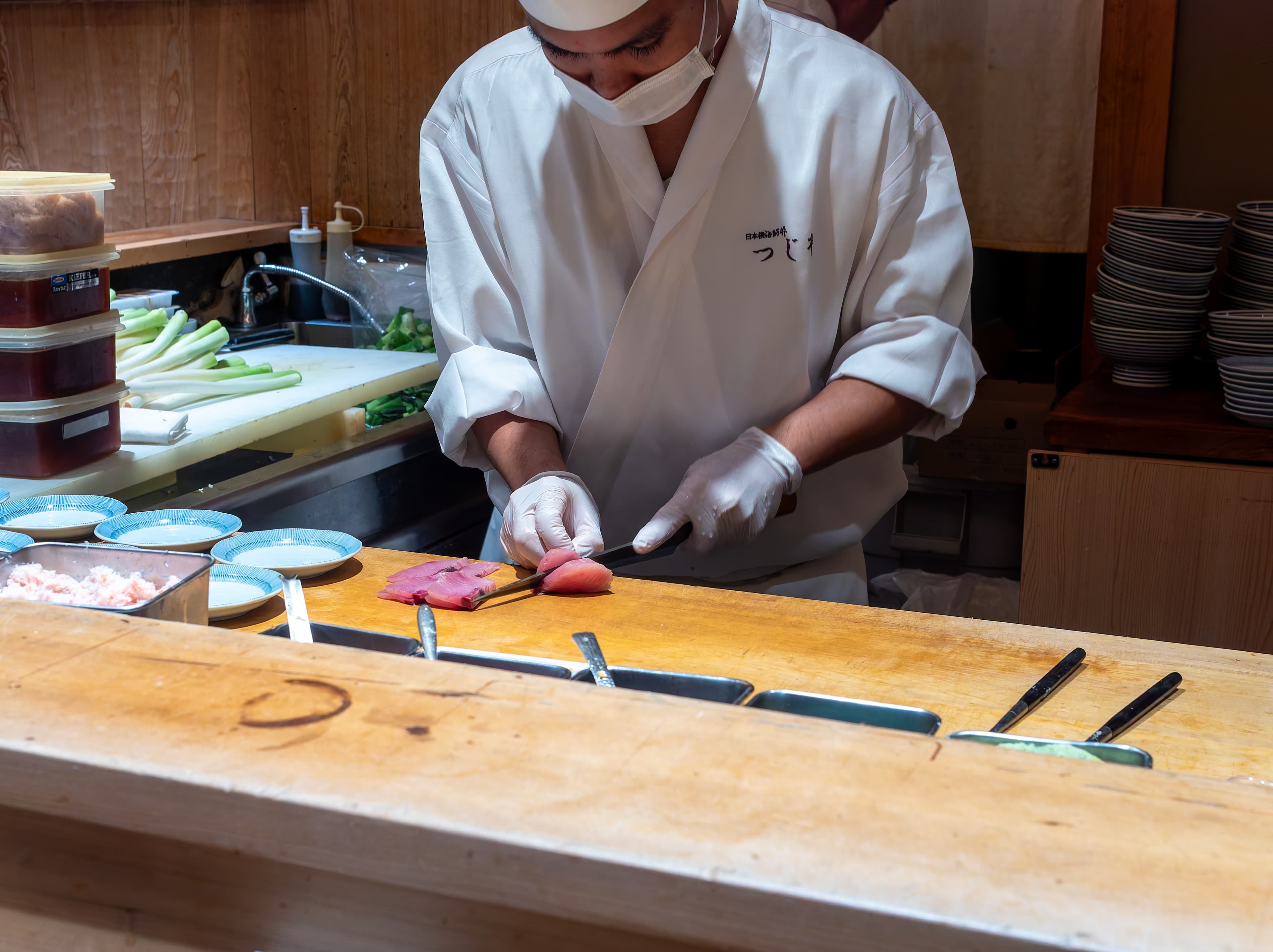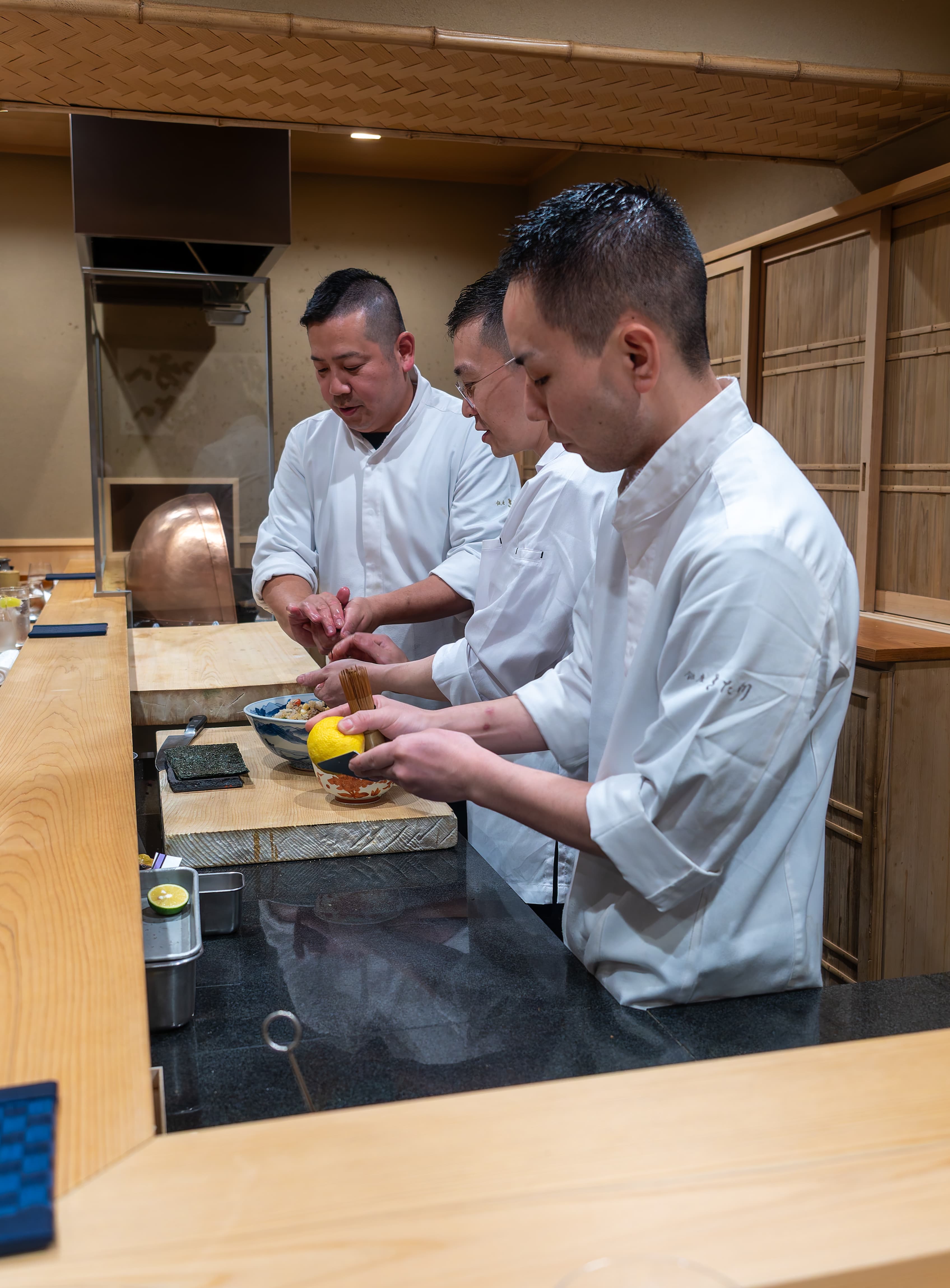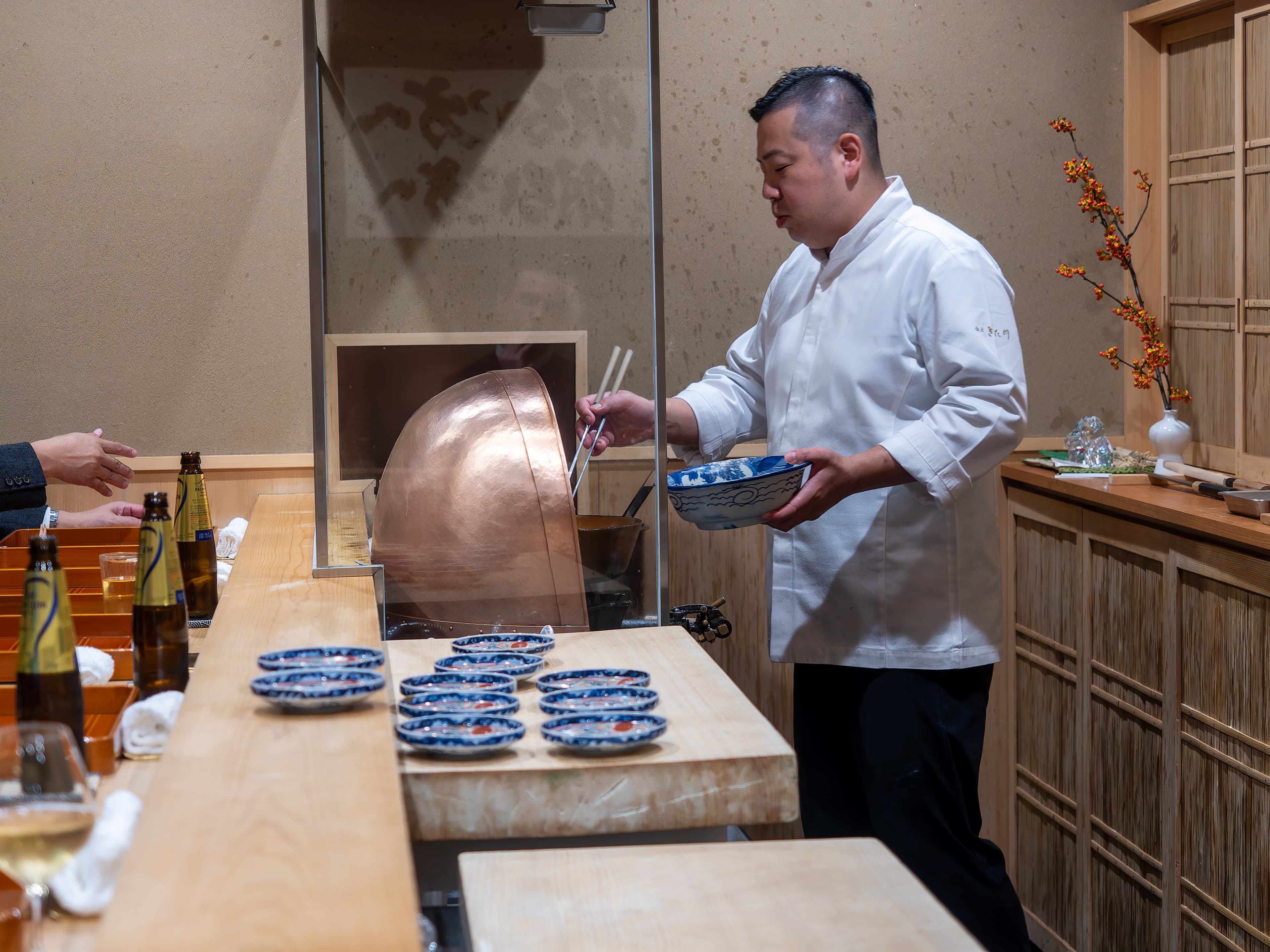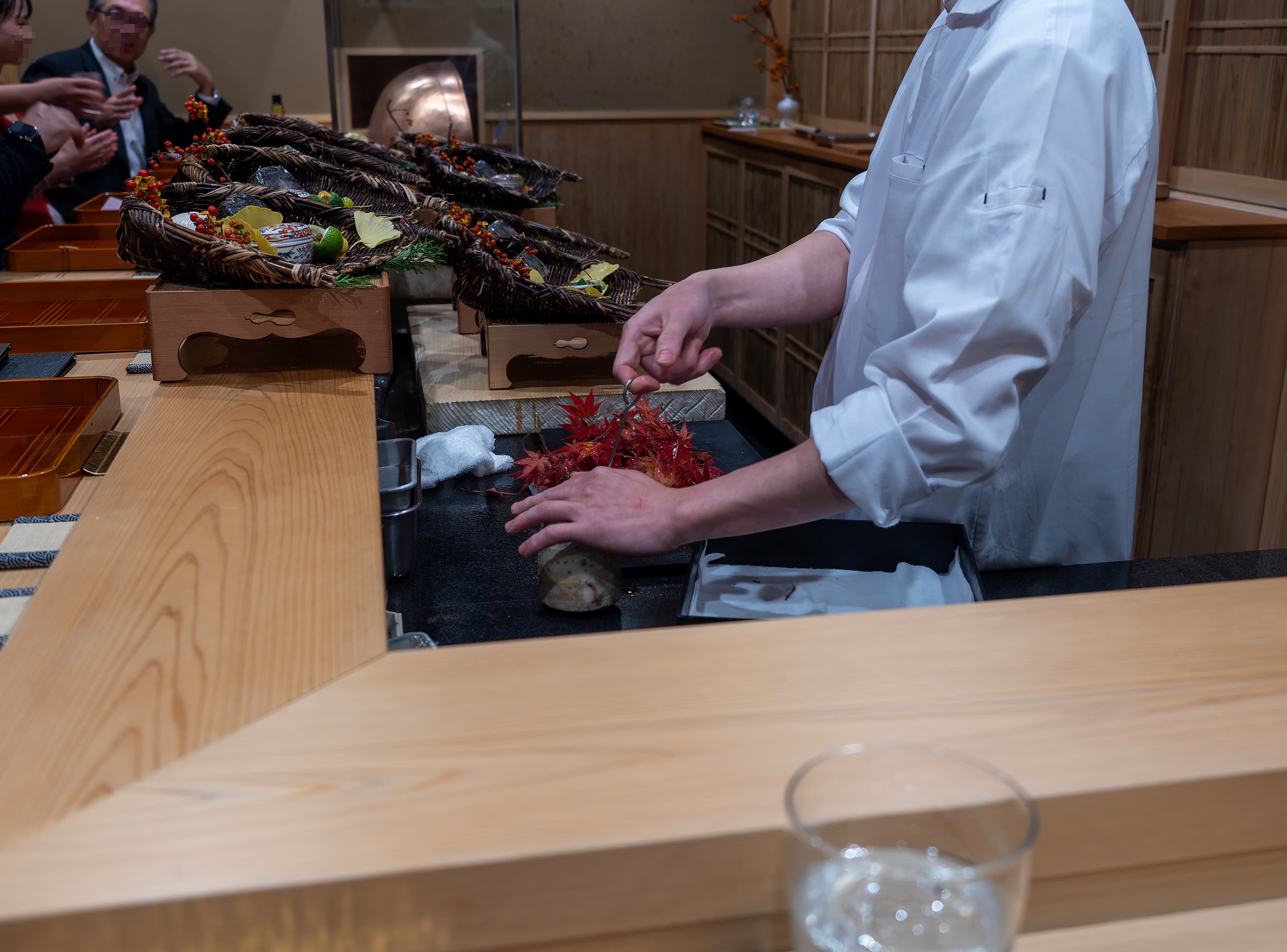 Inside - Kitagawa is a small restaurant with only a L-shaped counter. They were preparing the hassun.