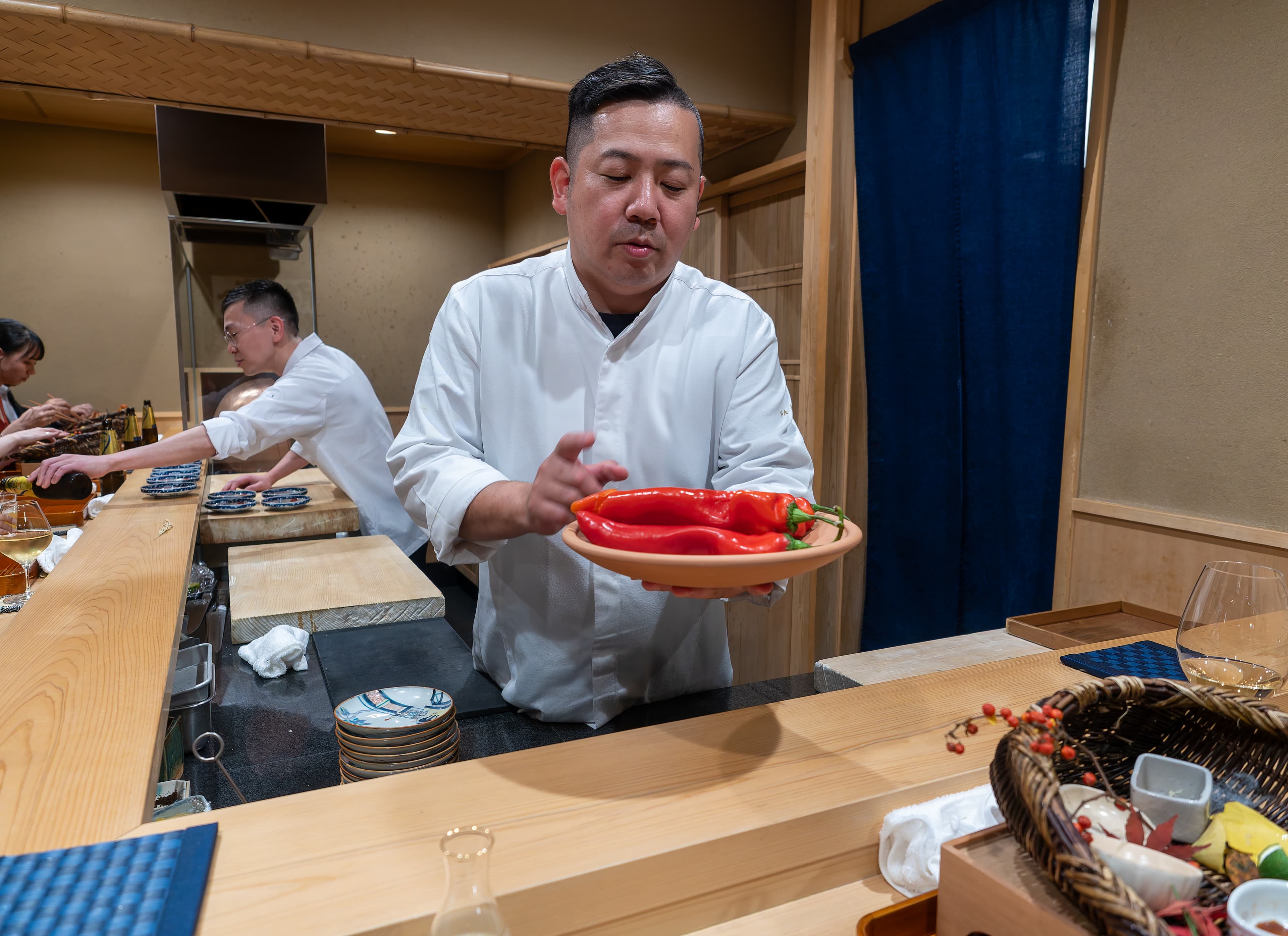 Chef Kitagawa showed us the ingredient for the next dish, large red sweet peppers.