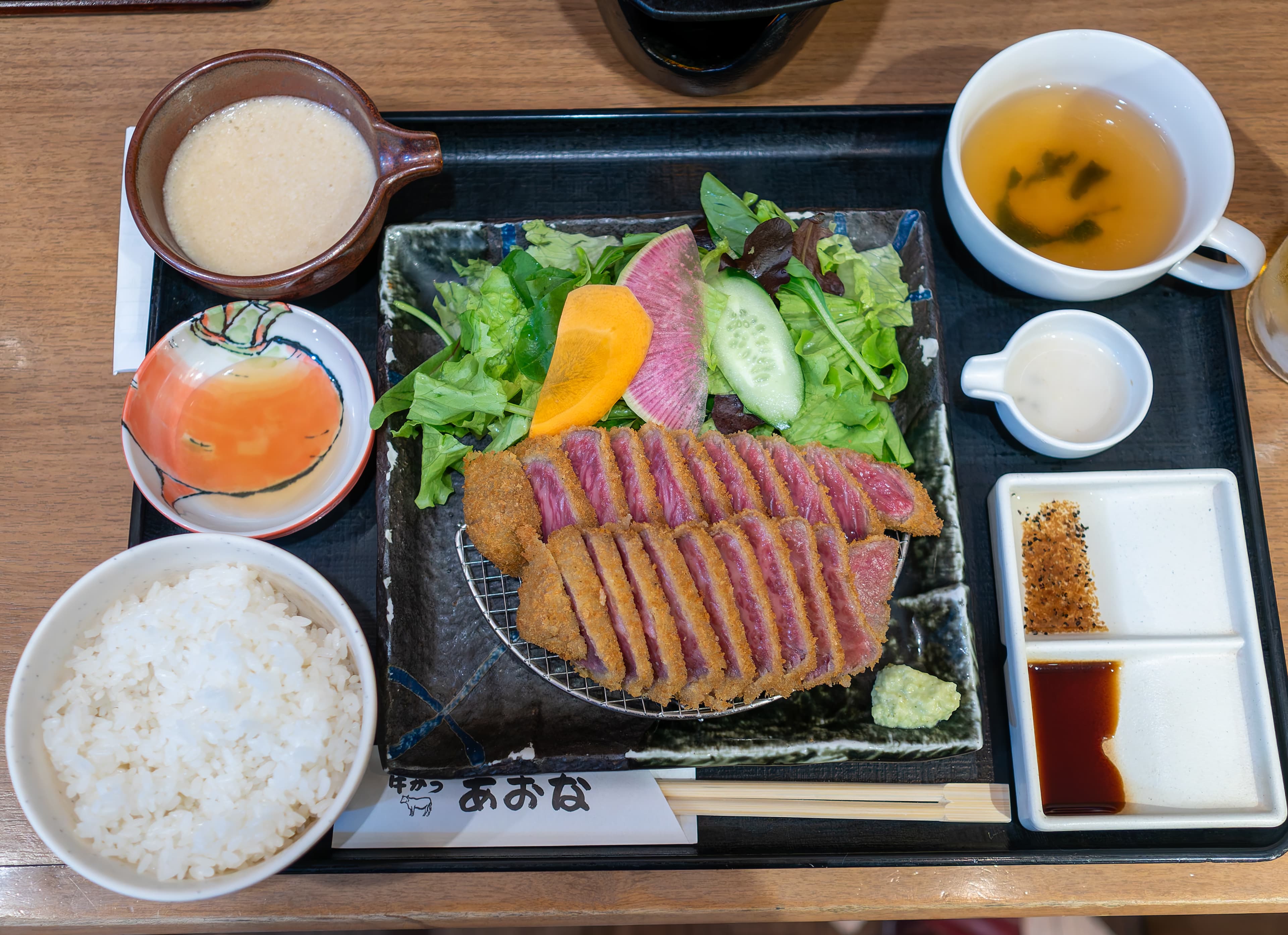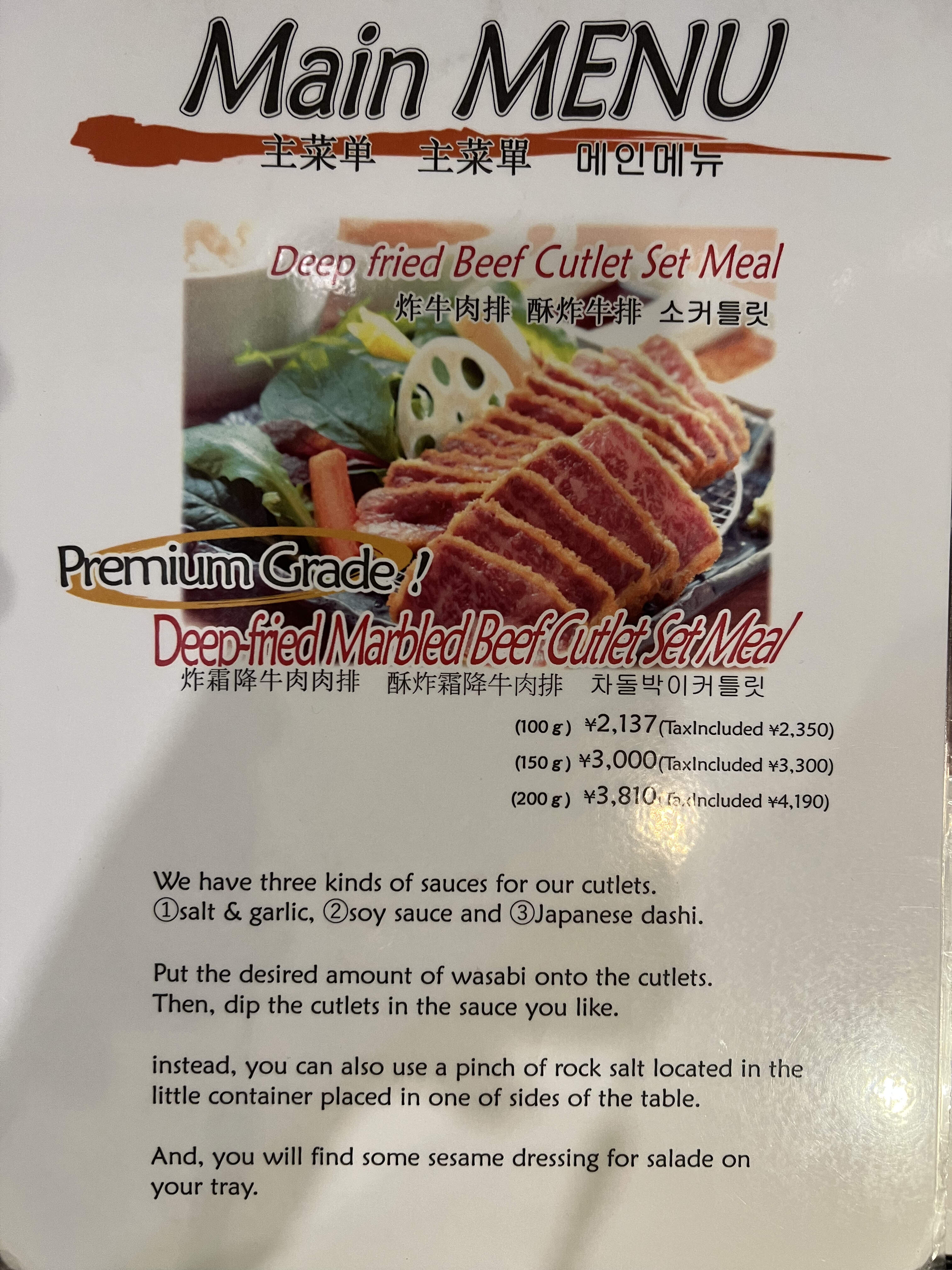 I had a 200g Deep fried Beef Cutlet Set Meal (¥4,190). There were also set meals with 100g and 150g meat portions. I also added grated yam for an extra ¥250.