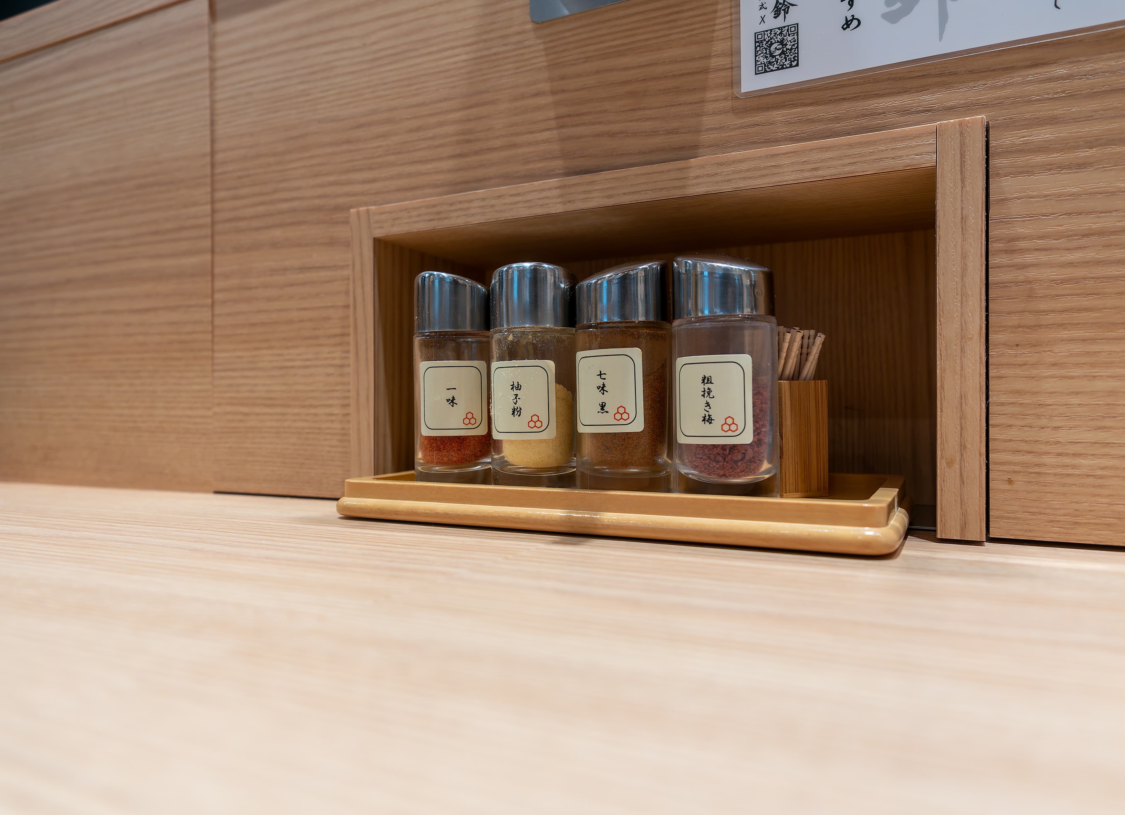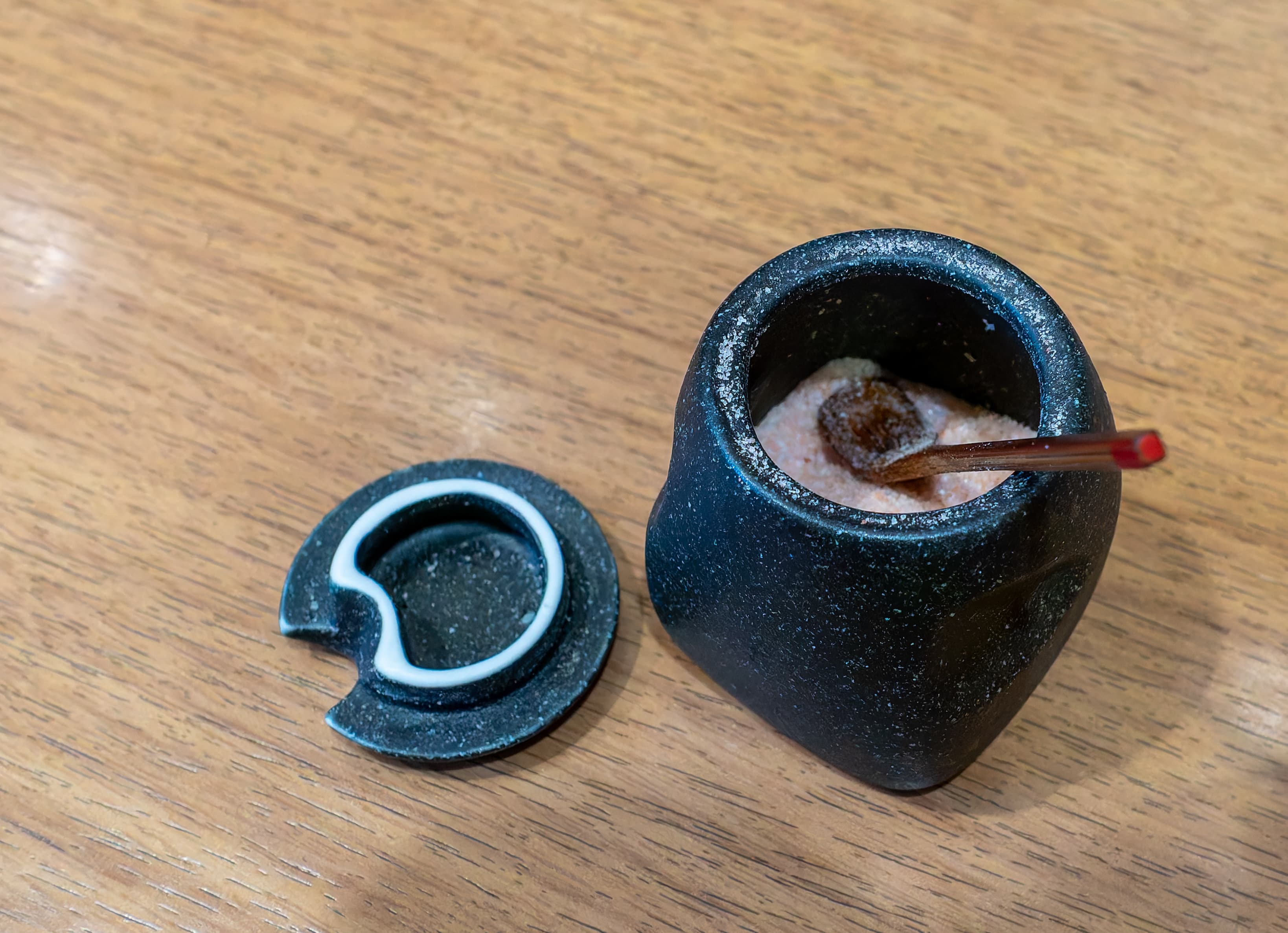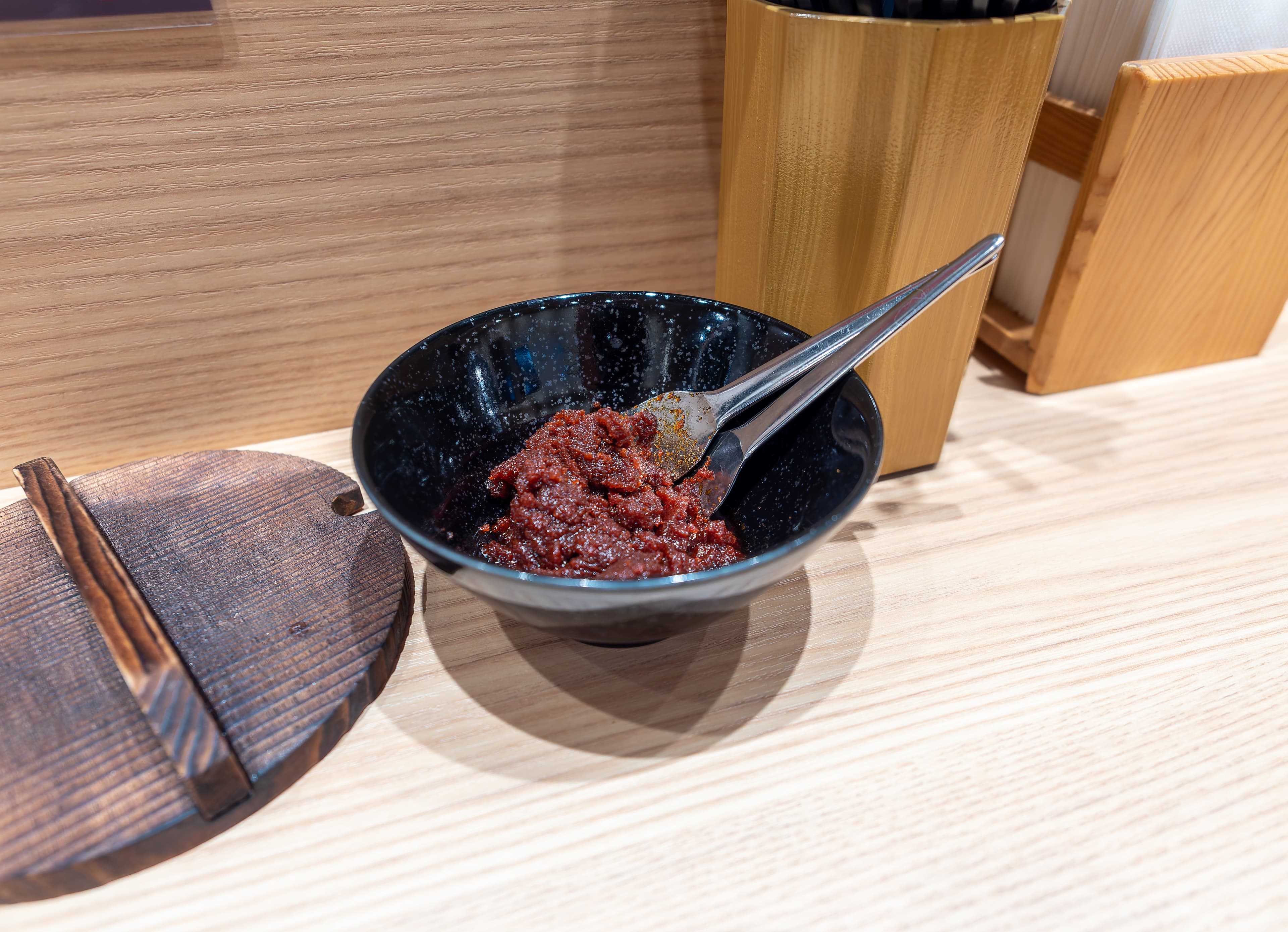 Some condiments - there were chopped scallions, red chili pepper, umeboshi / pickled plums, and wasabi at the table.
