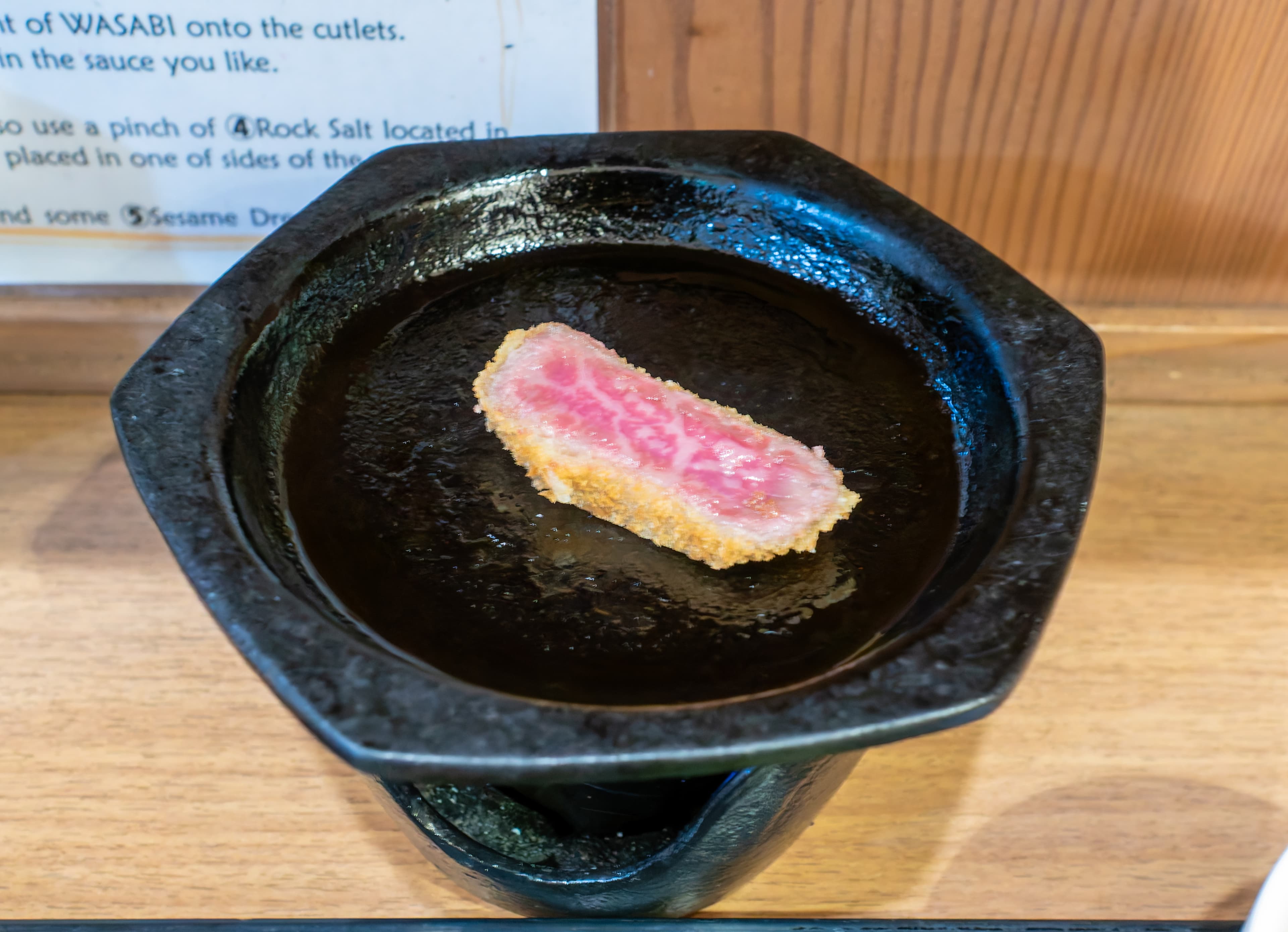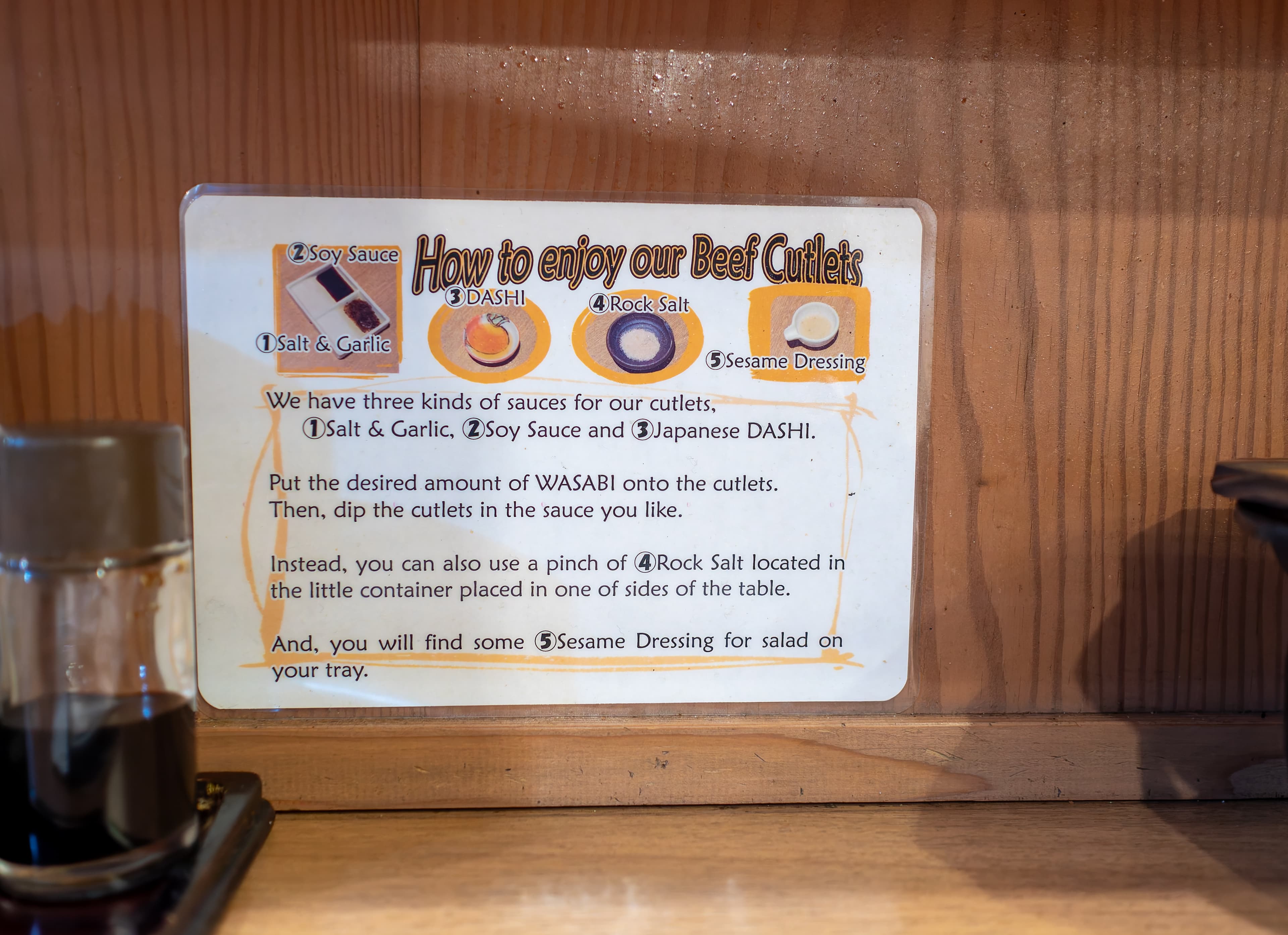 I enjoyed my first gyukatsu. The wagyu beef was high quality and had a nice lightly breaded and fried crust. A few seconds on the hot plate helped melt some more of the fat and give it a little bit of a sear. Of the sauce options, I liked the plain soy with a dab of wasabi the most.