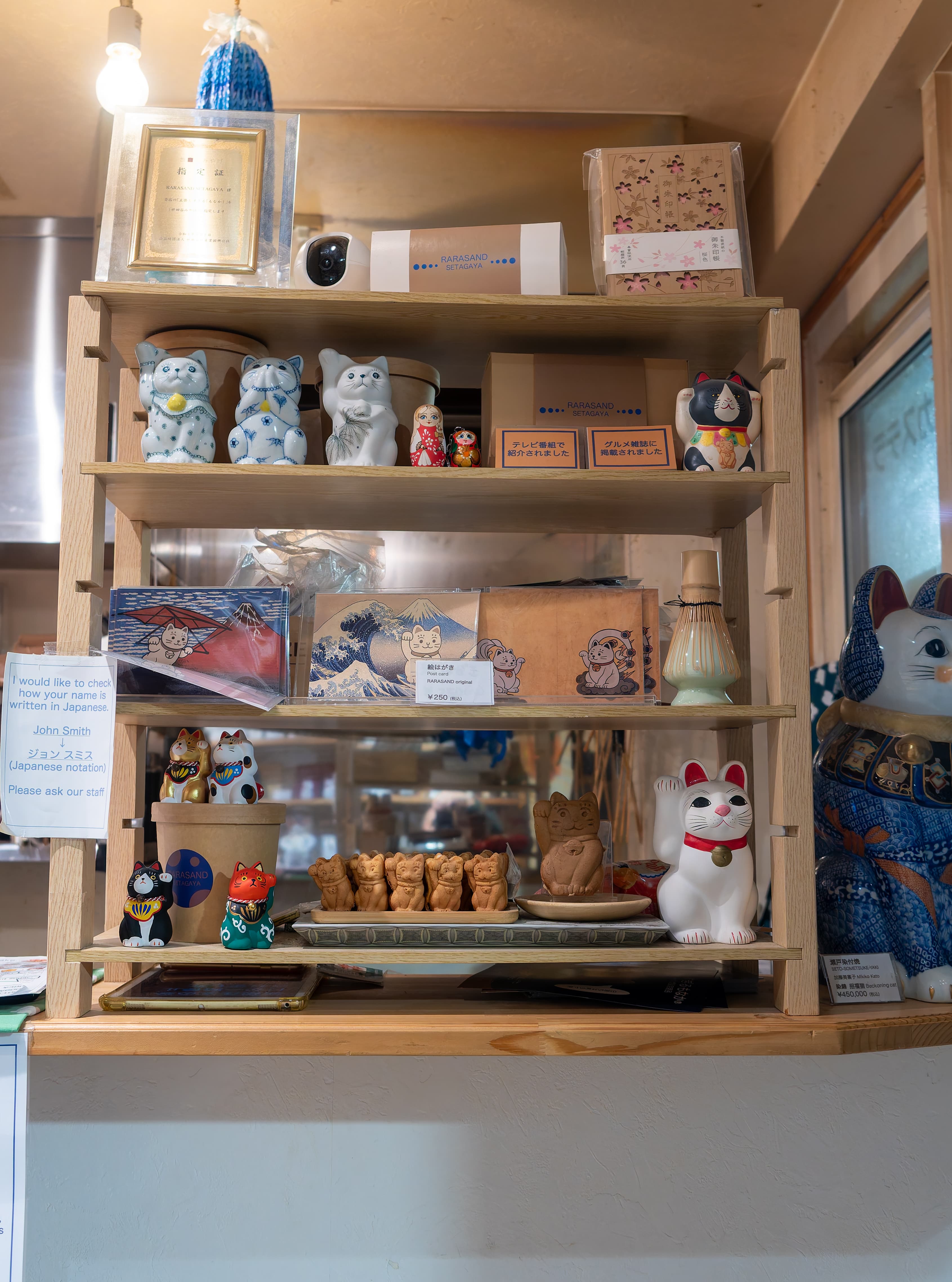 On the walk back to Gotokuji Station, I had a snack at RARASAND, a cute cafe and art gallery that makes maneki-neko shaped taiyaki. I had a large maneki-neko taiyaki filled with custard cream and and oat milk matcha latte. The taiyaki had a warm pancake like exterior that also had a bit of chewiness, and it was filled with a vanilla custard. There are several other filling options including the more traditional sweet red bean.