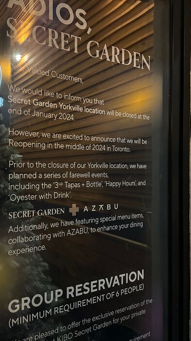 FYI, Kibo Secret Garden has announced they’re closing that location at the end of January., and apparently opening elsewhere mid-year. later.
