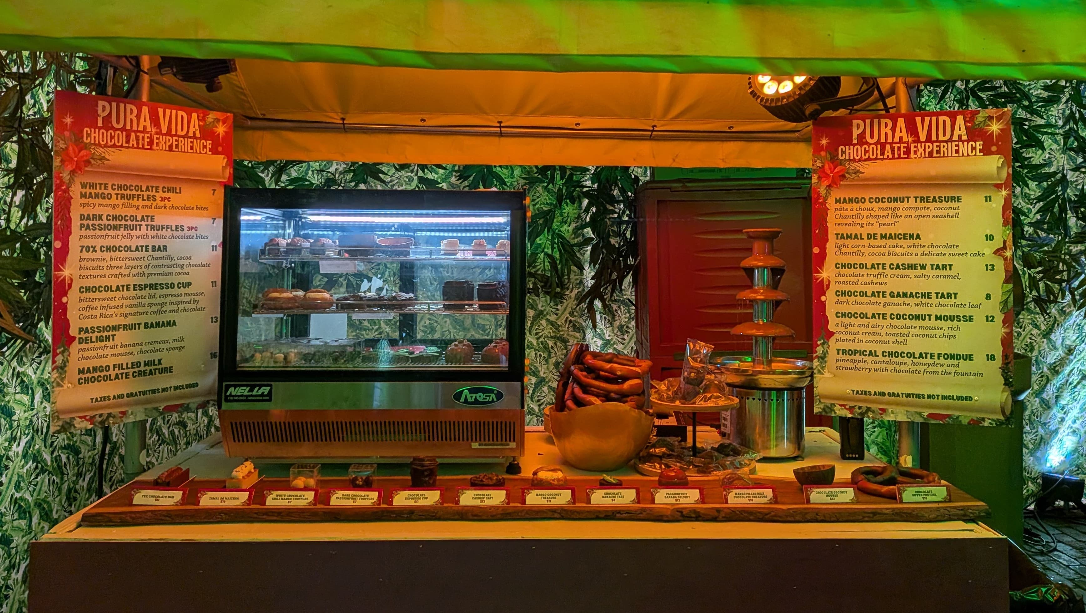 Other food stands include bao, empanadas, cotton candy, sausage.