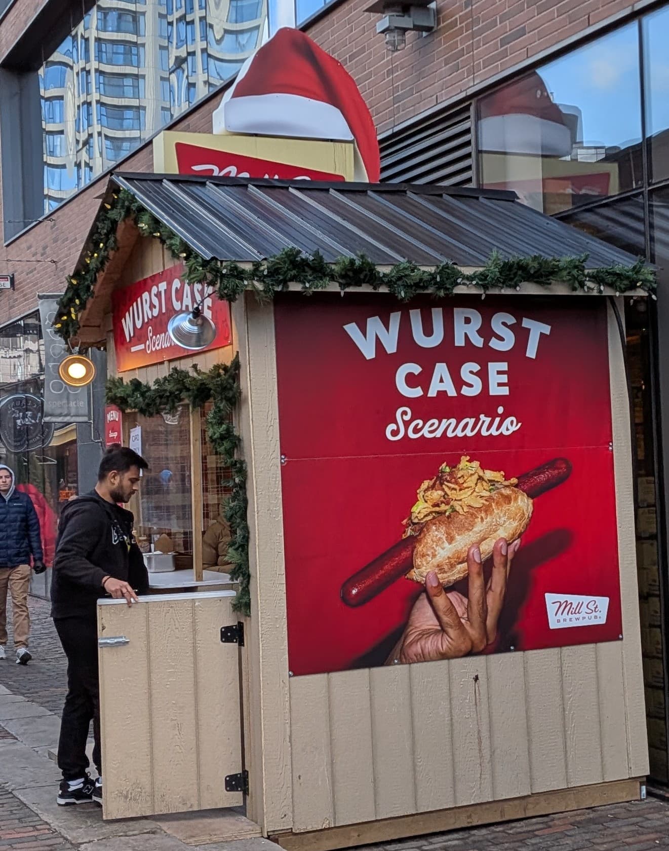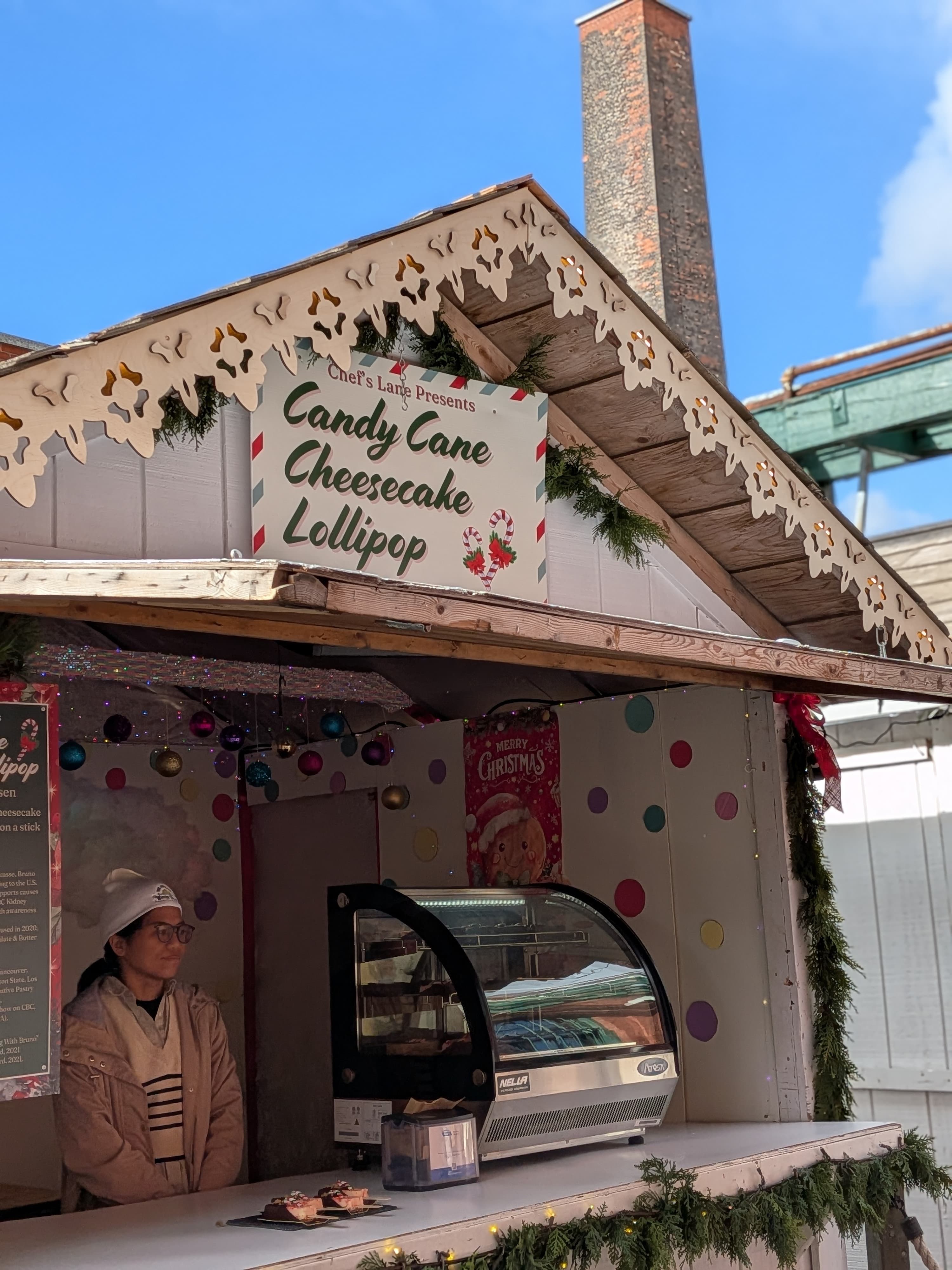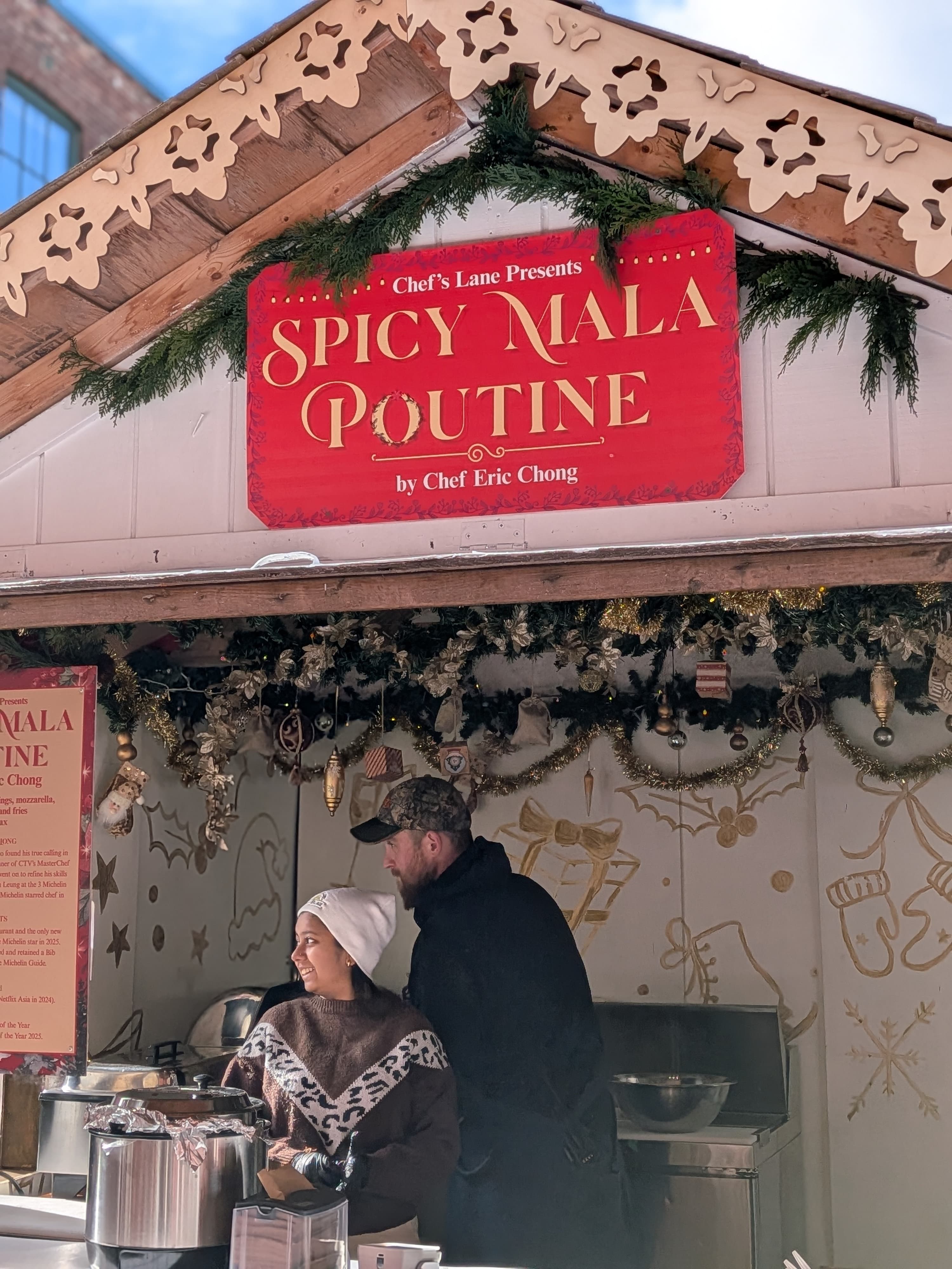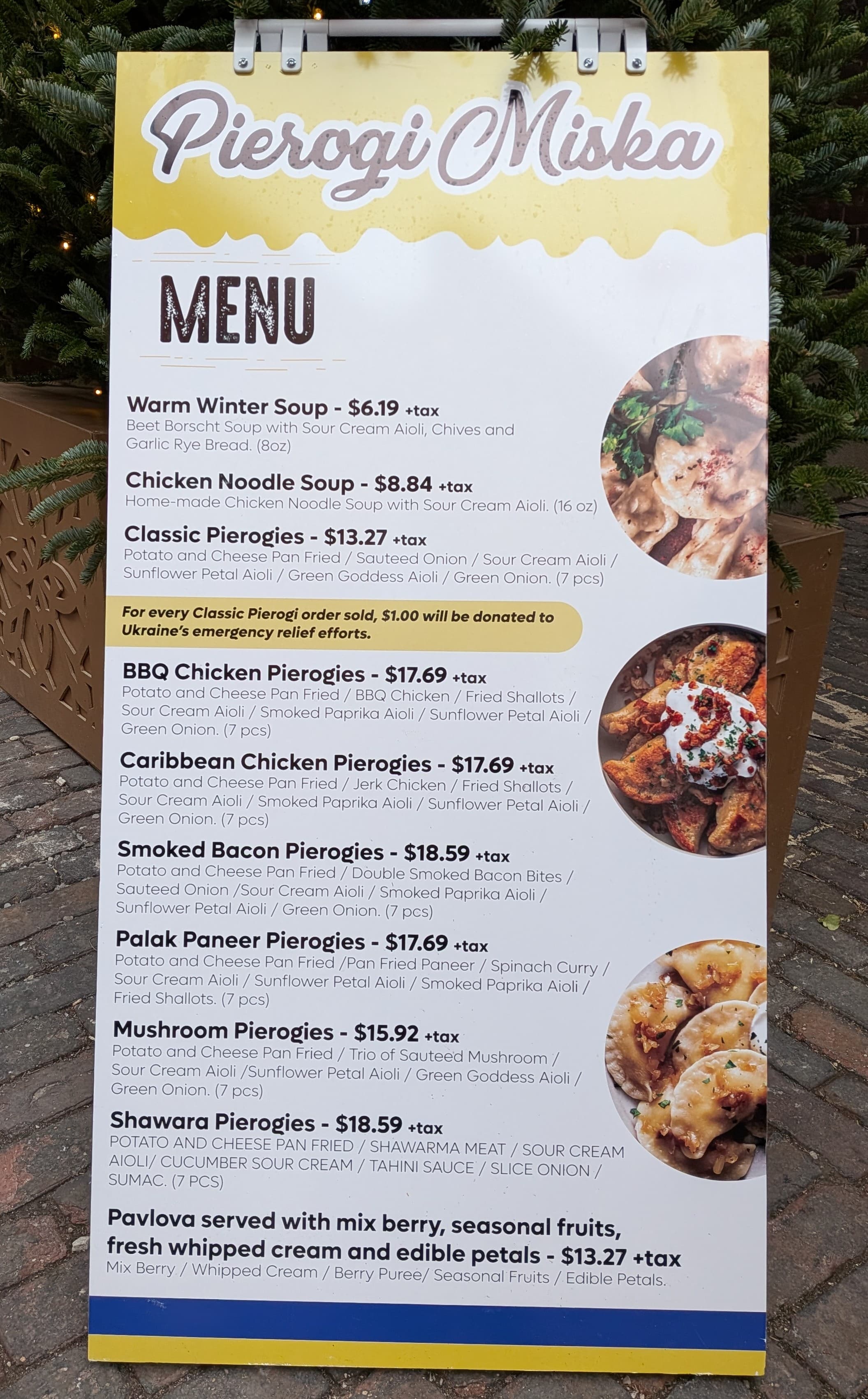 This kiosk at the Winter Village uses cheddar and potato perogies.