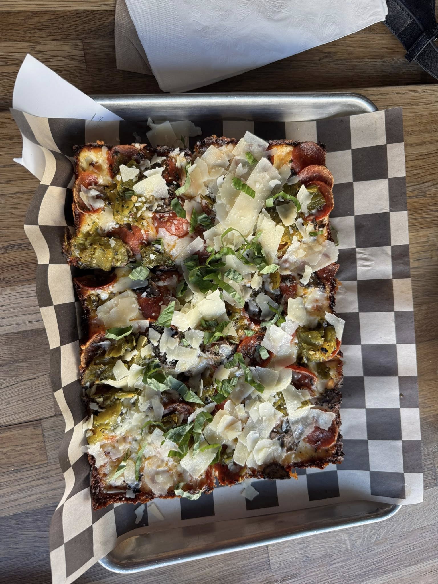 We started in Albuquerque, where our first meal was down the street from our hotel, at the 505 Central Food Hall. I wasn’t expecting this to be noteworthy – we’d just gotten off the plane, picked up the car, and checked in, and just wanted something to eat after a long day that had started with an early morning flight out of New Hampshire. But the green chile cheeseburger at Stackers and the green chile and pepperoni Detroit-style pizza at Thicc were excellent. I wish we’d had time to go back in a more normal frame of mind, because I’m aware, maybe I was just that hungry, maybe that’s why the burger was so good, but … even if it was just because of the context, this was the best restaurant burger I’d had in several years. I have no idea how it stacks up against the state’s best, but if it’s not one of the better green chile cheeseburgers, you folks are blessed.