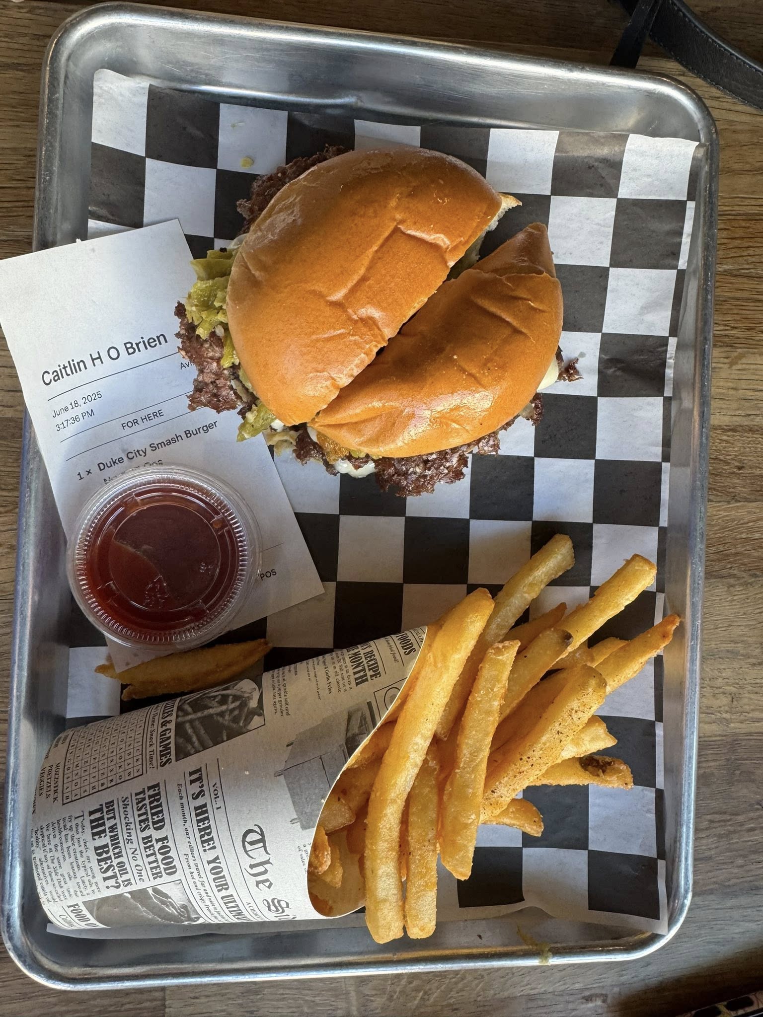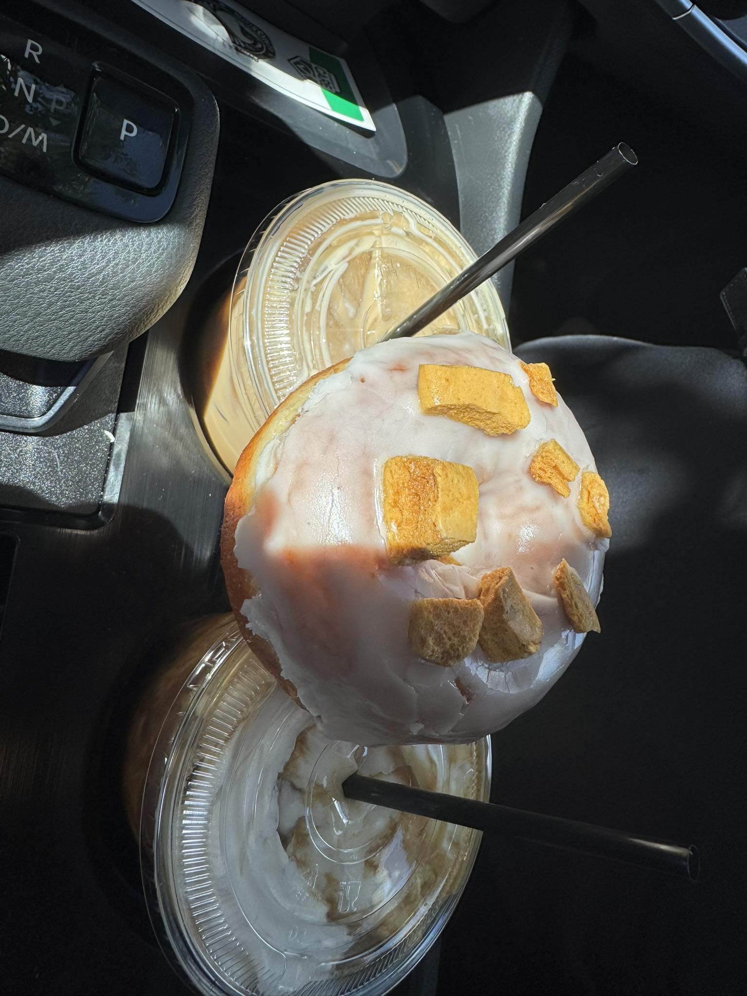 The morning of my actual birthday, we got doughnuts and coffee at a food truck called Donut Vision that I’d seen people mention on Facebook. Really good doughnuts are probably my favorite sweet treat, and man were these really good doughnuts. The owners are Cambodian American, which I mention because my favorite doughnut place up here is also run by Cambodians, so maybe it’s not a coincidence? We each got two doughnuts and a coffee—mine was a corn latte made with corn milk (corn steeped in milk and strained) and cajeta, something I recreated at home several times once corn season started. The doughnut is a yeast-raised doughnut with a yuzu glaze and honeycomb candy. So flavorful, and I love the honeycomb texture on top of the soft doughnut. I kept talking about this place to random people at the spa. Sorry about that if you were there. (Other doughnuts, not pictured: a tamarind apple fritter and a mango lassi doughnut.)