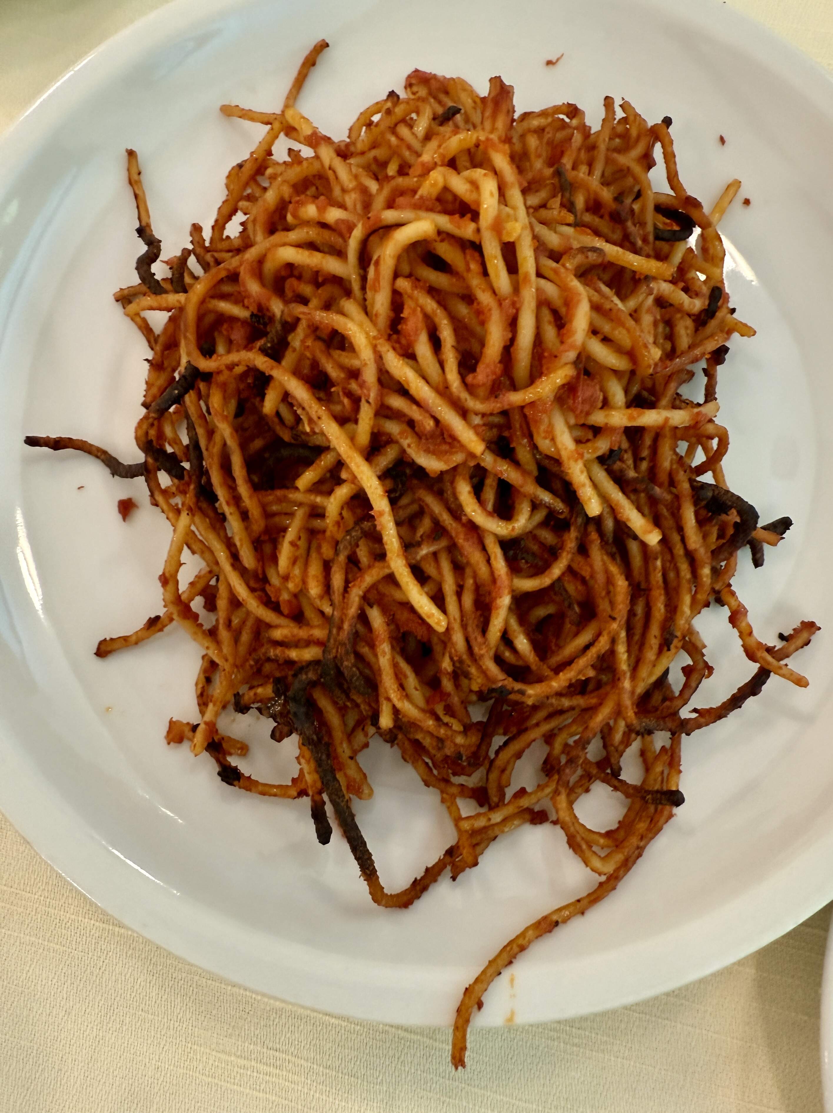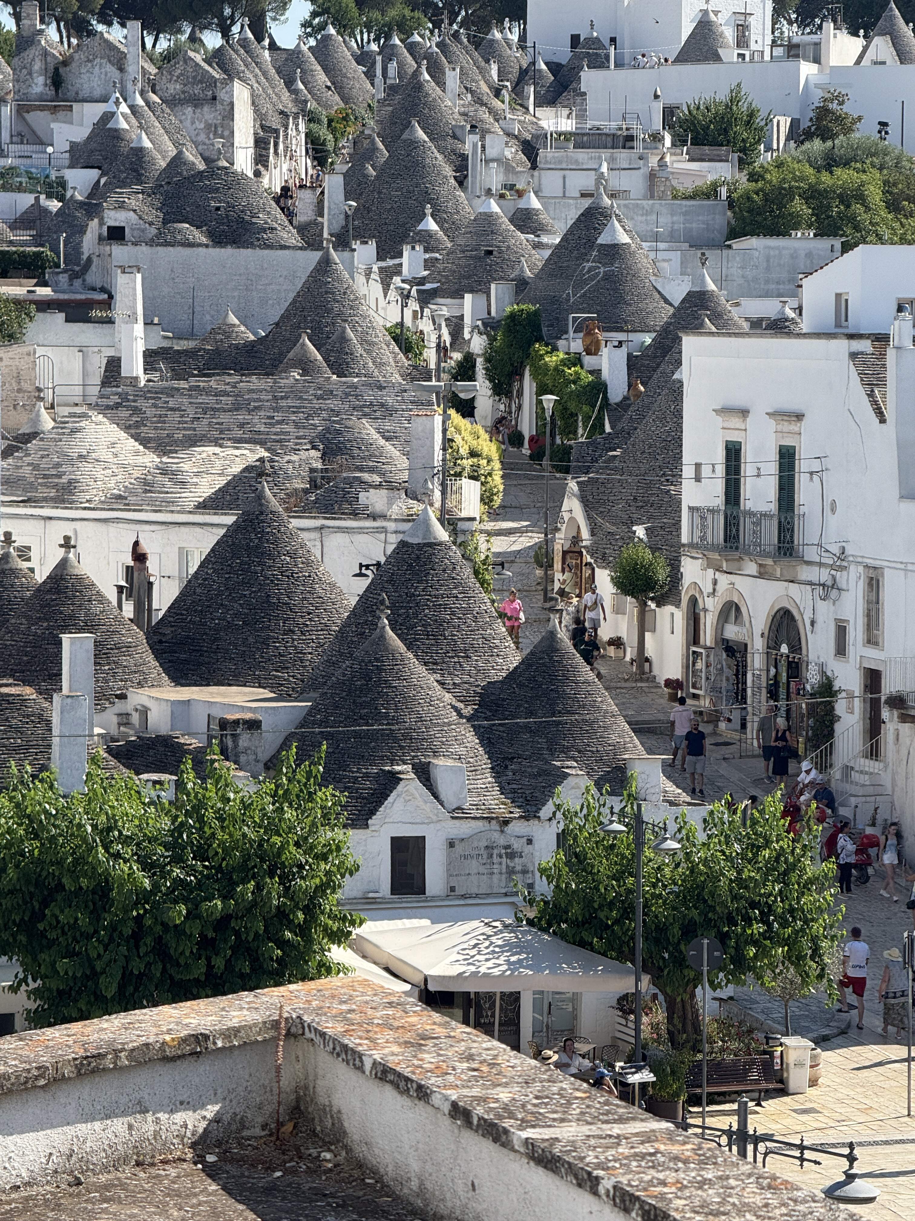 As magnificent as Matera is, our decision to stay there during the early July was not very intelligent. We were warned, but did not take the warning seriously. The lime stone heats up creating a sensation of being in a sauna while walking the streets and passes of the Sassi. We had a wonderful walking tour conducted by Nadia Garlatti (nadiagarlatti@tiscali.it) Thanks to the recommendation of erica1!!! The scenery is mesmerizing any time of the day or night. The food situation is a bit more complicated. All the restaurants have an inescapable touristy feel. It is not surprising because the people living in Sassi do not eat in the restaurants. We had two dinners. The first night we ate in Stano. Although the same touristy feeling was present, we enjoyed the meal very much. Most of the combined antipasti and salumeria plates were very delightful. I recommend both. Couple glasses of local aglianico. My main dish was fusilli (looking more like trofie from Genova and not like the American supermarket fusilli) with cruschi peppers. That plate was fantastic. I have enjoyed it much more than the one in Castelmezzano. My wife liked her braised veal cheeks. The ravioli, one of my friends tried, had could have been skipped. We finished with sharing delicious and light milifollie. I think it is a good option for dinner in an extremely touristy environment.