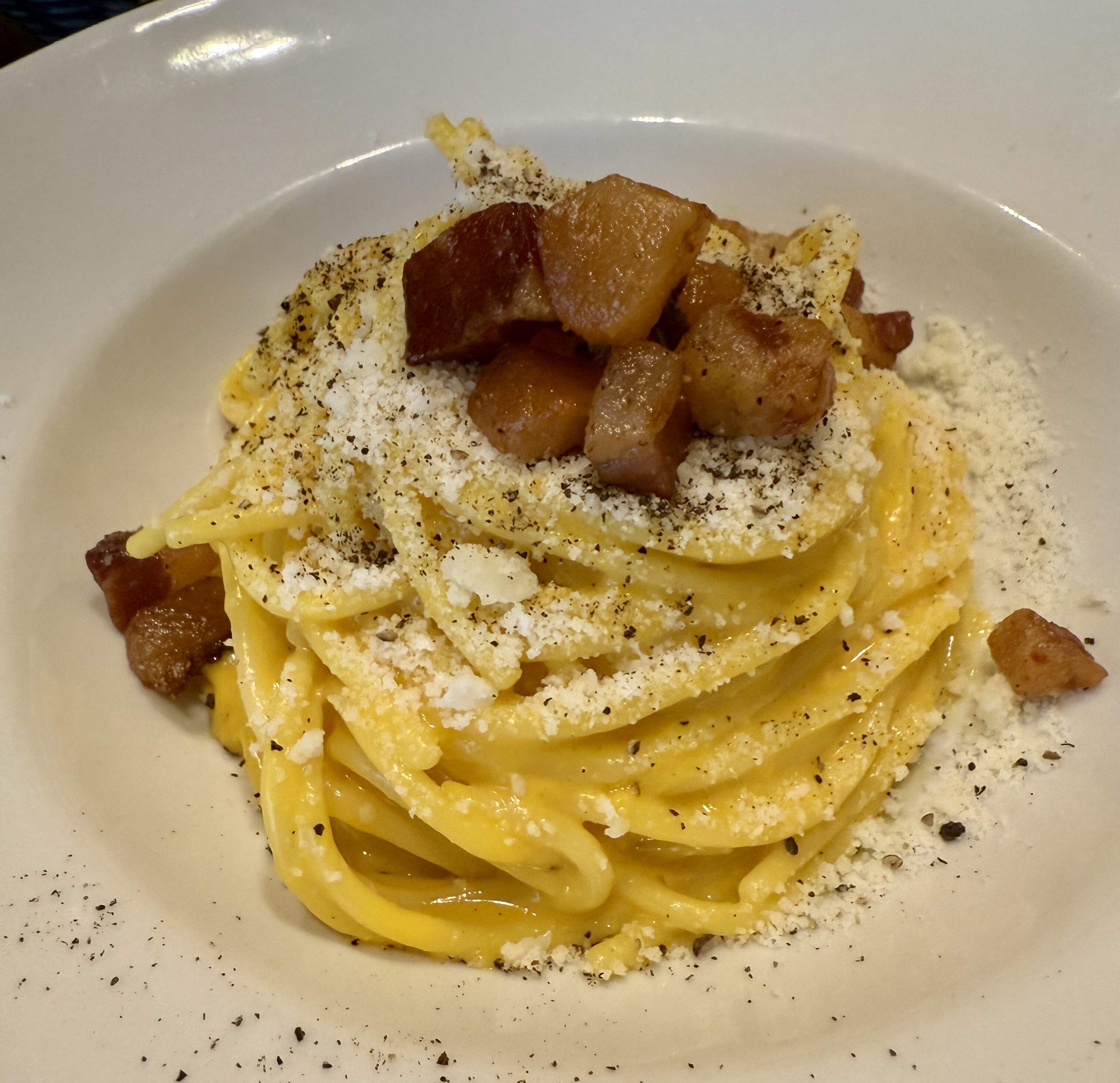 The second night was much more disappointing. Despite being somewhat endorsed by Slow food, La Lopa was a very mediocre restaurant. It is a very busy place with multiple rooms. None of the plates we tried made us happy. I do not want to describe the meal because it was just not good. On the positive side, on the way to the lower levels of the restaurant there is a TV showing all the movie episodes featuring Matera.