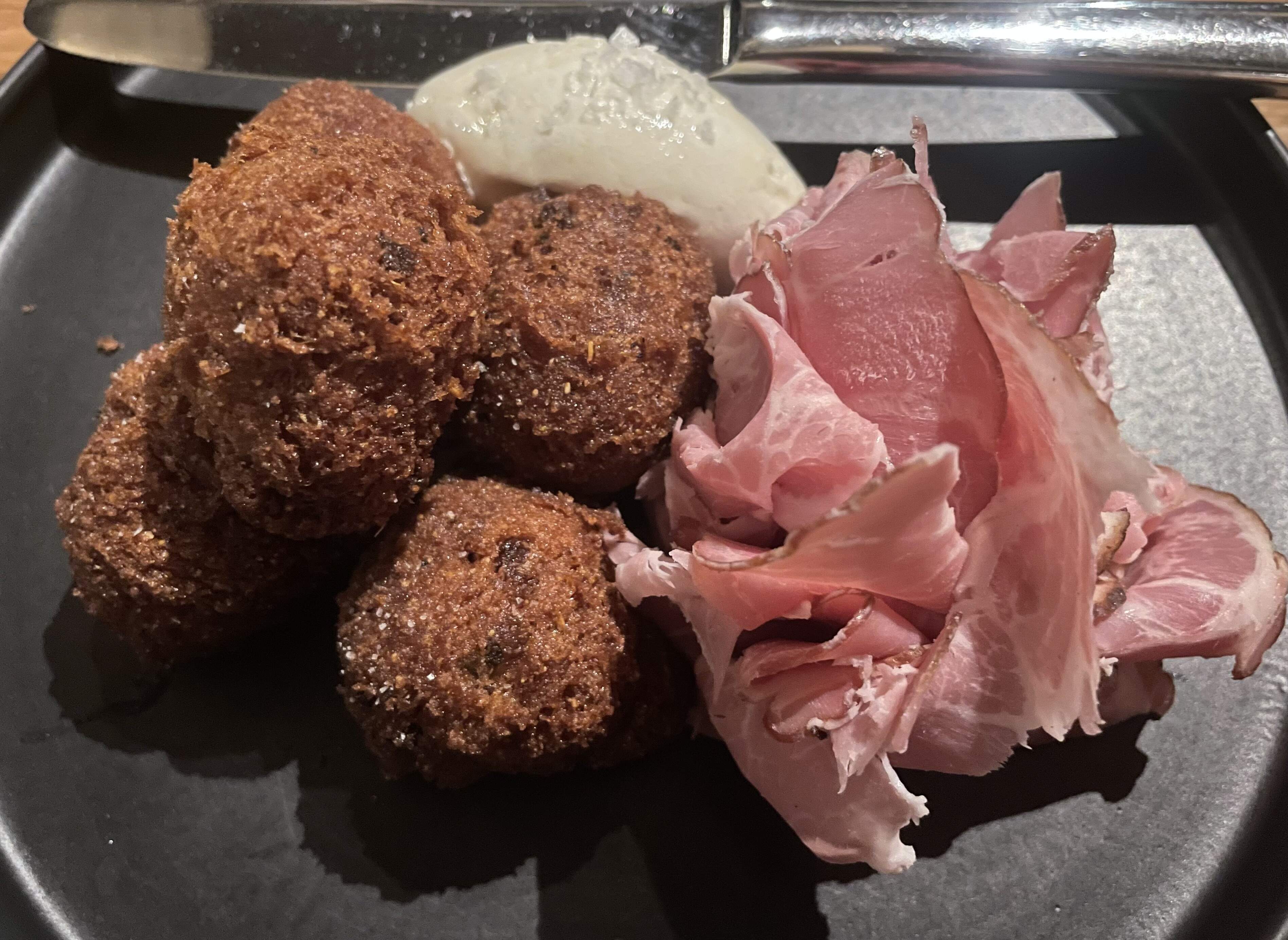 Hush Puppies, house-made ham, cultured honey butter, sea salt